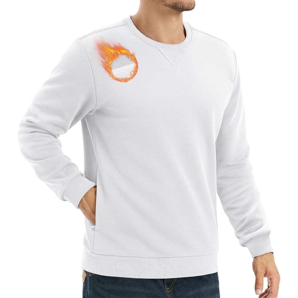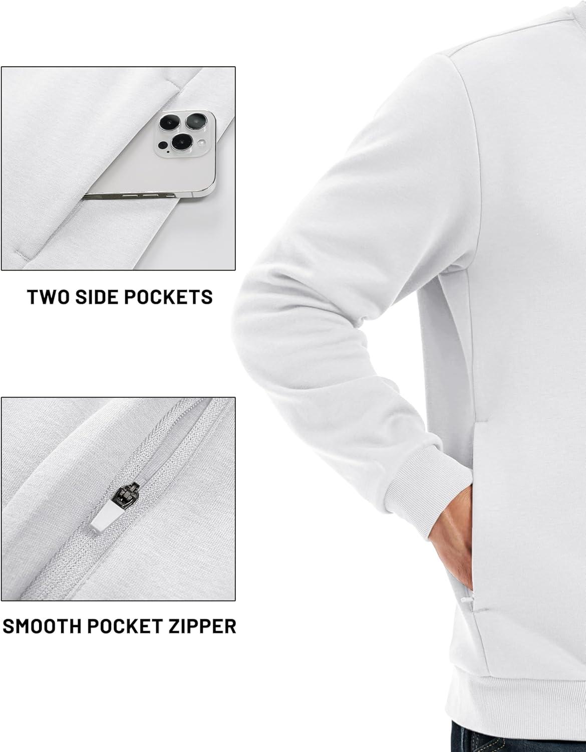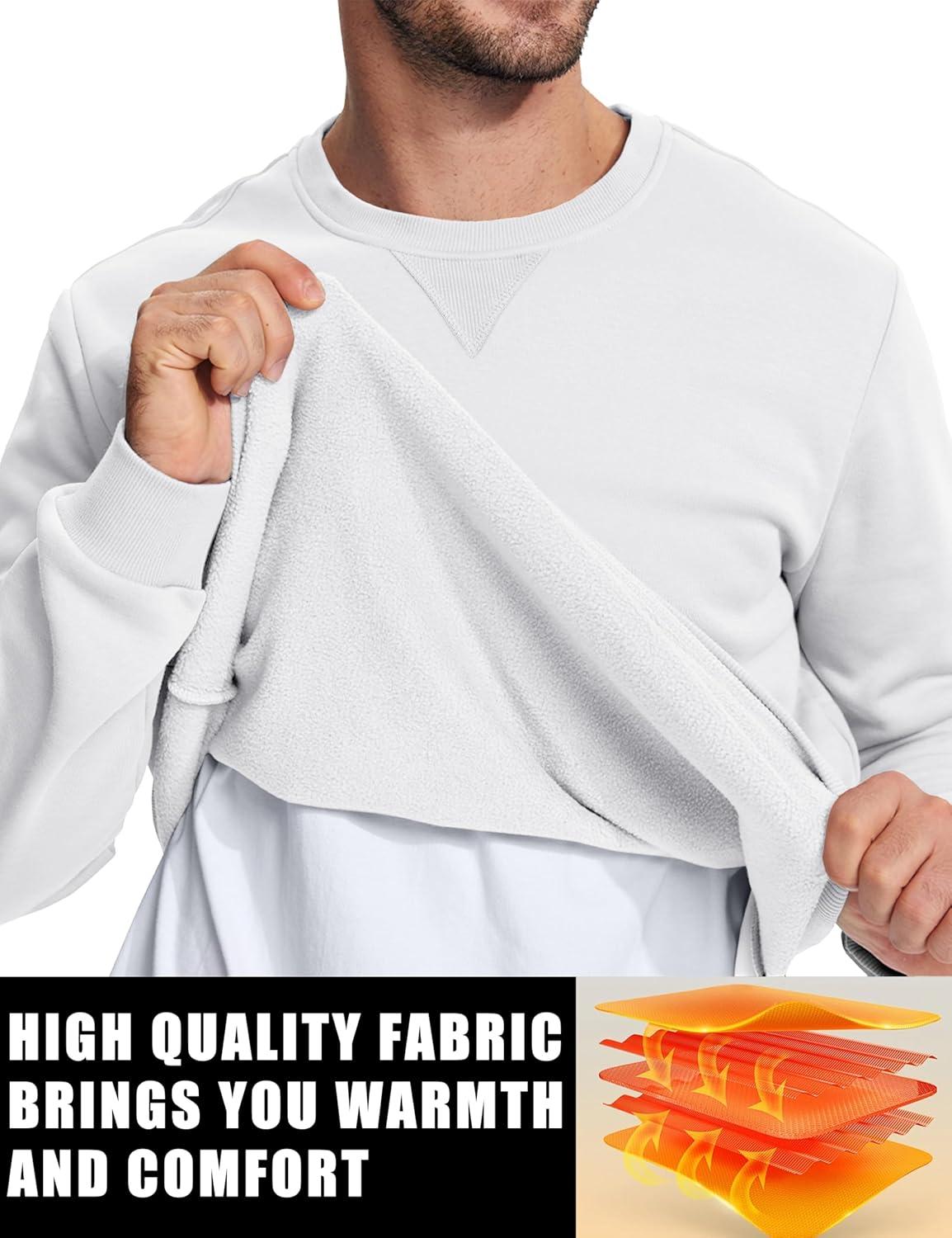 TACVASEN Men’s Crewneck Sweatshirt Fleece Lined with Pocket Winter Warm Midweight Casual Long Sleeve Pullover Sweatshirt(White)
