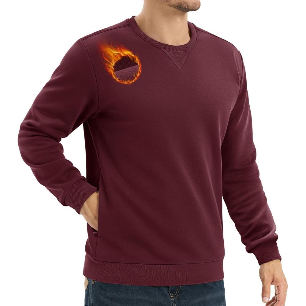 TACVASEN Men’s Crewneck Sweatshirt Fleece Lined with Pocket Winter Warm Midweight Casual Long Sleeve Pullover Sweatshirt(Wine Red)