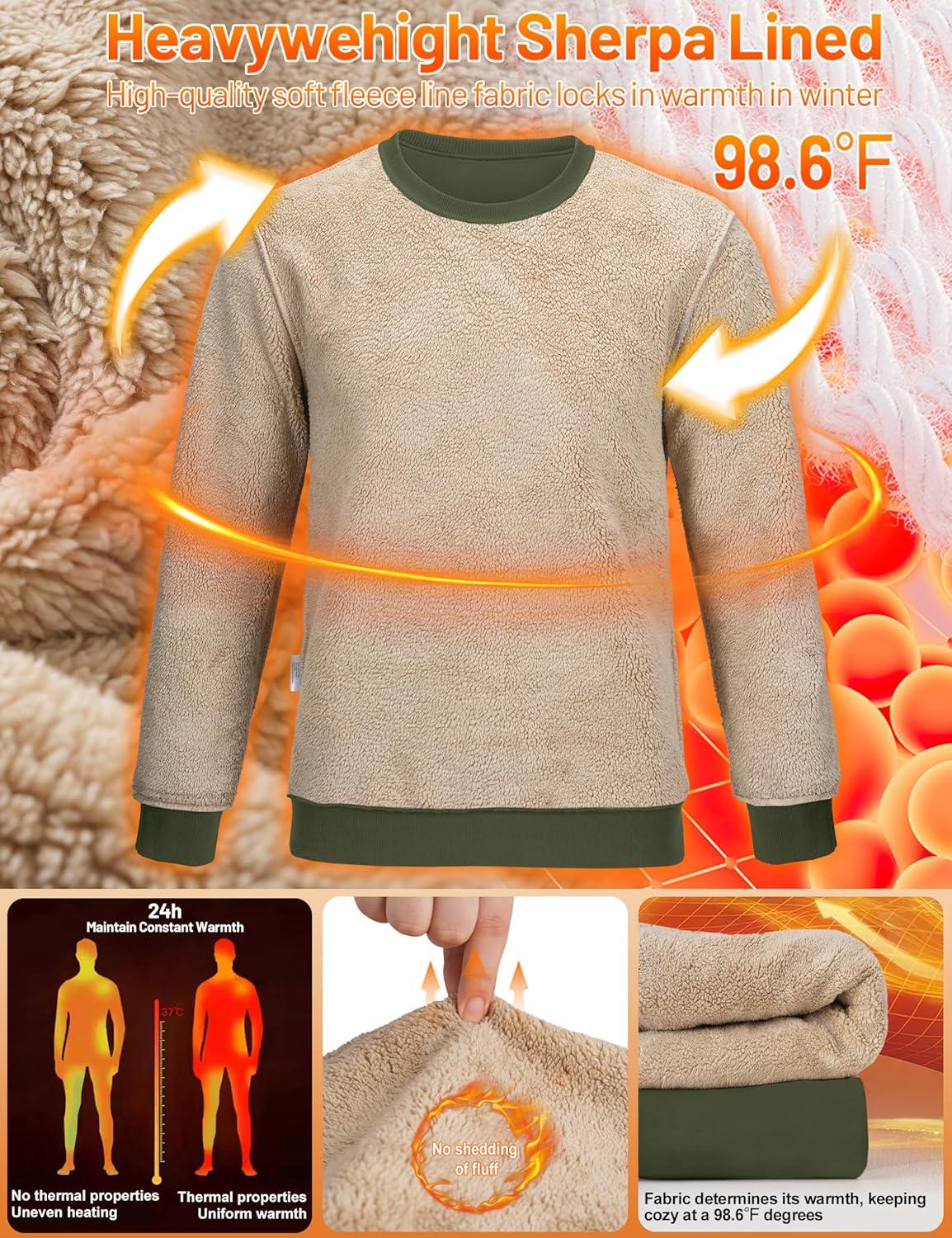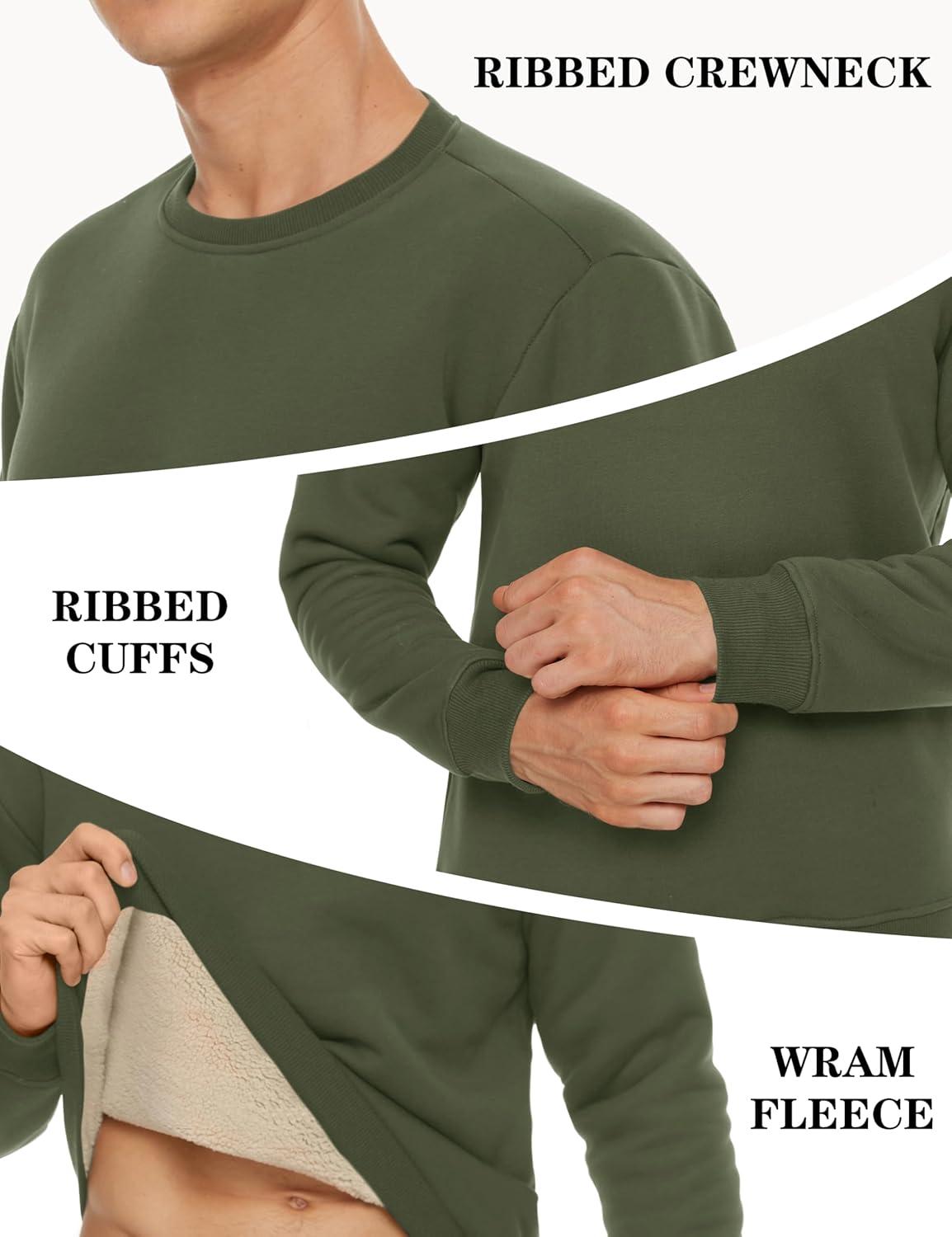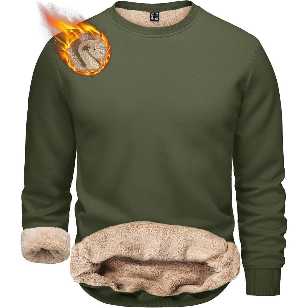 TACVASEN Men’s Crewneck Sweatshirt Warm Sherpa Lined Thermal Sweatshirts Heavyweight Long Sleeve Winter Fleece Pullover Shirt(Army Green)