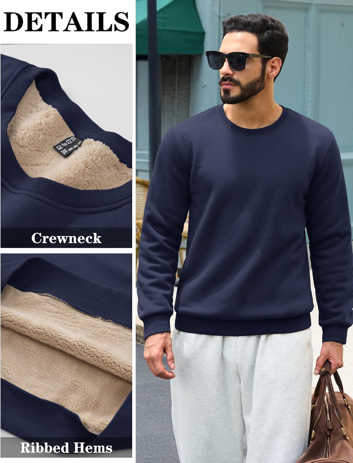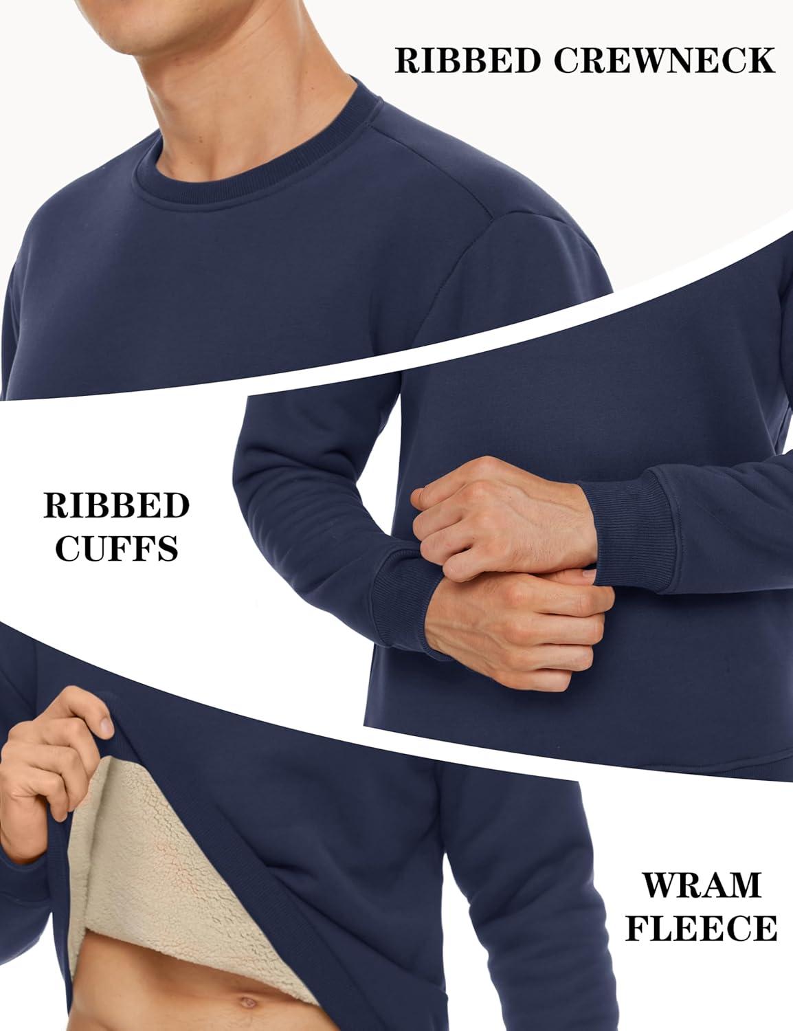 TACVASEN Men’s Crewneck Sweatshirt Warm Sherpa Lined Thermal Sweatshirts Heavyweight Long Sleeve Winter Fleece Pullover Shirt(Navy)
