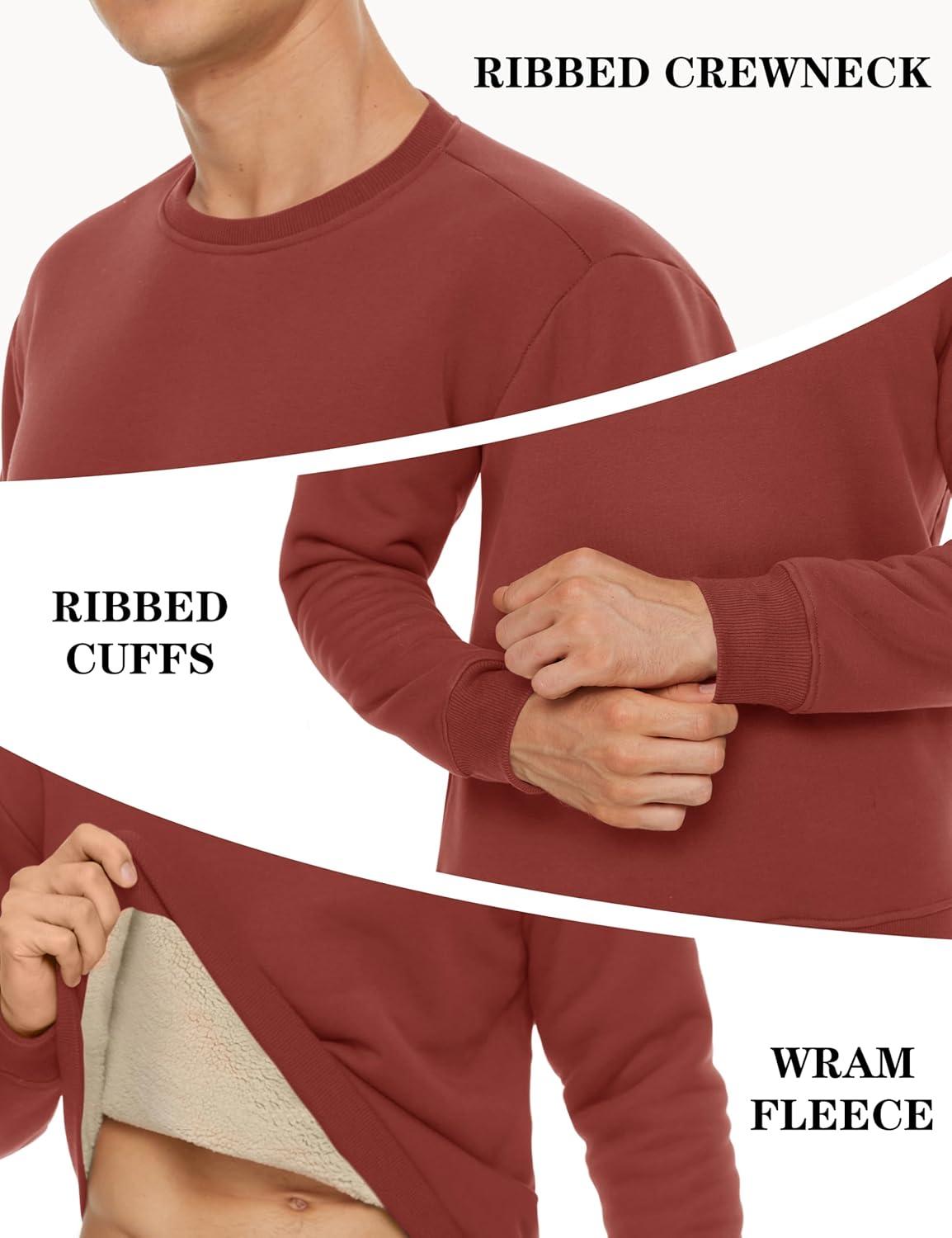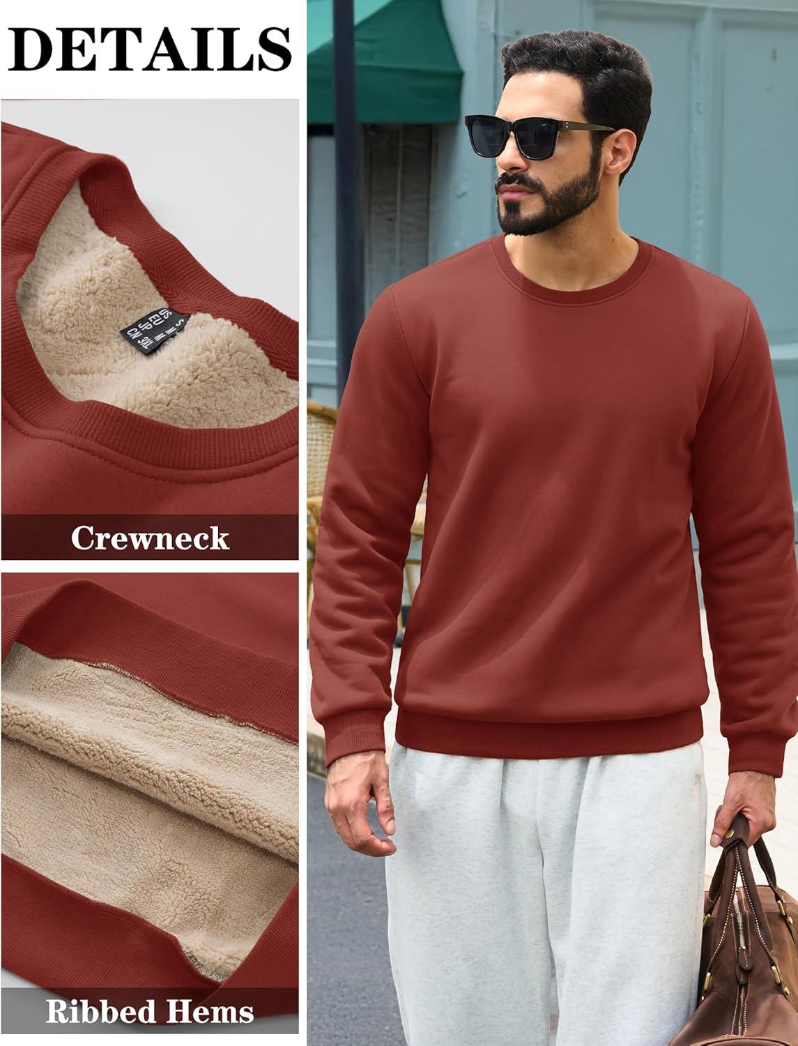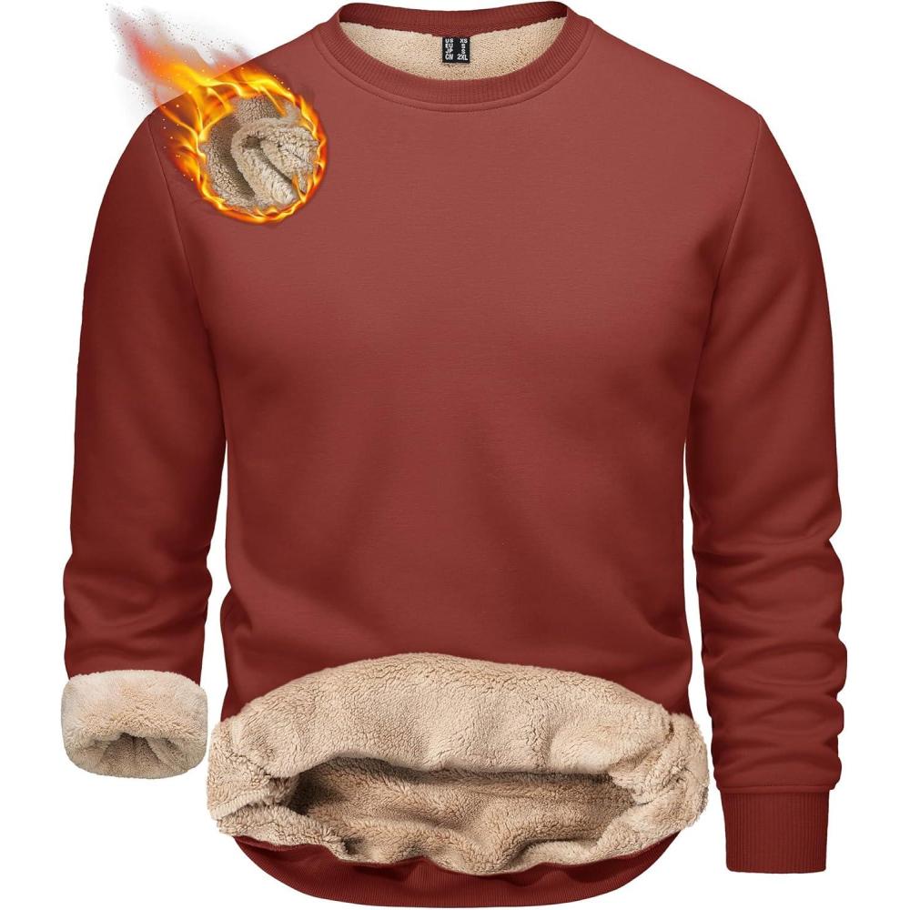 TACVASEN Men’s Crewneck Sweatshirt Warm Sherpa Lined Thermal Sweatshirts Heavyweight Long Sleeve Winter Fleece Pullover Shirt(Orange Red)