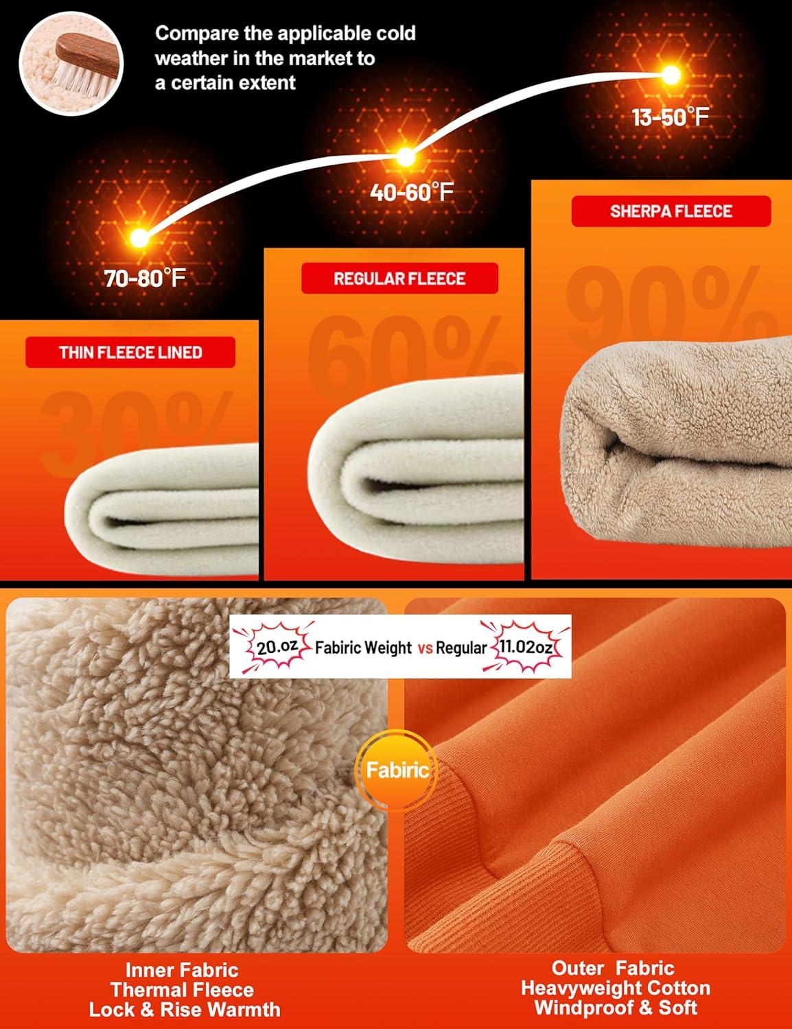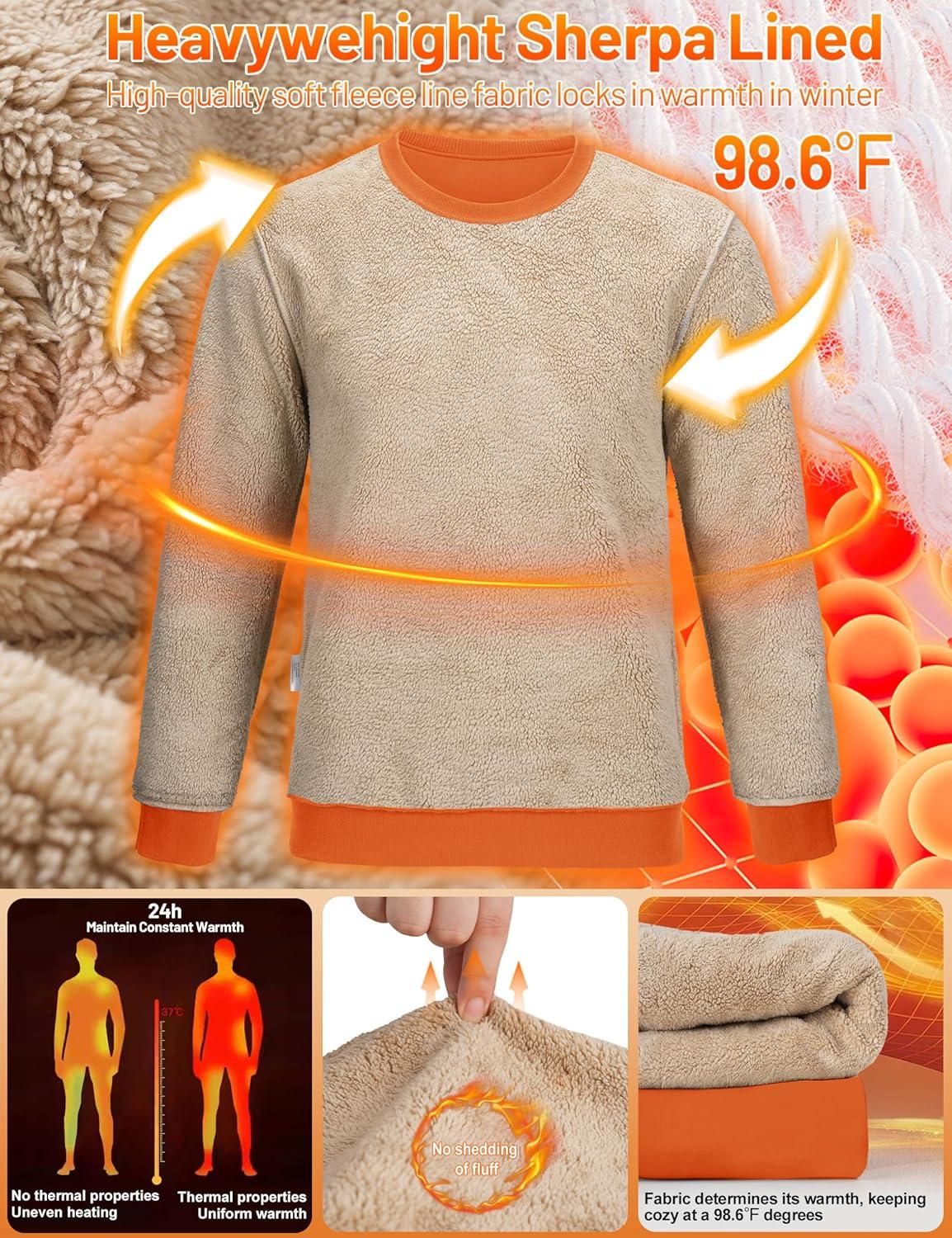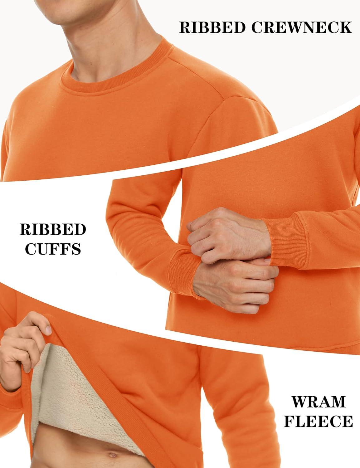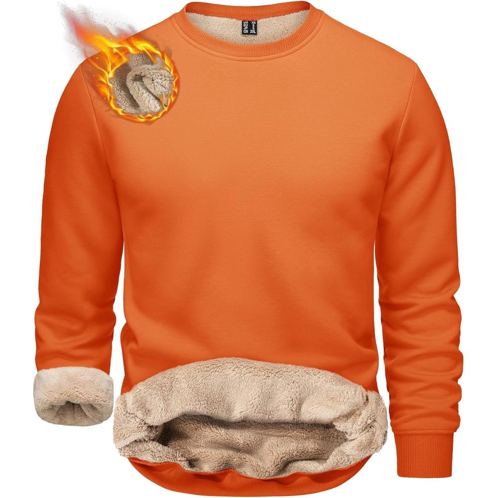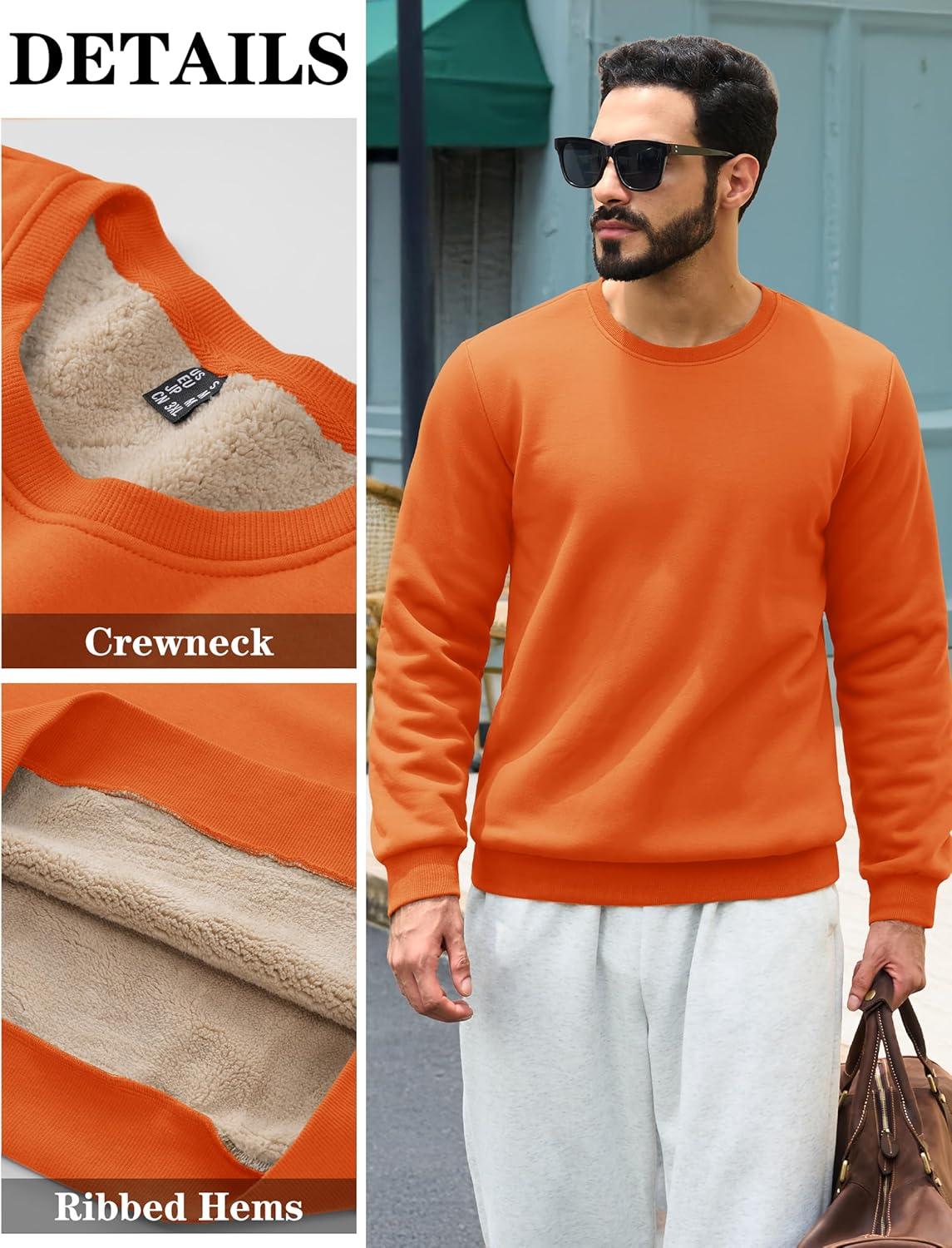 TACVASEN Men’s Crewneck Sweatshirt Warm Sherpa Lined Thermal Sweatshirts Heavyweight Long Sleeve Winter Fleece Pullover Shirt(Orange)