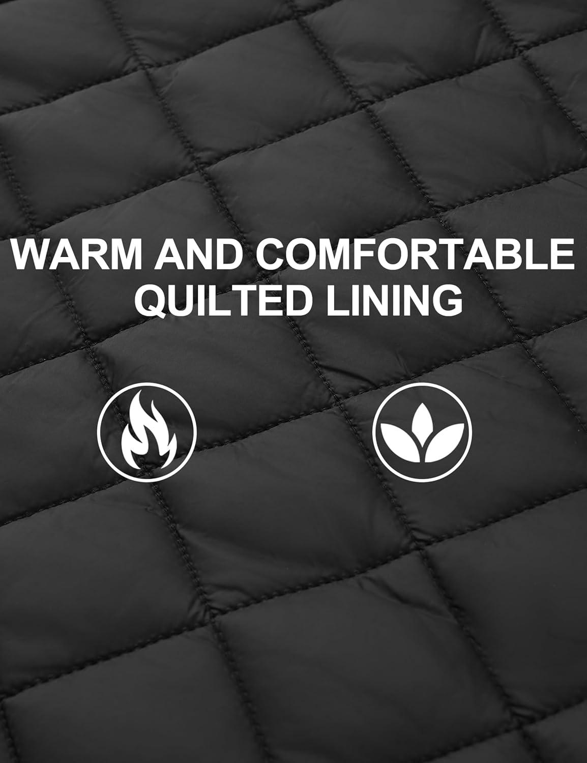 TACVASEN Men’s Flannel Jacket with Hood Quilted Lined Plaid Shirts Jacket Cotton Long Sleeve Button Down Shirt Shacket(Black)