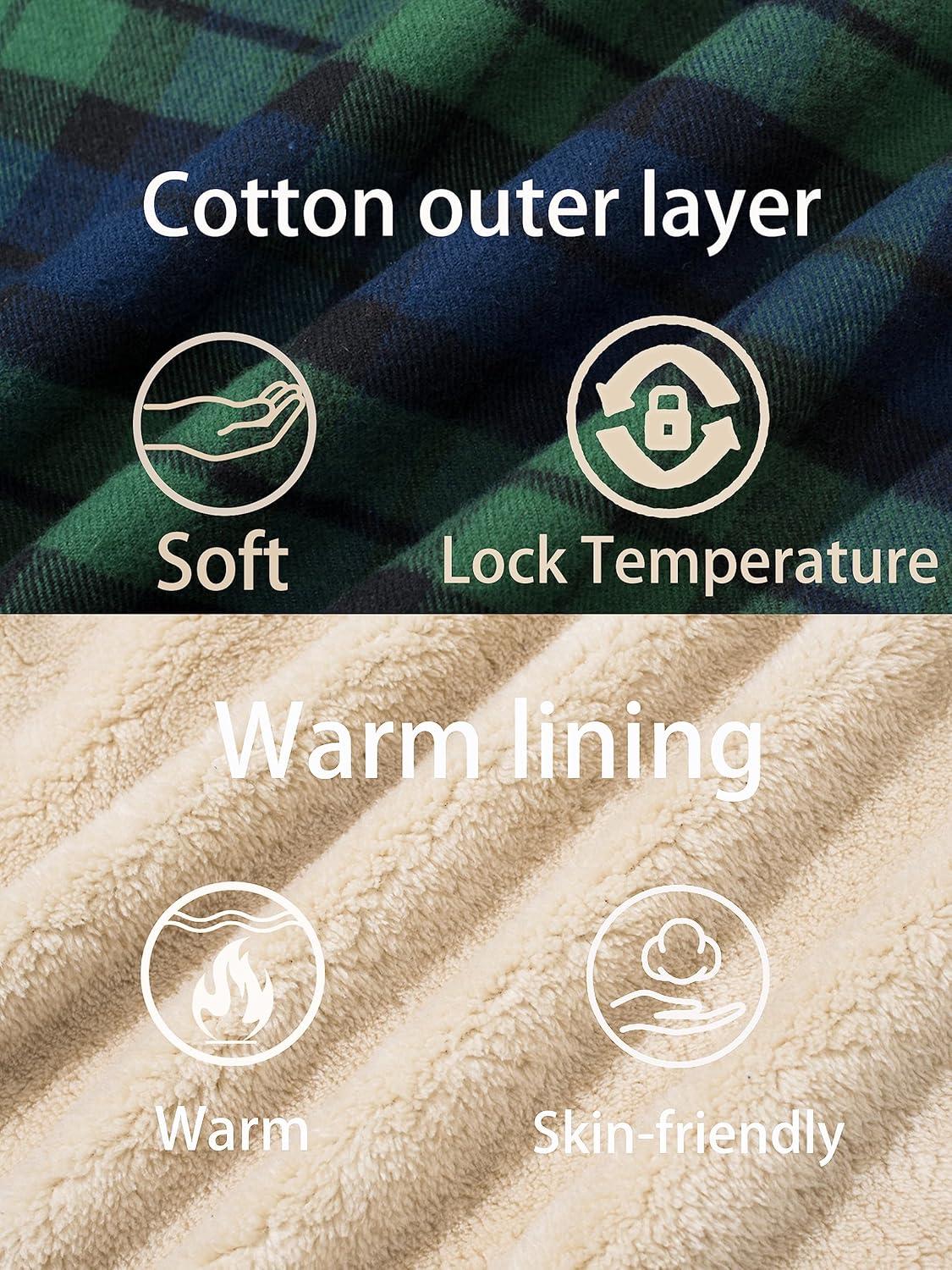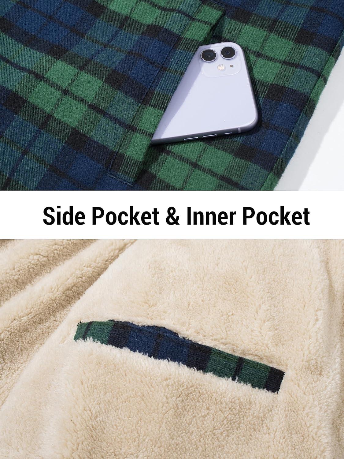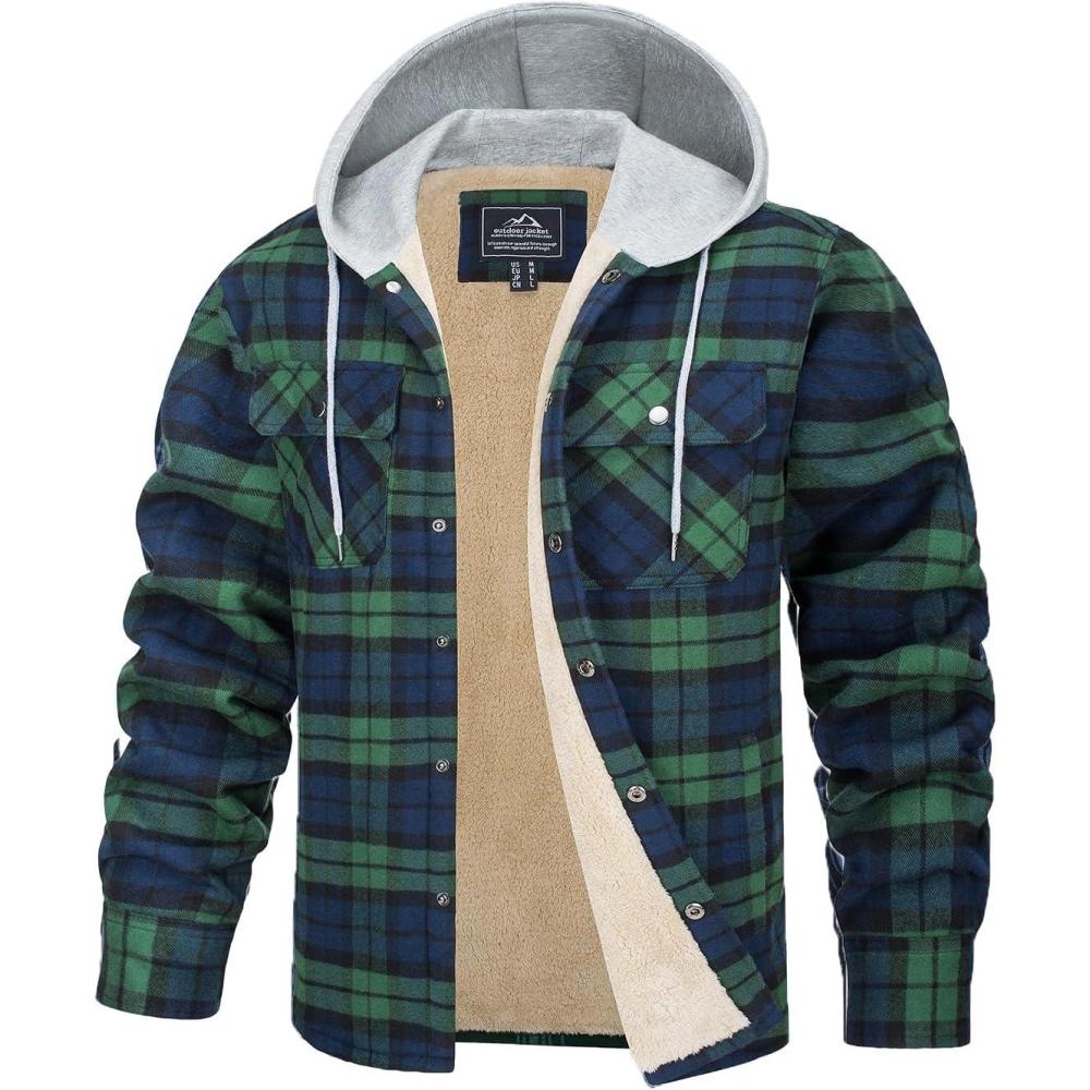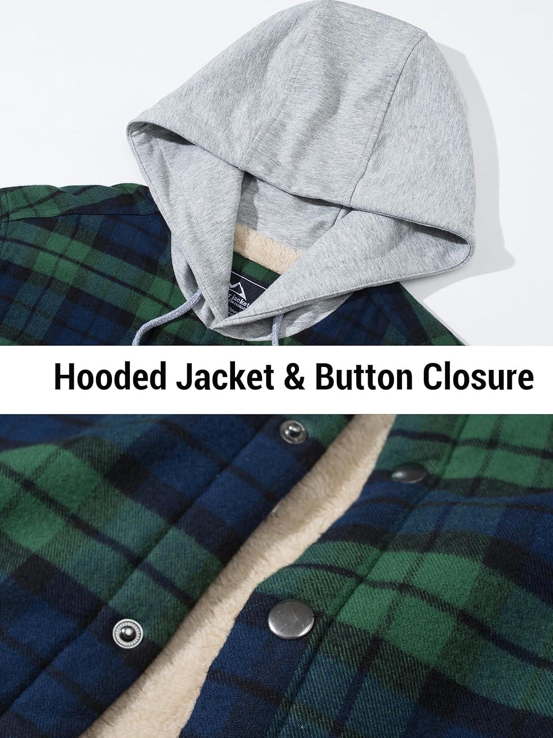 TACVASEN Men’s Flannel Jacket with Pockets Shacket Plaid Shirts Fleece Padded shirt Button Down Jackets with Hood(Green Deep Blue)