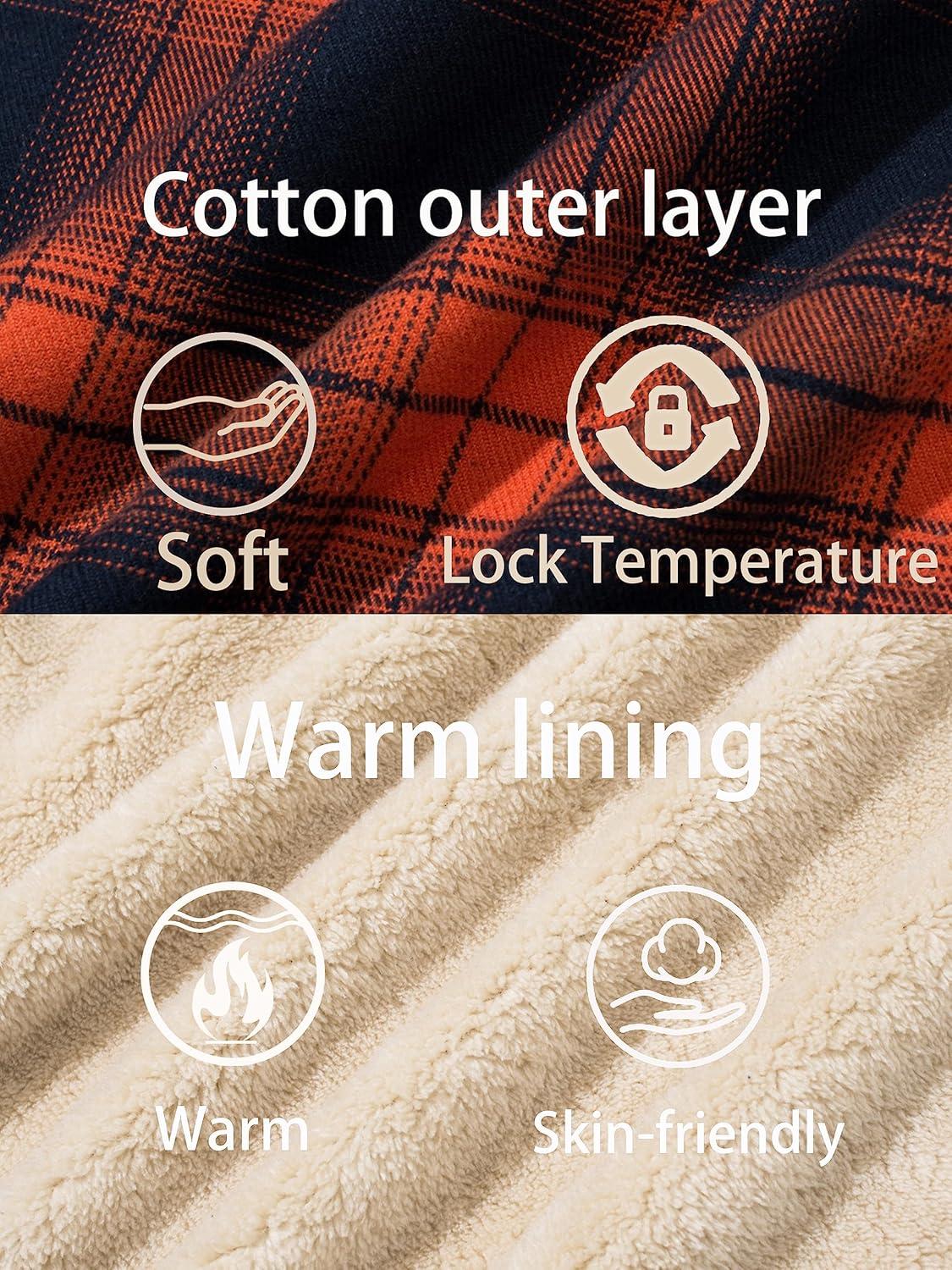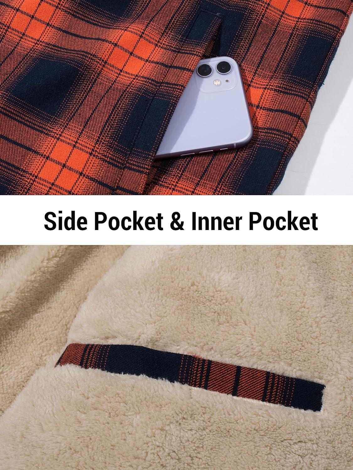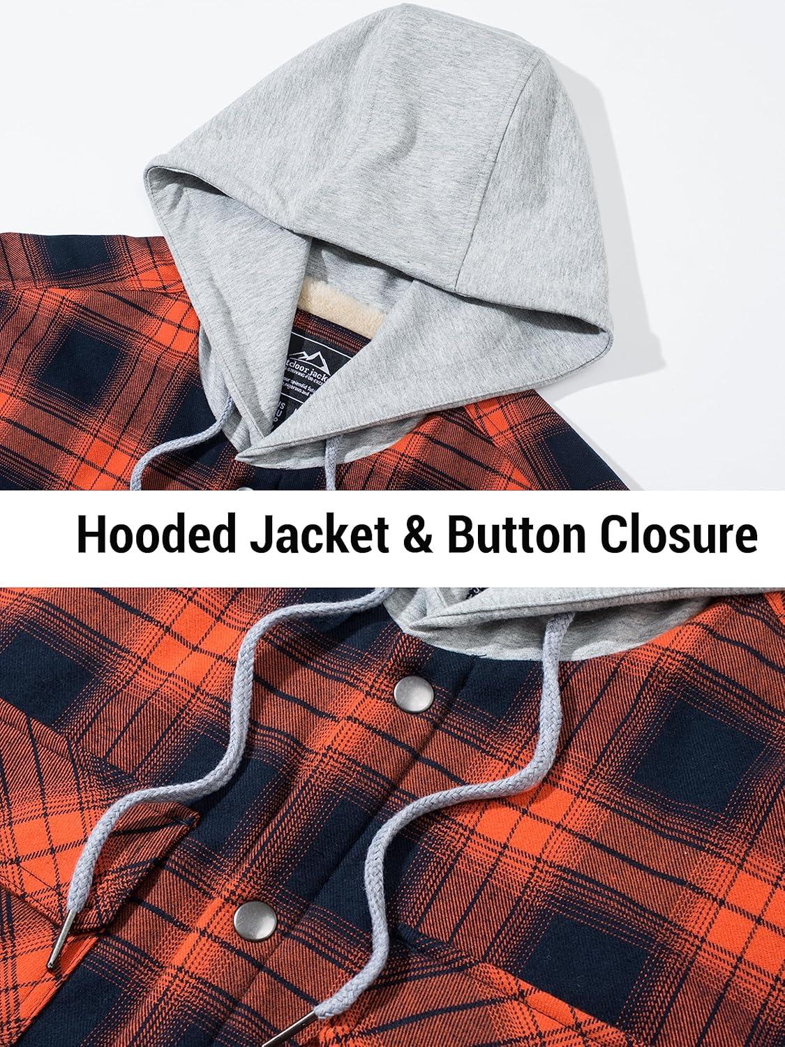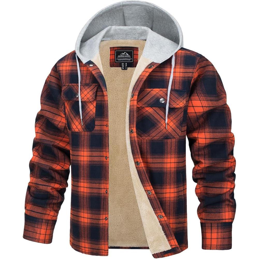 TACVASEN Men’s Flannel Jacket with Pockets Shacket Plaid Shirts Fleece Padded shirt Button Down Jackets with Hood(Orange Navy Blue)