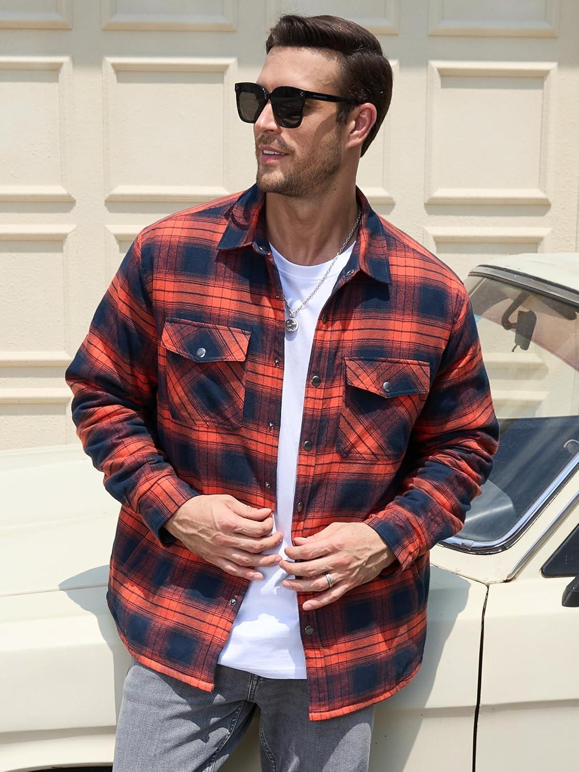 TACVASEN Men’s Flannel Shirt Jacket Quilted Lined Long Sleeve Button Down Shirts Jacket(Orange)