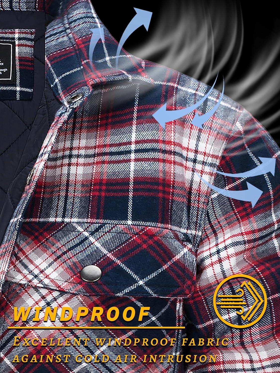 TACVASEN Men’s Flannel Shirt Jacket Quilted Lined Long Sleeve Button Down Shirts Jacket(Red)