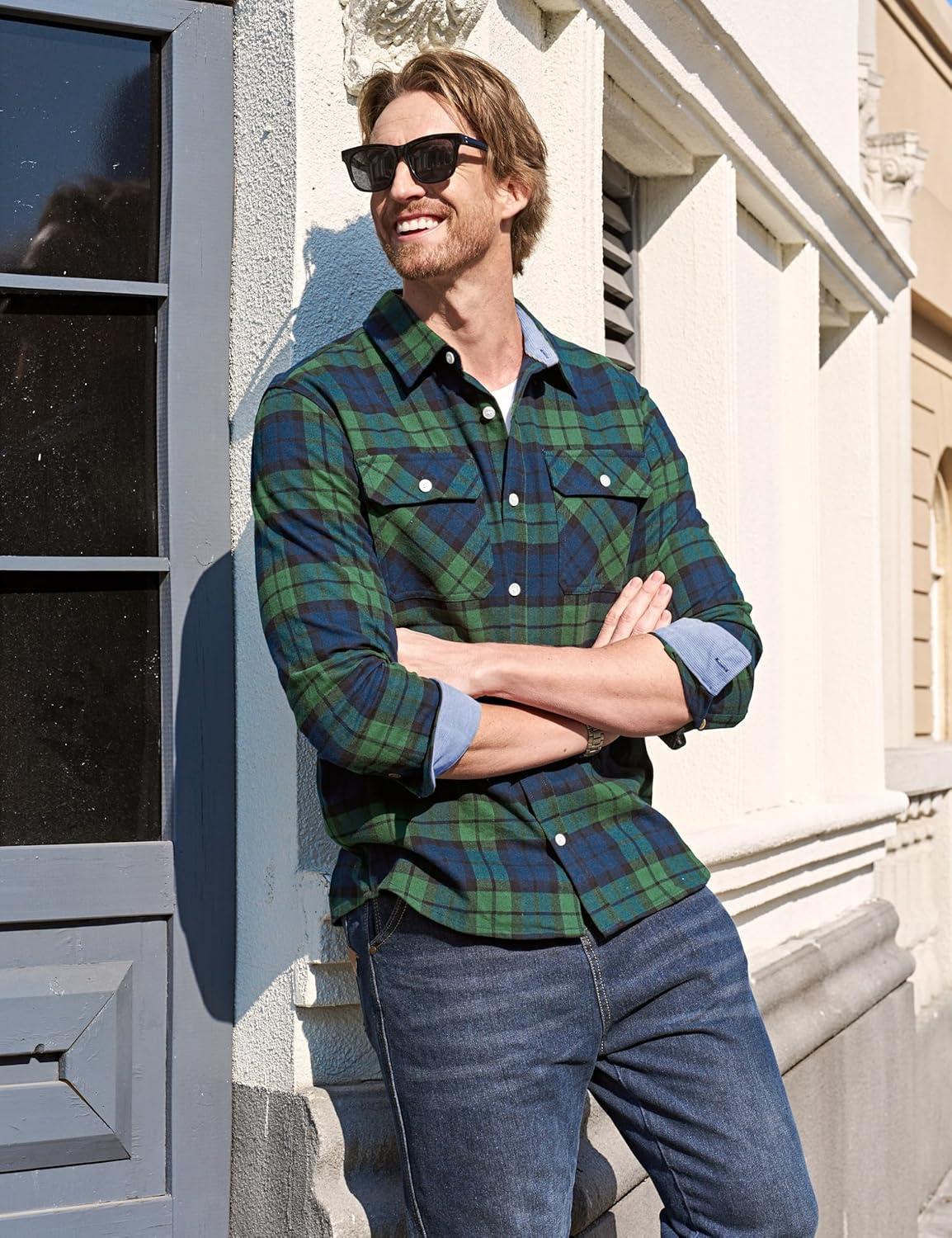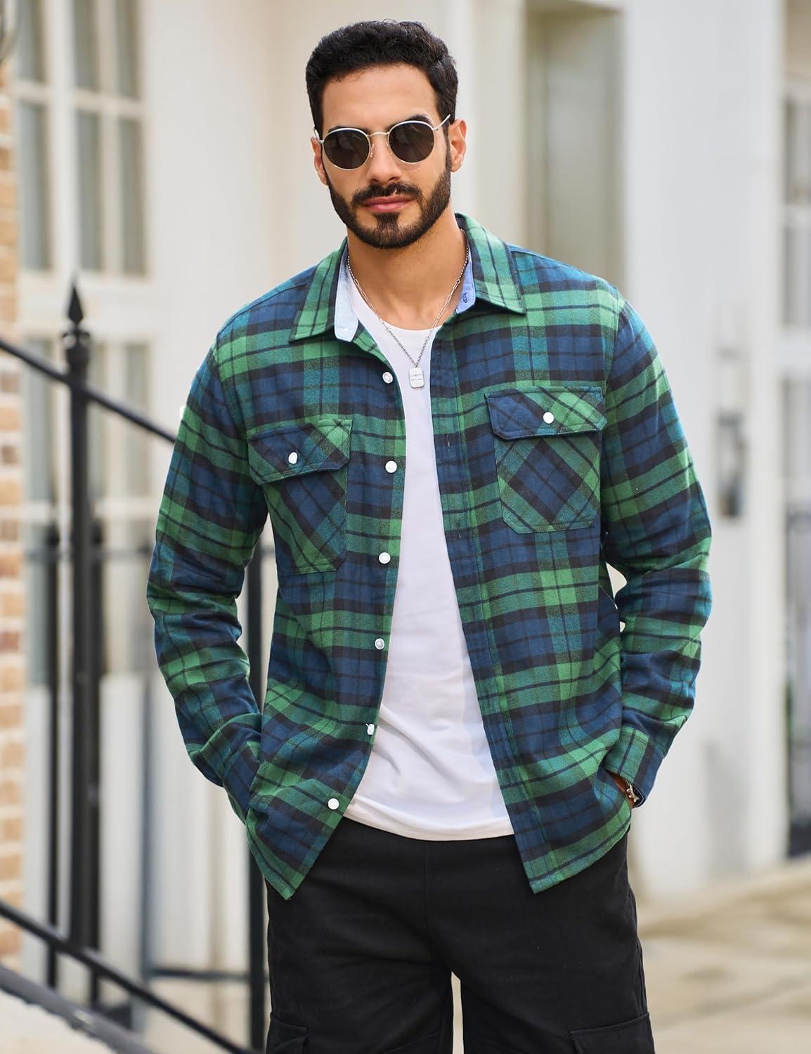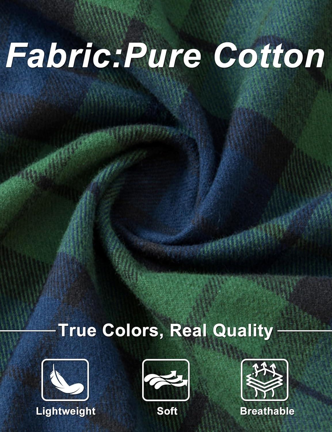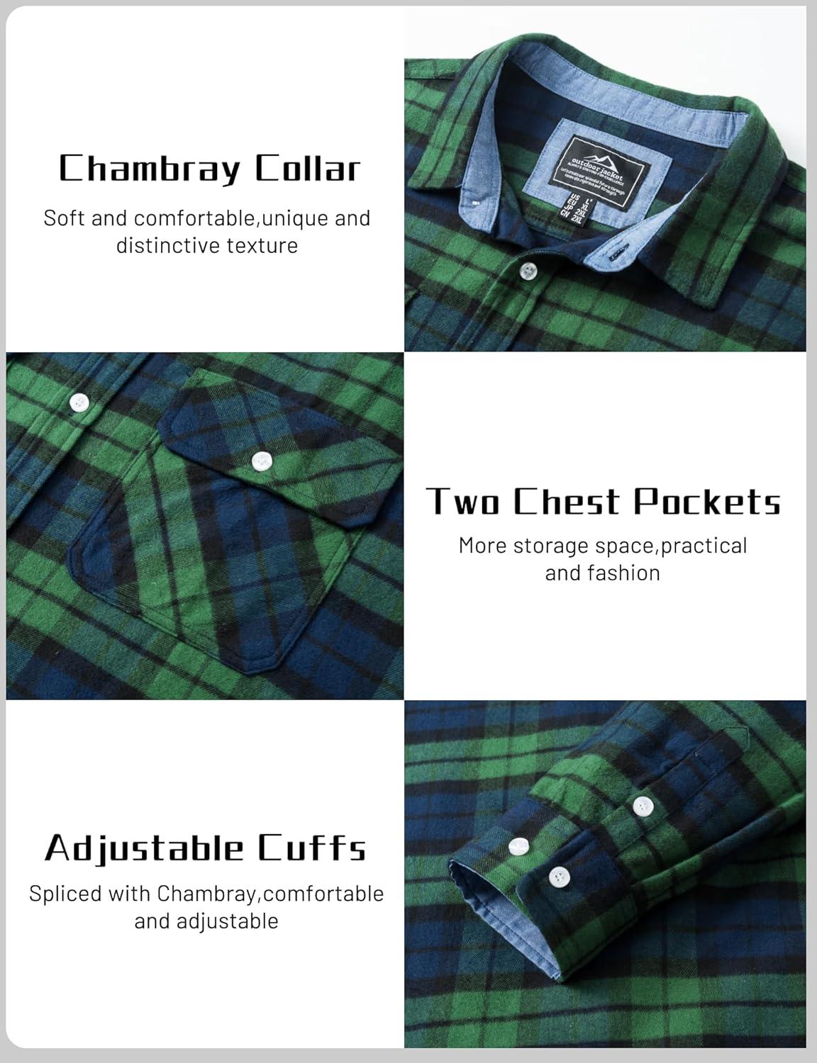 TACVASEN Mens Flannel Shirt Long Sleeve Plaid Shirts Cotton Lightweight Casual Button Down Work Shirt with 2 Pockets(Green)