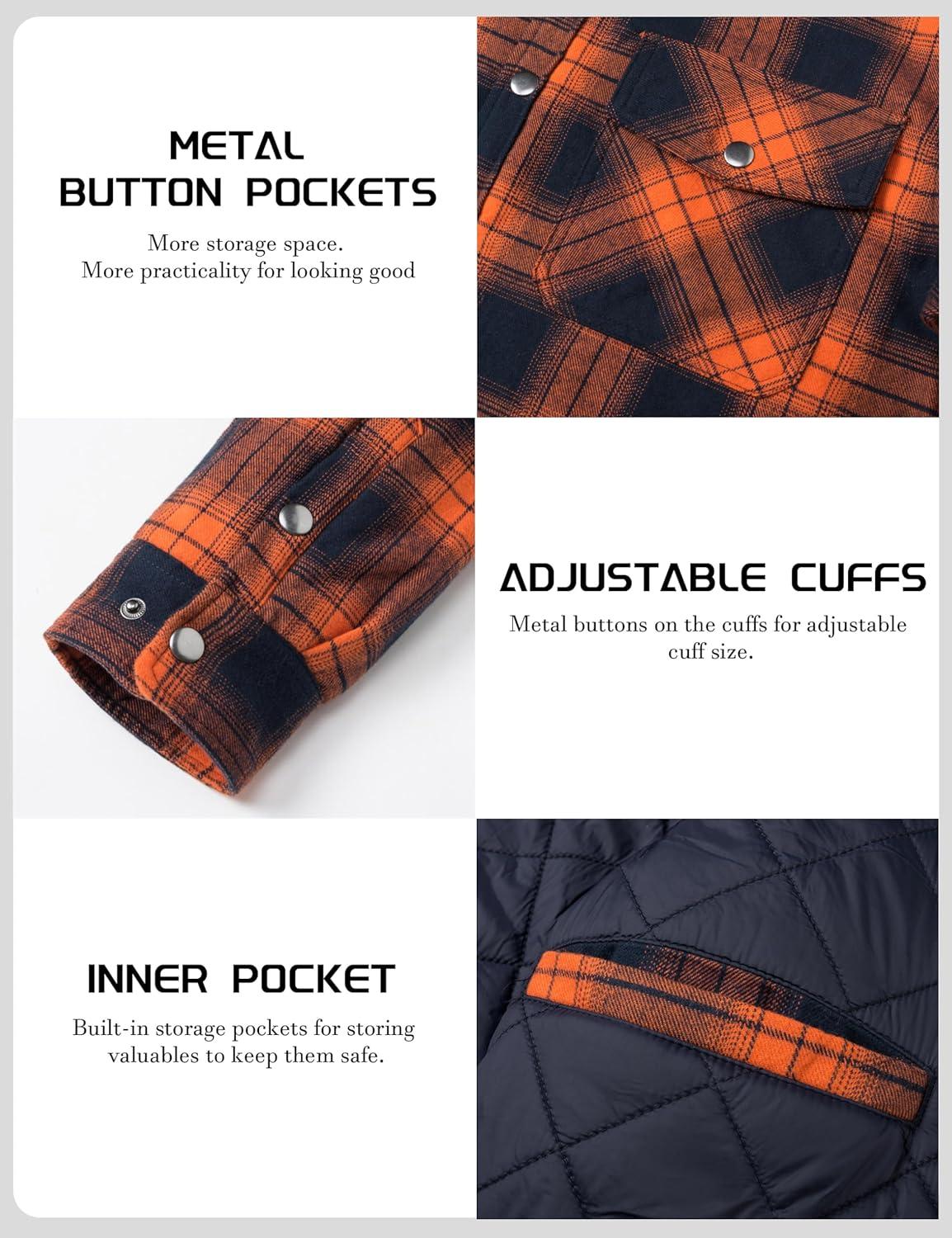 Be the first to review “TACVASEN Men’s Flannel Shirt Quilted Lined Theraml Winter Coat Button Down Insulated Flannel Shirts Jacket(#00 Orange)”