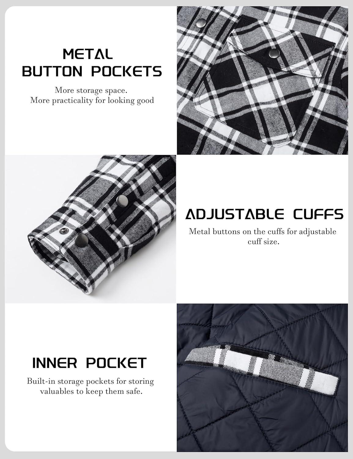 TACVASEN Men’s Flannel Shirt Quilted Lined Theraml Winter Coat Button Down Insulated Flannel Shirts Jacket(Black)