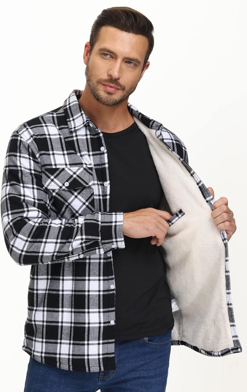This fashionable plaid flannel shirt jacket with fleece sherpa lined is perfect gift for friends and families.
