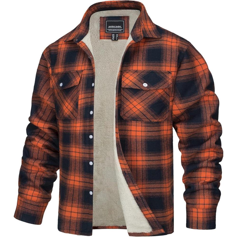 This fashionable plaid flannel shirt jacket with fleece sherpa lined is perfect gift for friends and families.