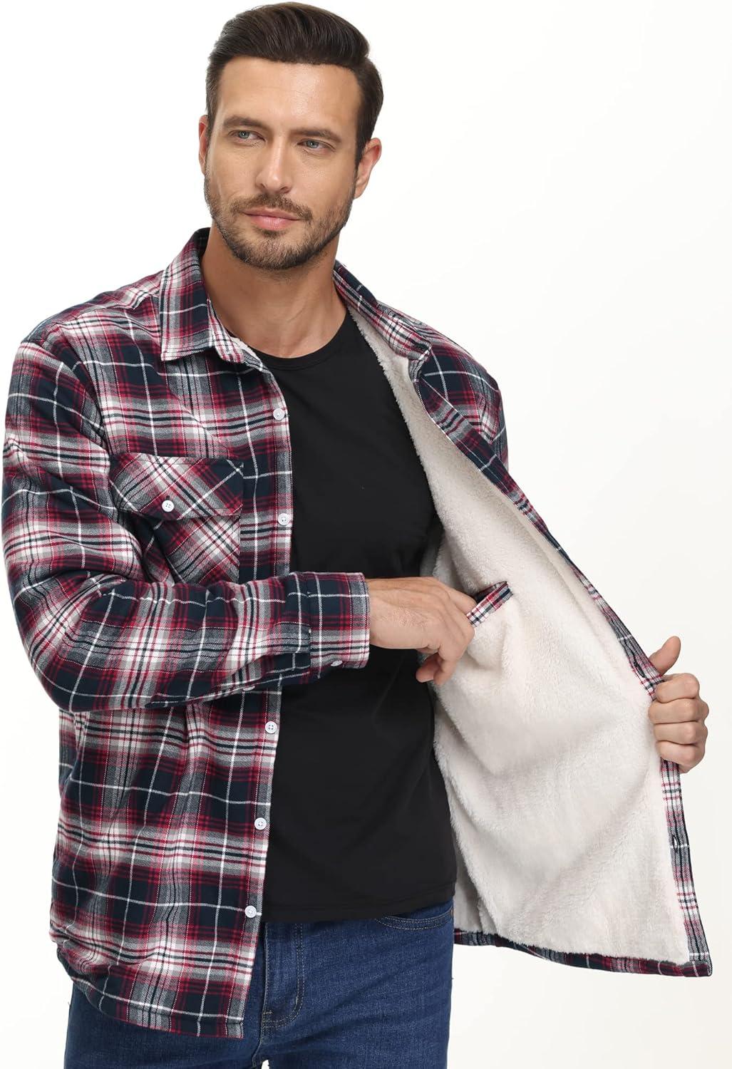 TACVASEN Men’s Fleece Flannel Plaid Shirt Jacket Soft Sherpa Lined Cotton Casual Thickened Button Down Coat With Pockets(Red)