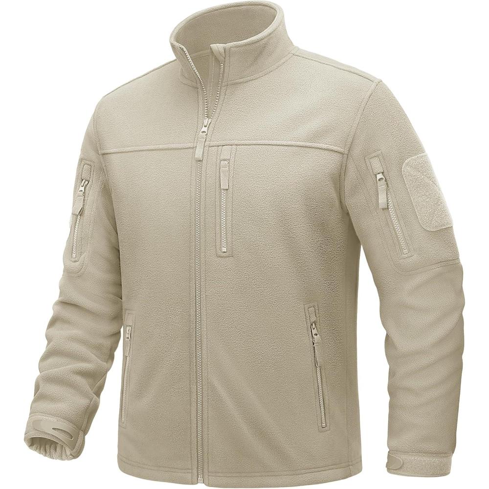 TACVASEN Men’s Fleece Jacket Full Zip Winter Lightweight Tactical Jackets Outdoor Hiking Coats with Pockets(Beige)