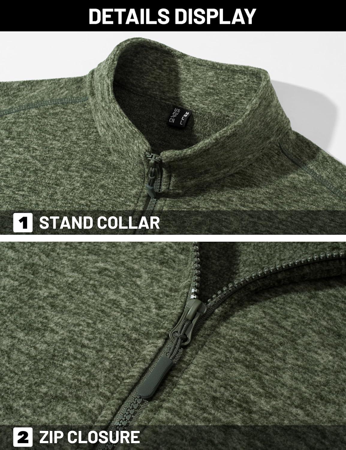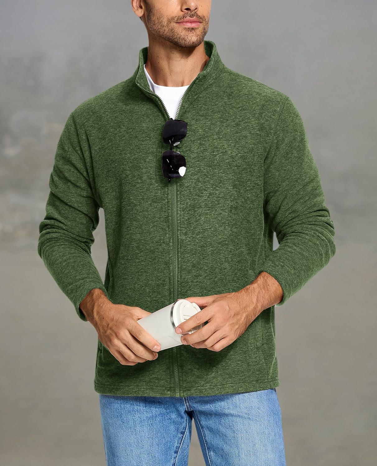 TACVASEN Men’s Fleece Jackets Full Zip Lightweight Jacket Casual Soft Warm Coats with Pockets(A-green)