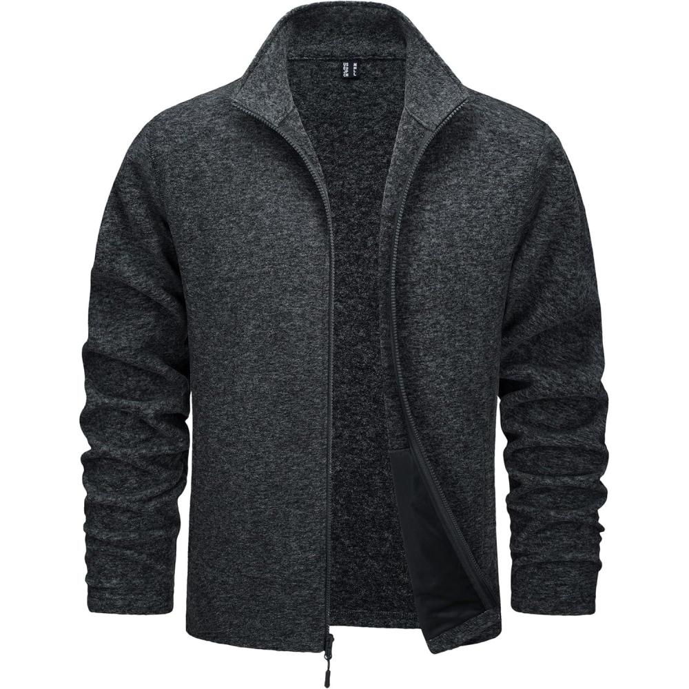 TACVASEN Men’s Fleece Jackets Full Zip Lightweight Jacket Casual Soft Warm Coats with Pockets(Dark Gray)