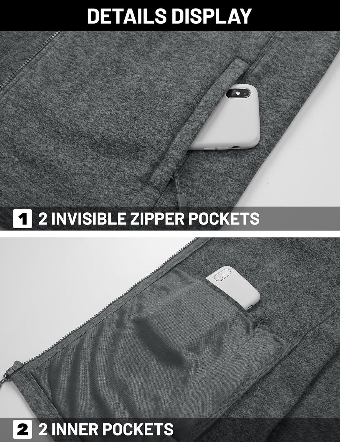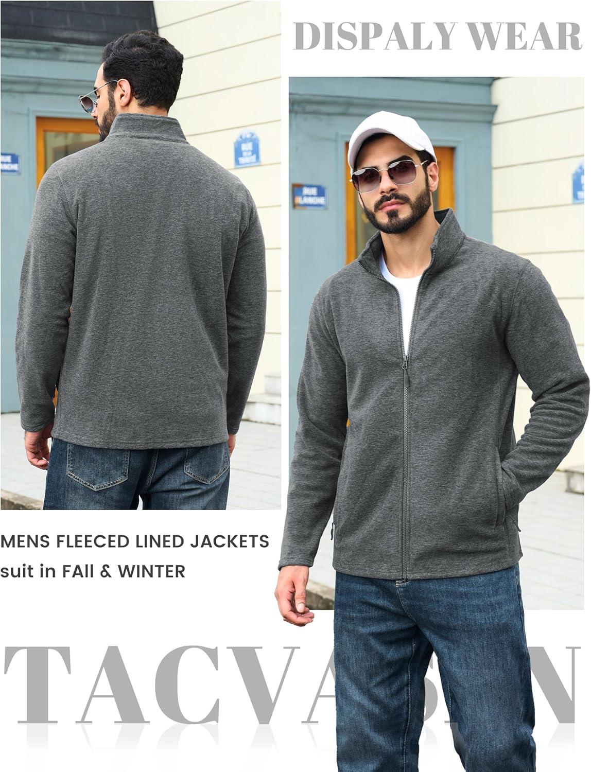 TACVASEN Men’s Fleece Jackets Full Zip Lightweight Jacket Casual Soft Warm Coats with Pockets(Dark Gray)