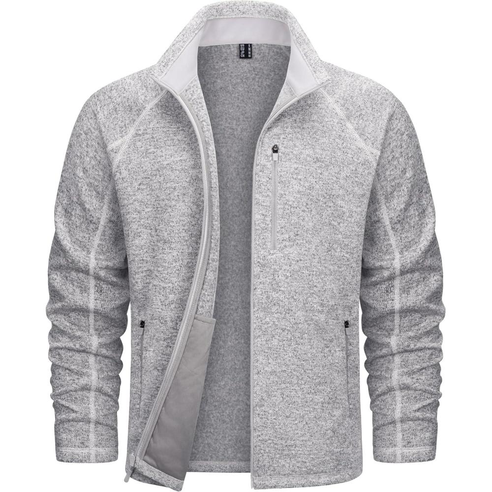 TACVASEN Men’s Fleece Jackets Full Zip Up Lightweight Jacket Casual Stylish with Pockets for Outdoor Office(White)