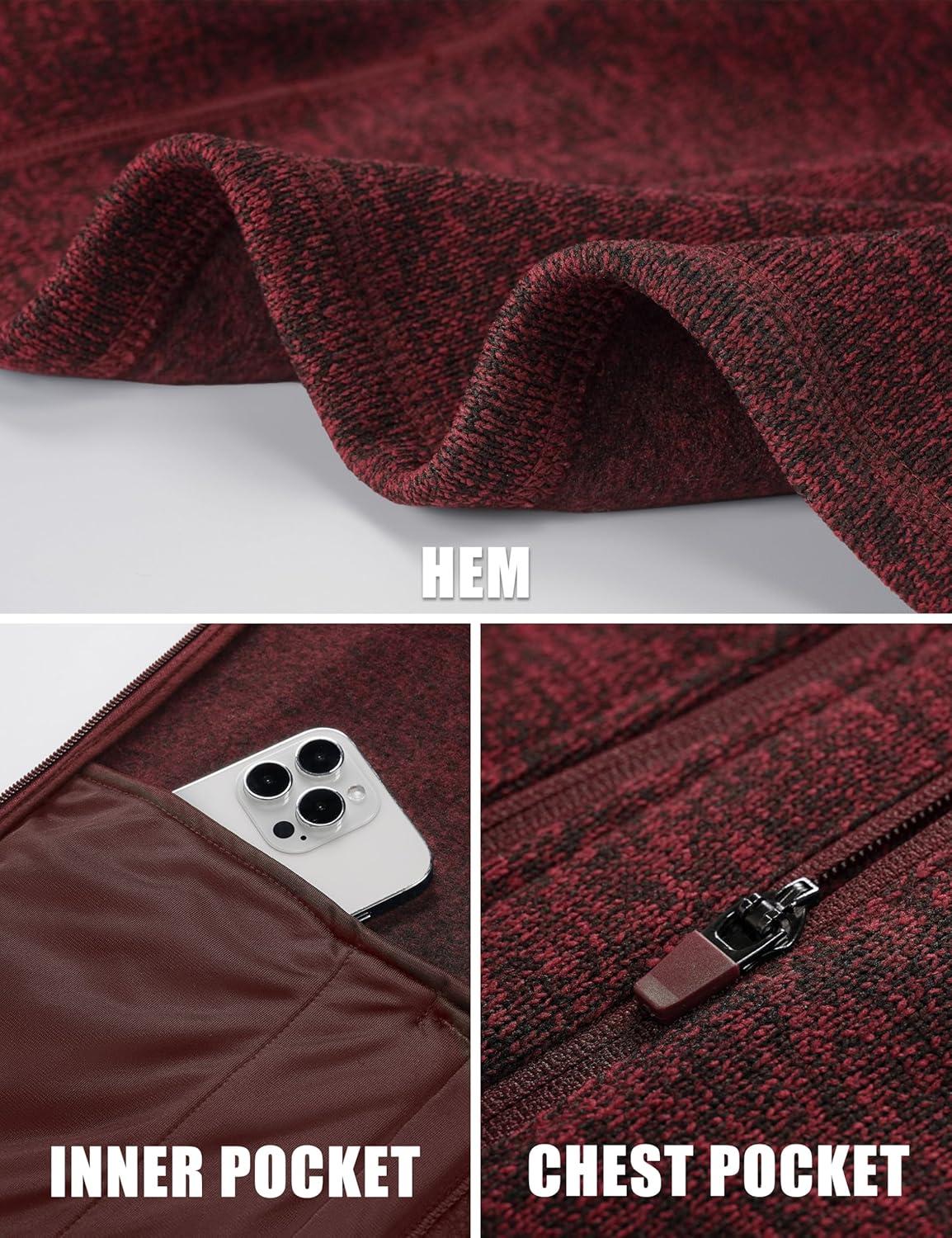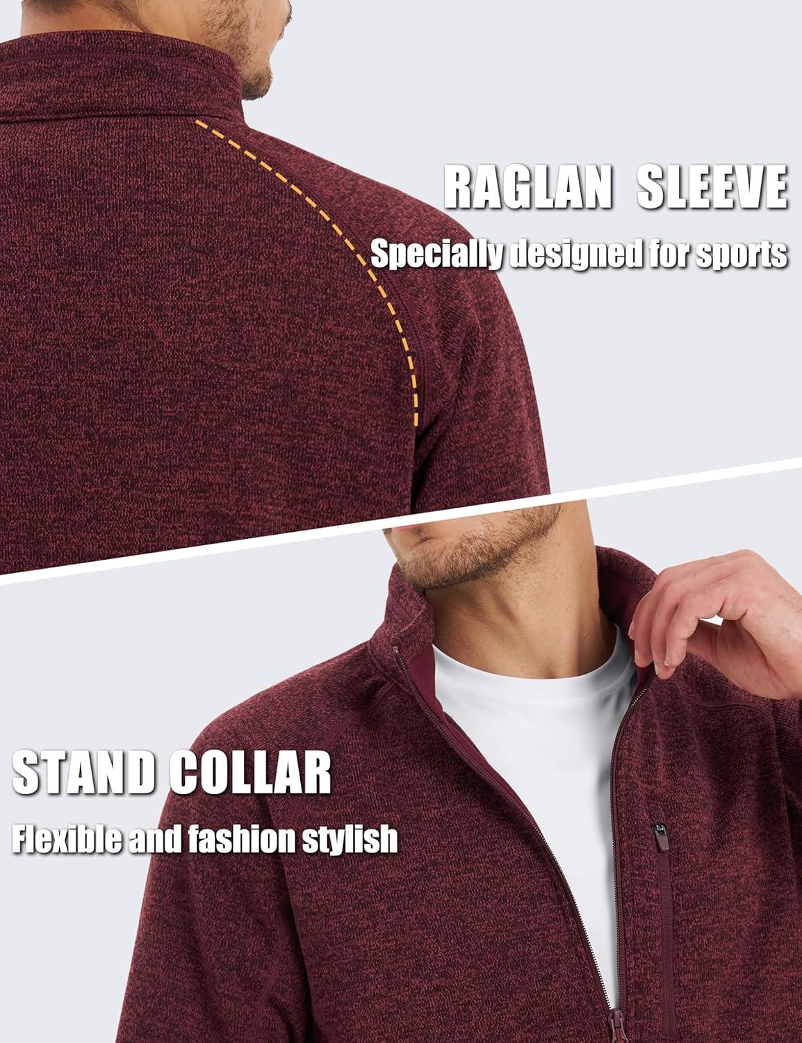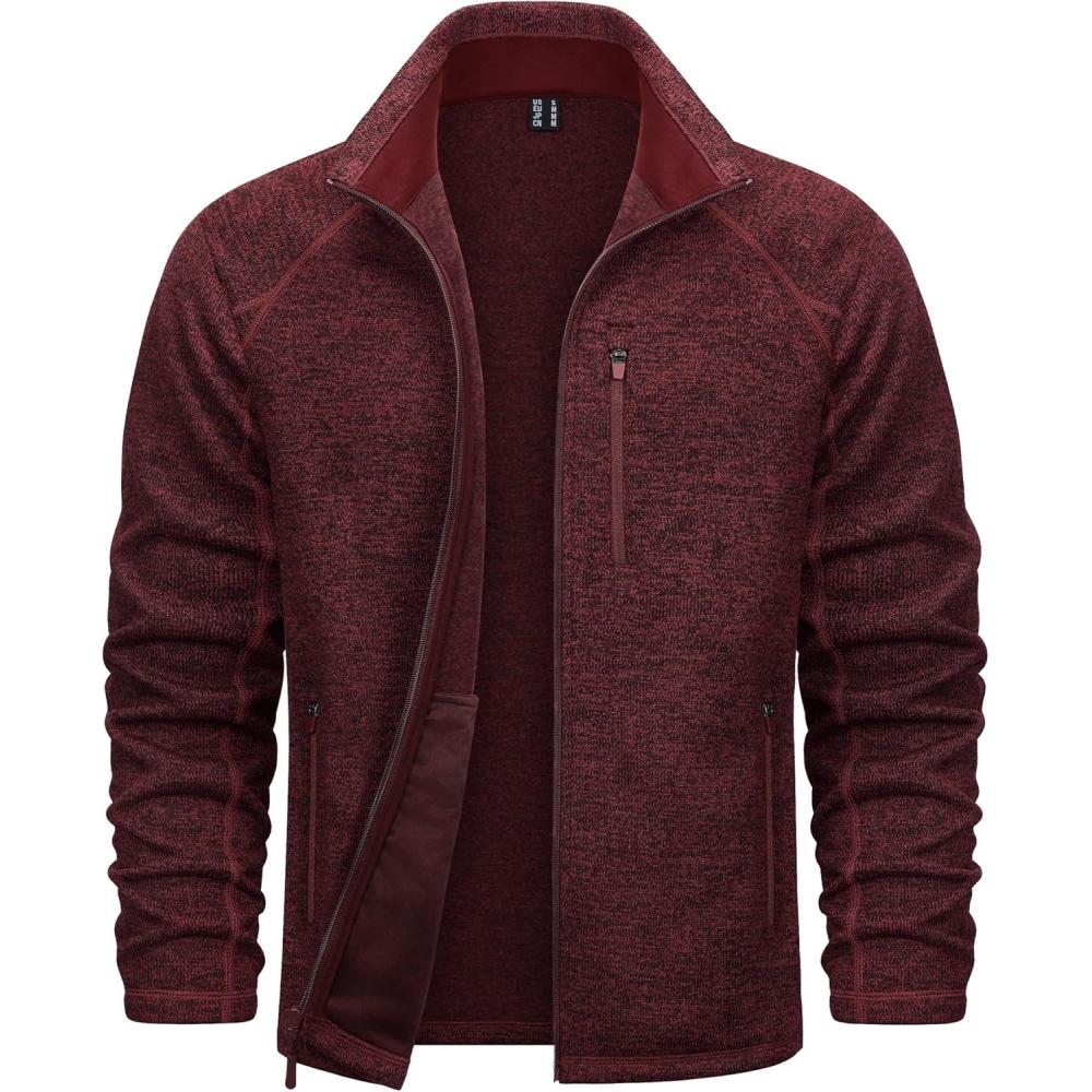 TACVASEN Men’s Fleece Jackets Full Zip Up Lightweight Jacket Casual Stylish with Pockets for Outdoor Office(Wine Red)