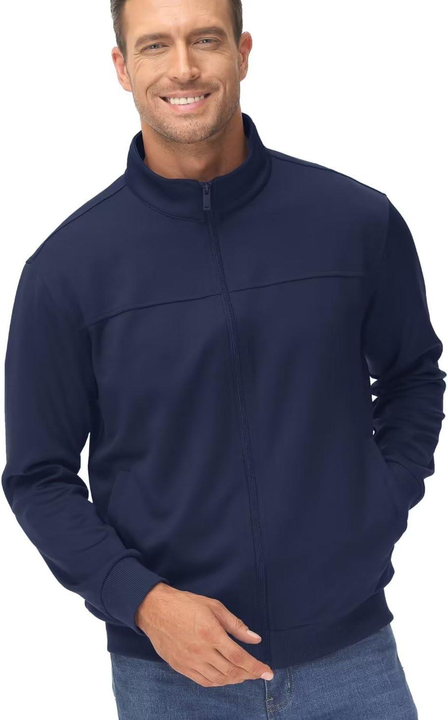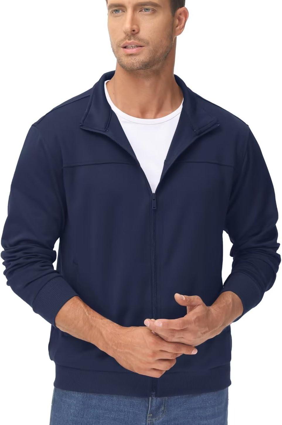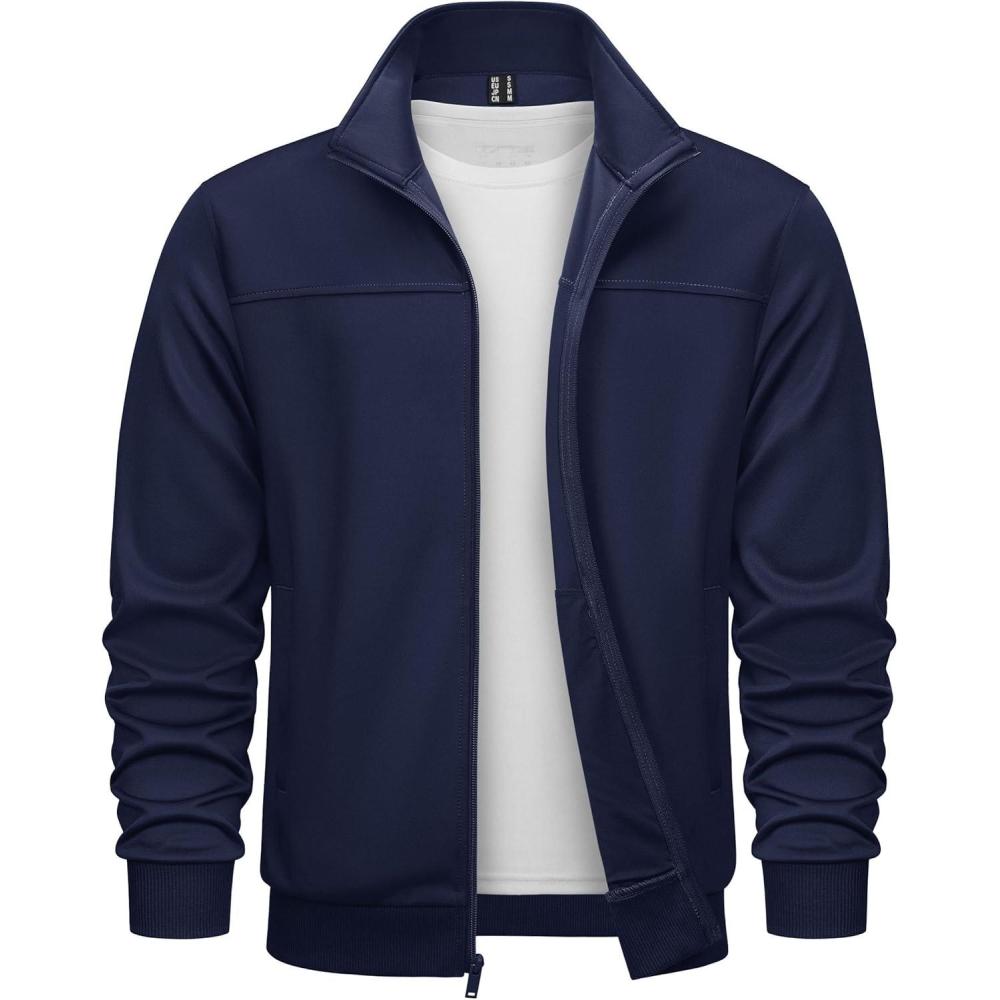TACVASEN Men’s Fleece Lined Track Athletic Jackets Lightweight Full Zip Collar Casual Coats for Running with Pockets(Navy)
