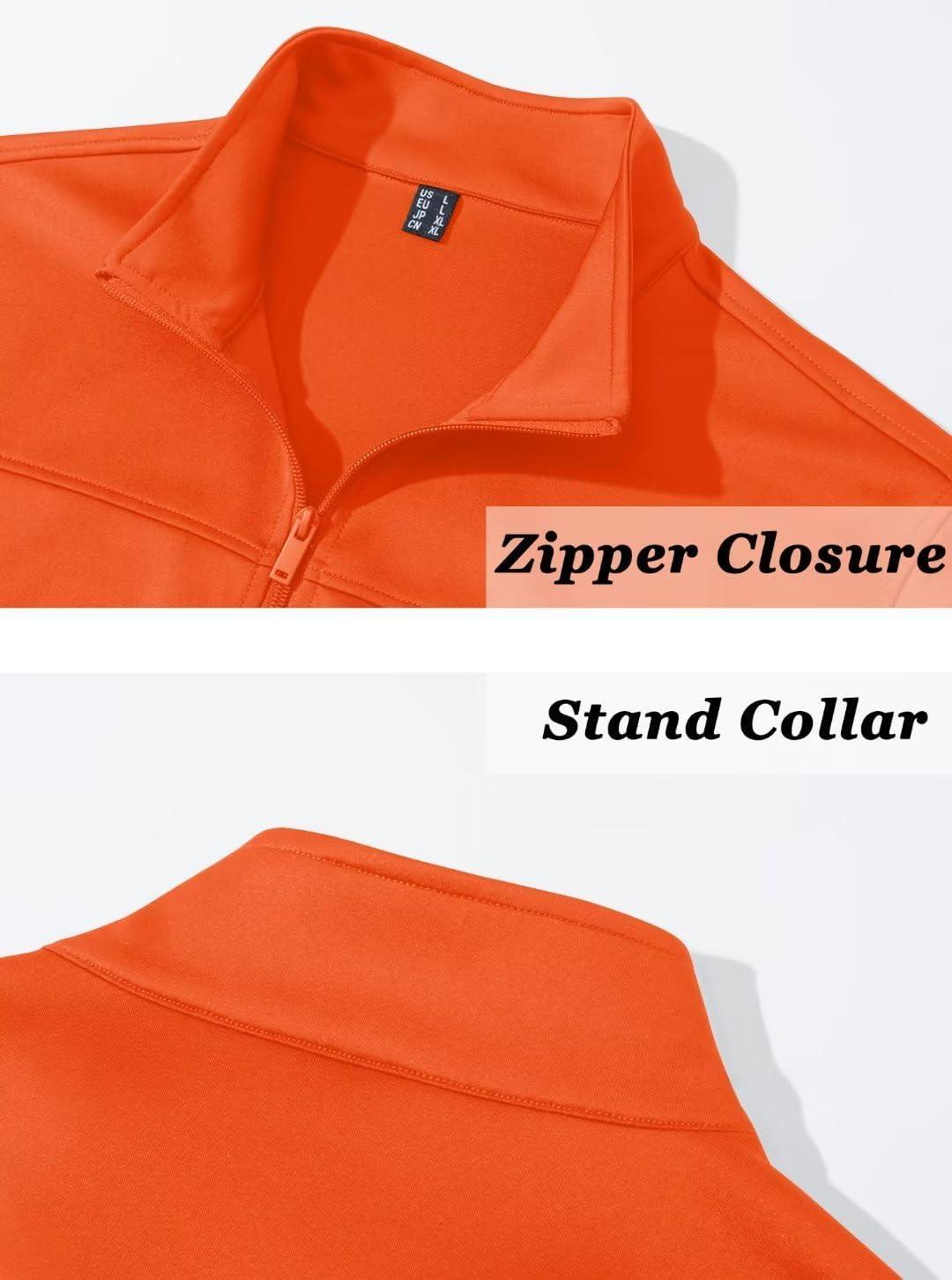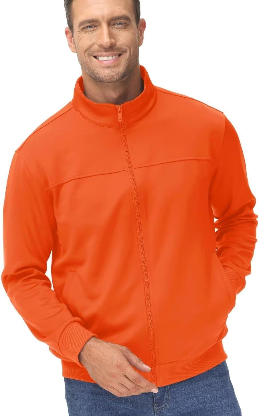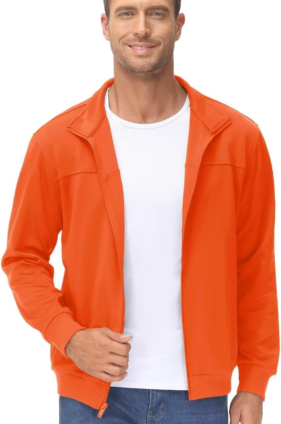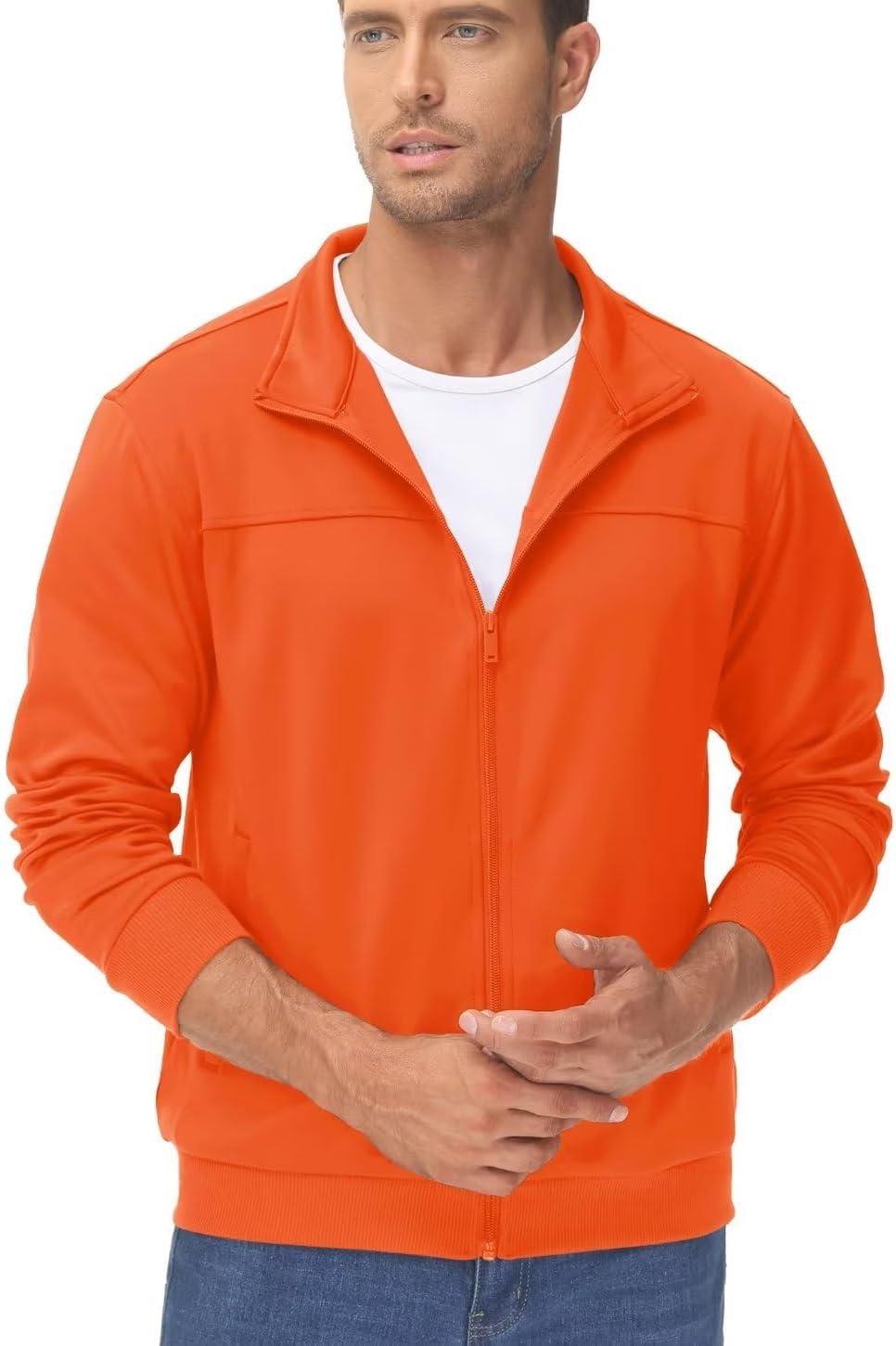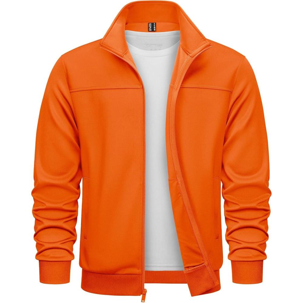 TACVASEN Men’s Fleece Lined Track Athletic Jackets Lightweight Full Zip Collar Casual Coats for Running with Pockets(Orange)