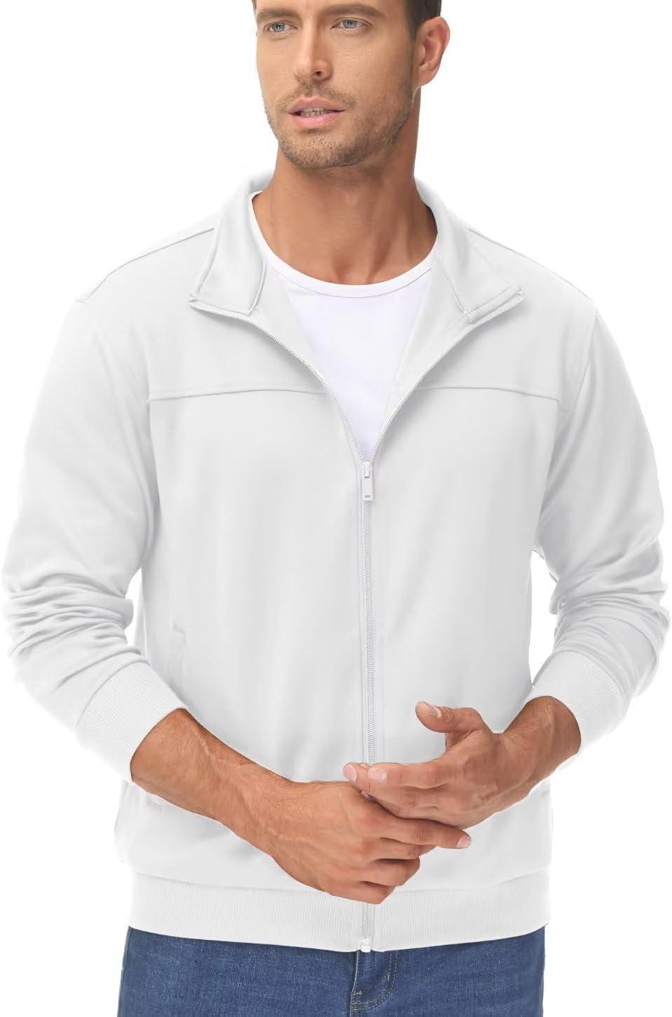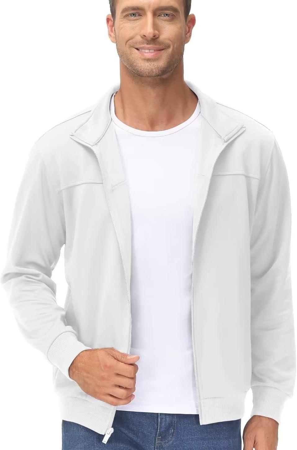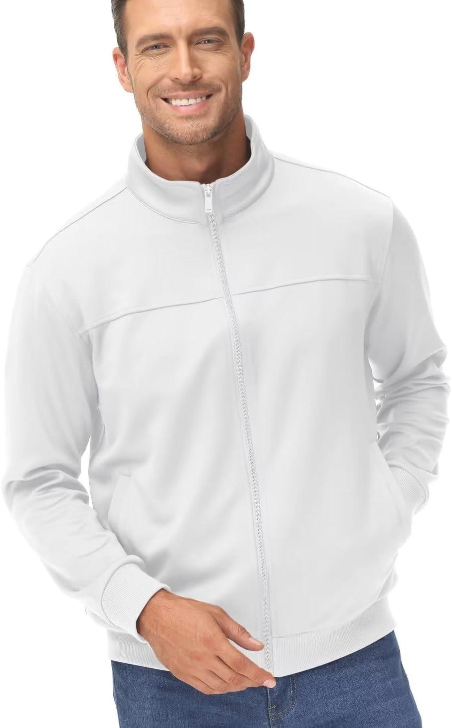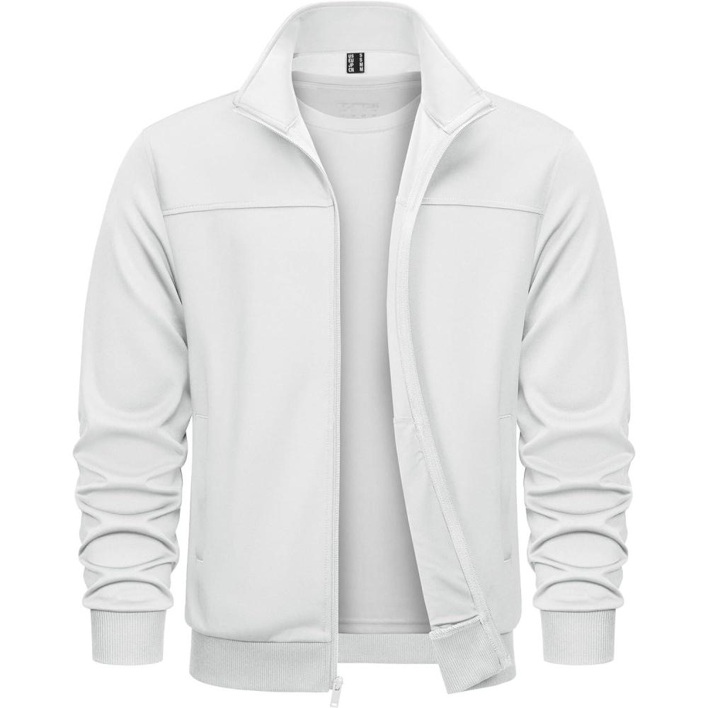 TACVASEN Men’s Fleece Lined Track Athletic Jackets Lightweight Full Zip Collar Casual Coats for Running with Pockets(White)