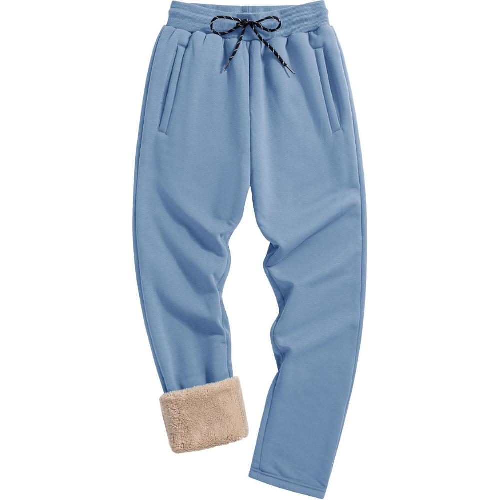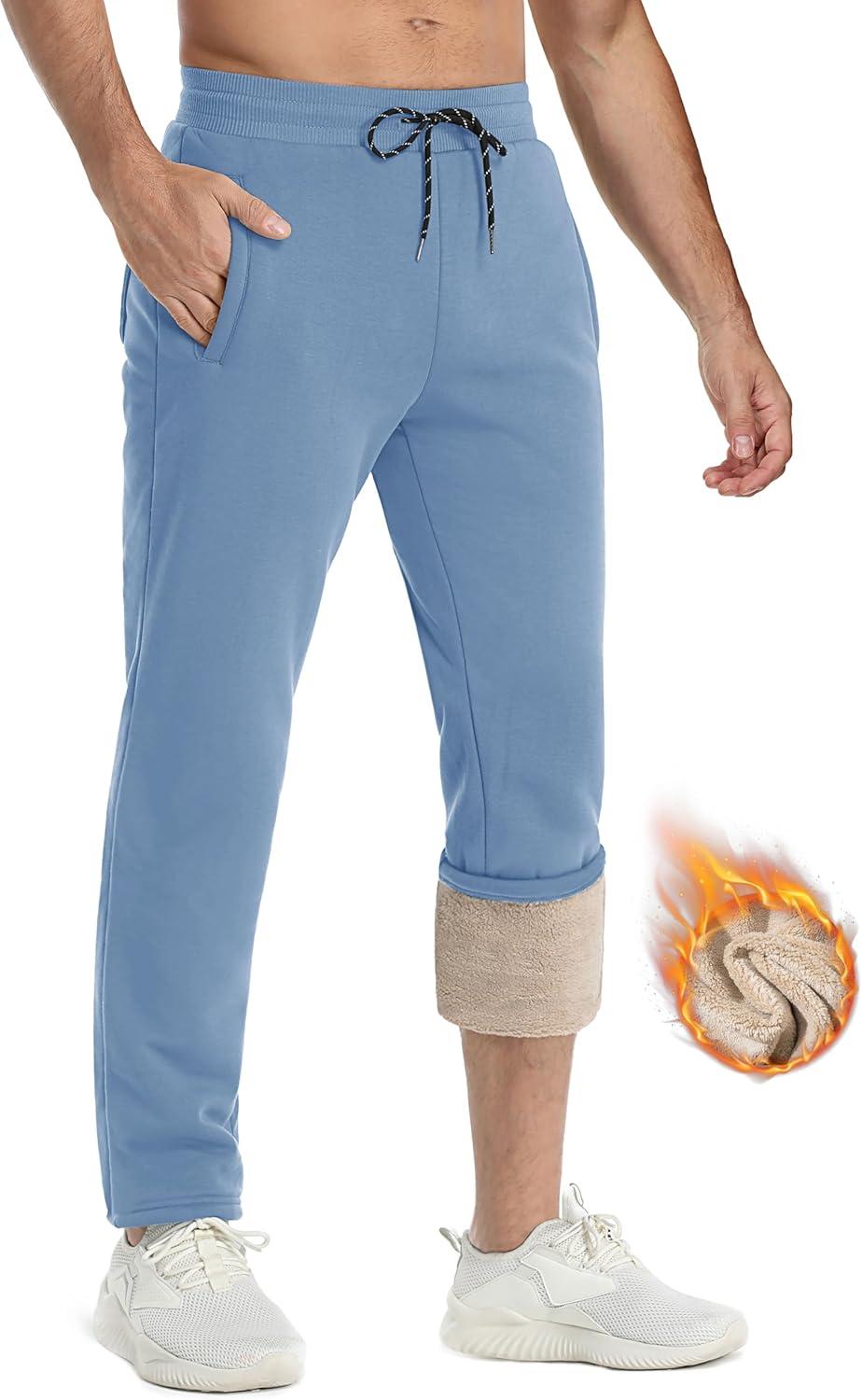 TACVASEN Men’s Fleece Winter Pants Warm Sherpa Lined Sweatpants Heavyweight Thermal Lounge Athletic Track Joggers(Haze Blue)