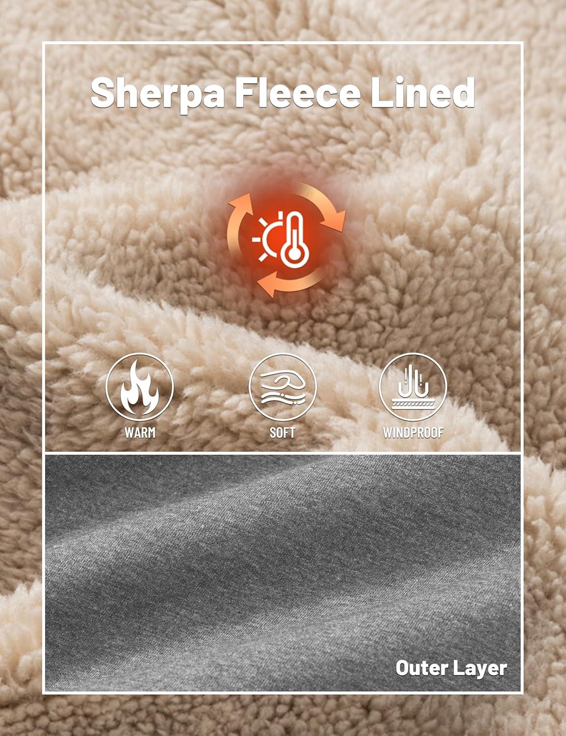 TACVASEN Men’s Fleece Winter Pants Warm Sherpa Lined Sweatpants Heavyweight Thermal Lounge Athletic Track Joggers(Khaki)