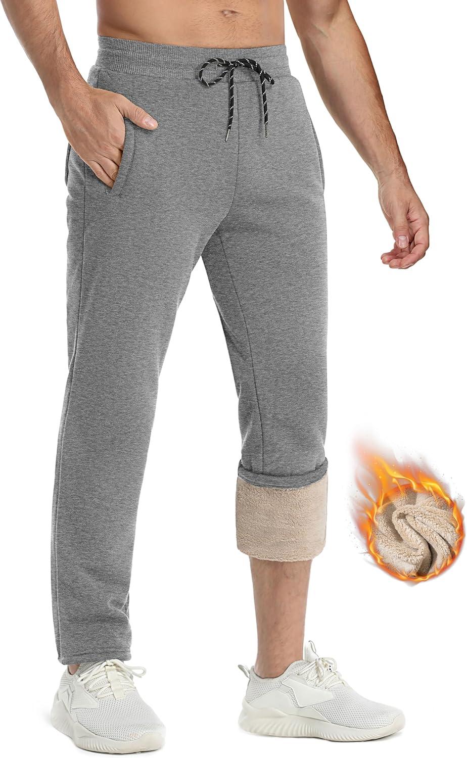 TACVASEN Men’s Fleece Winter Pants Warm Sherpa Lined Sweatpants Heavyweight Thermal Lounge Athletic Track Joggers(Light Grey Heather)