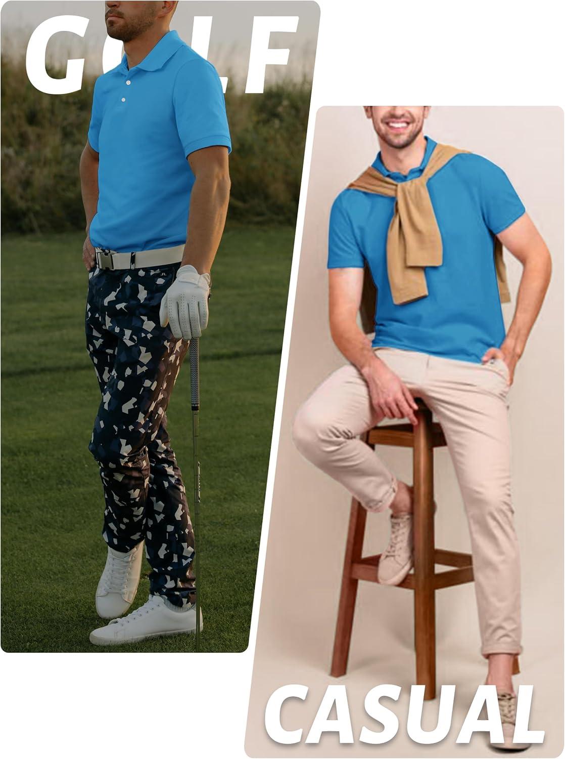 Men's Golf Polo Shirts Casual Collared Quick Dry T-Shirts Short Sleeve 3 Buttons Sport Tees