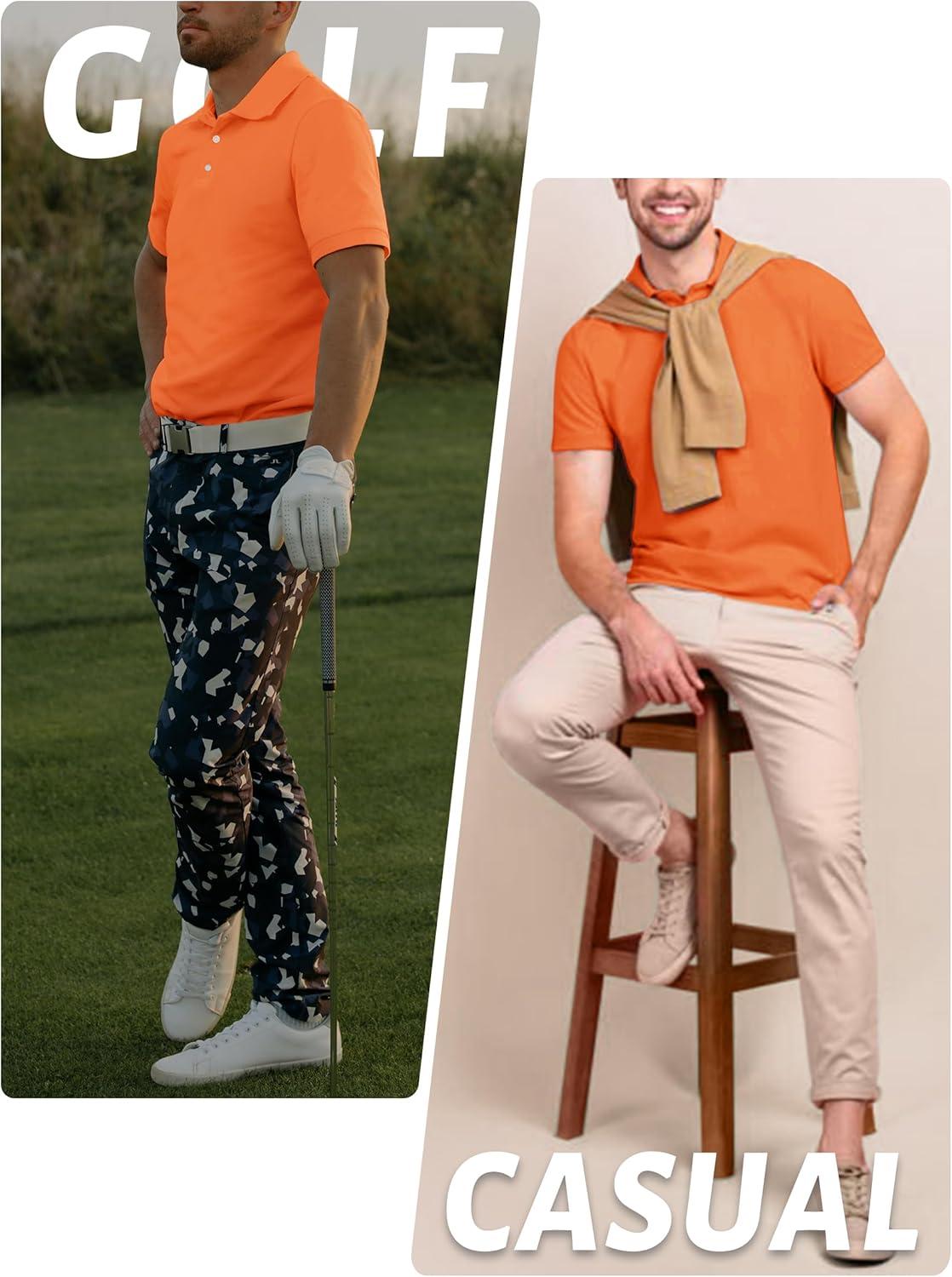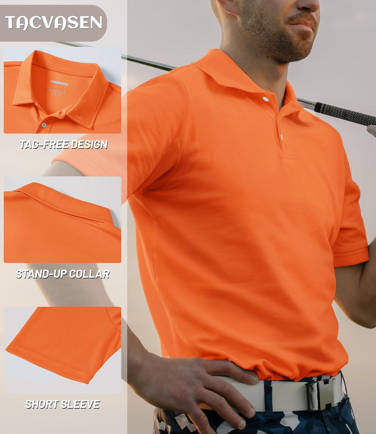 TACVASEN Mens Golf Shirt Dry Fit Mens Polo Shirts Short Sleeve Performance Golf Polos for Men with Collar Work Shirts(#14-orange)