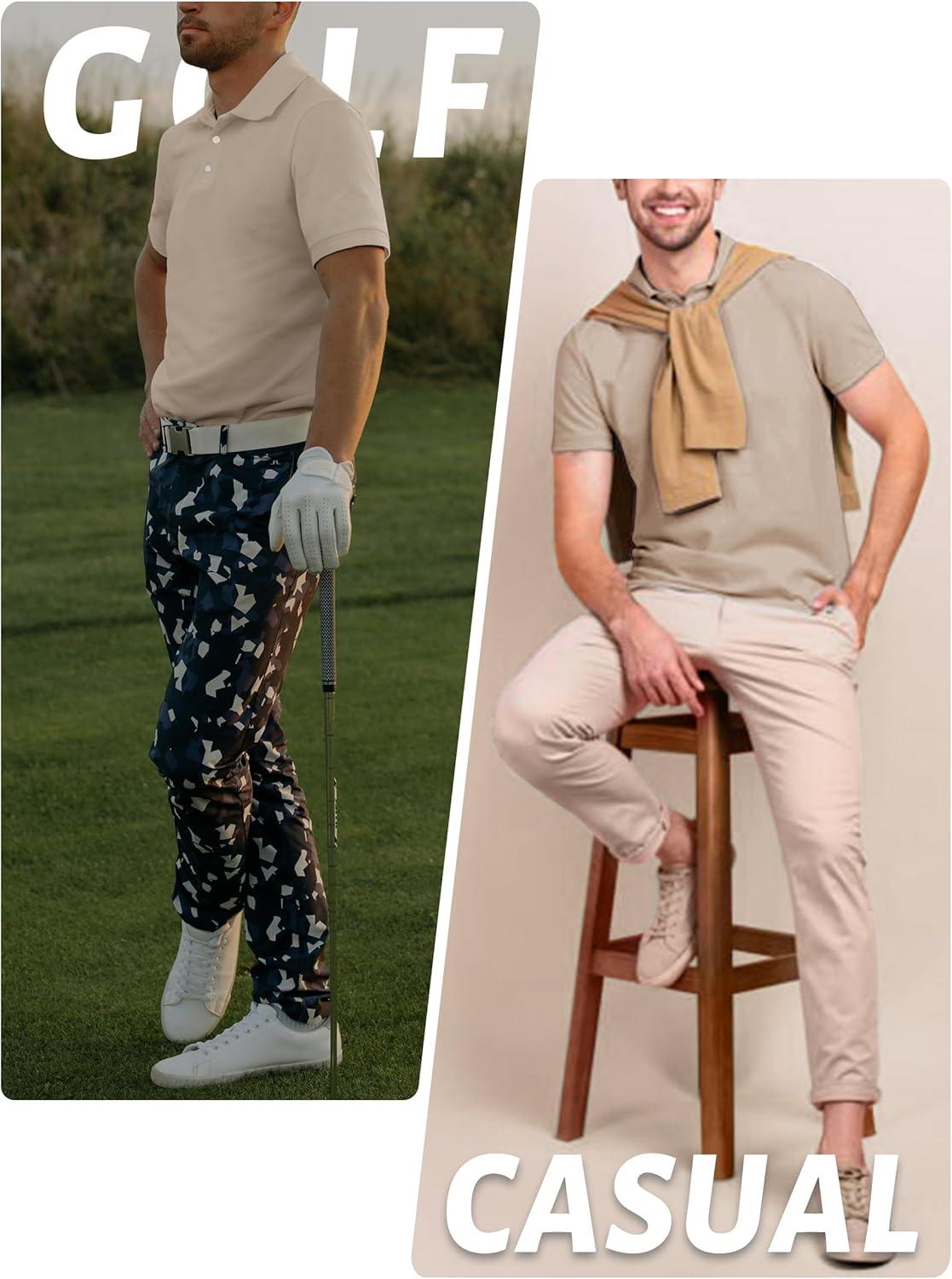 Men's Golf Polo Shirts Casual Collared Quick Dry T-Shirts Short Sleeve 3 Buttons Sport Tees