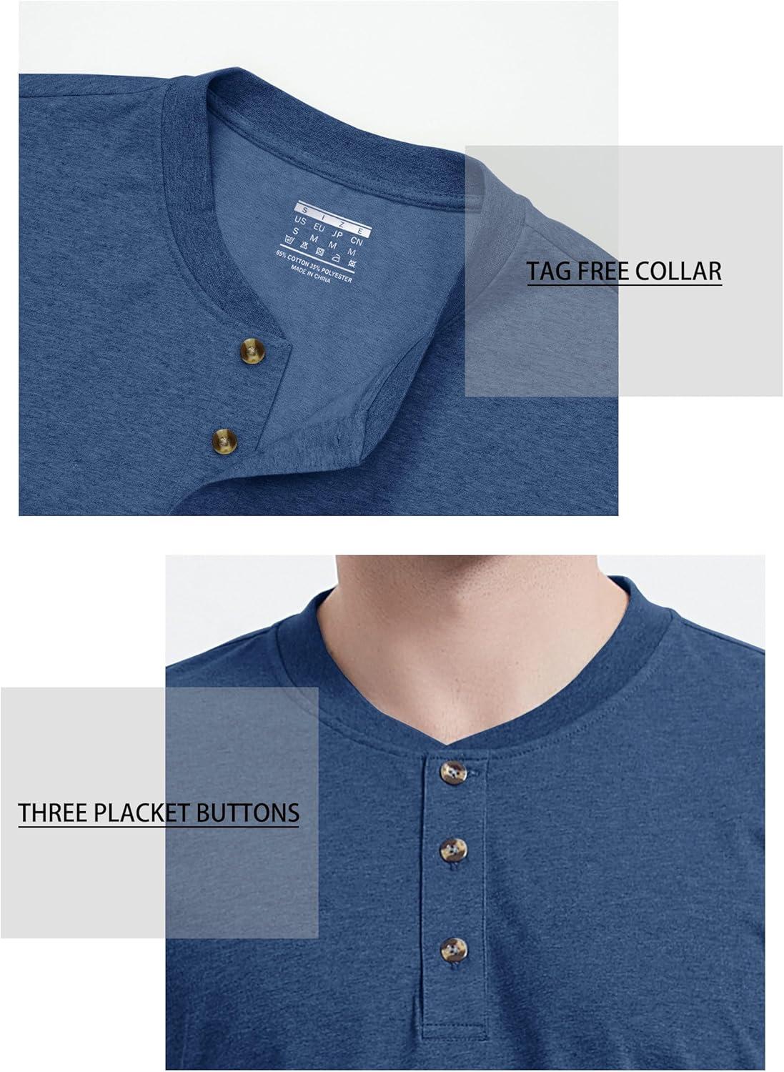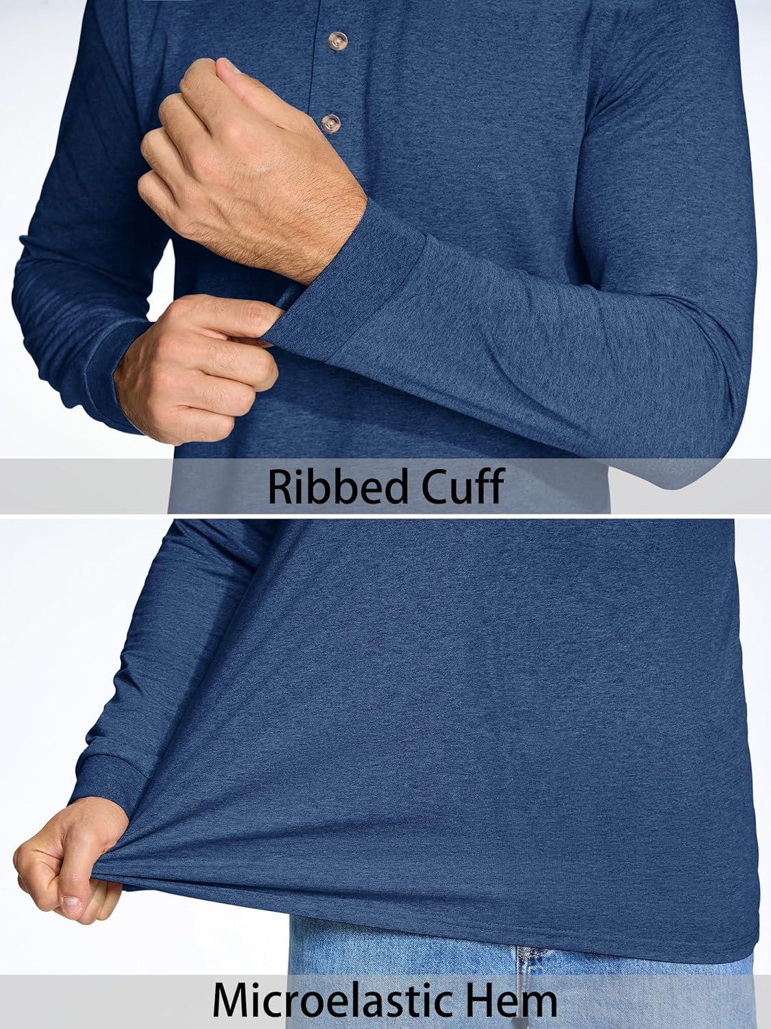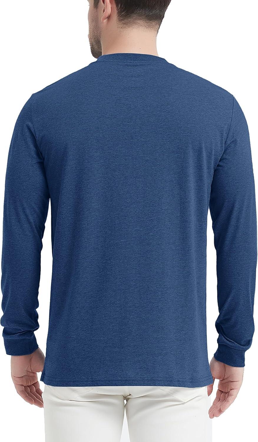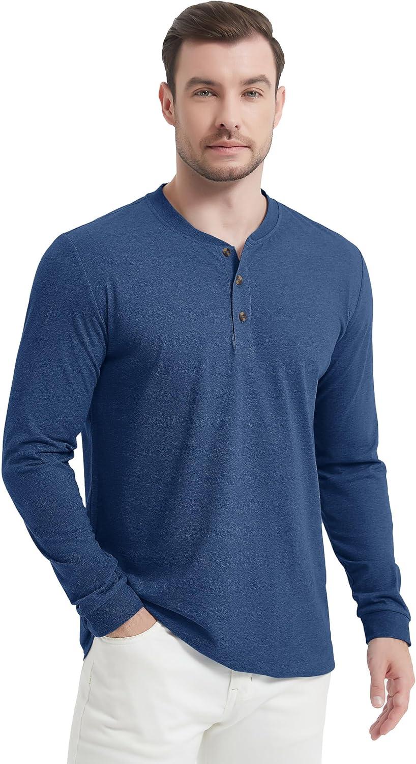 TACVASEN Men’s Henley Shirts Long Sleeve Cotton Shirts for Travel Hiking Work Casual Regular Fit(Colorful Blue)