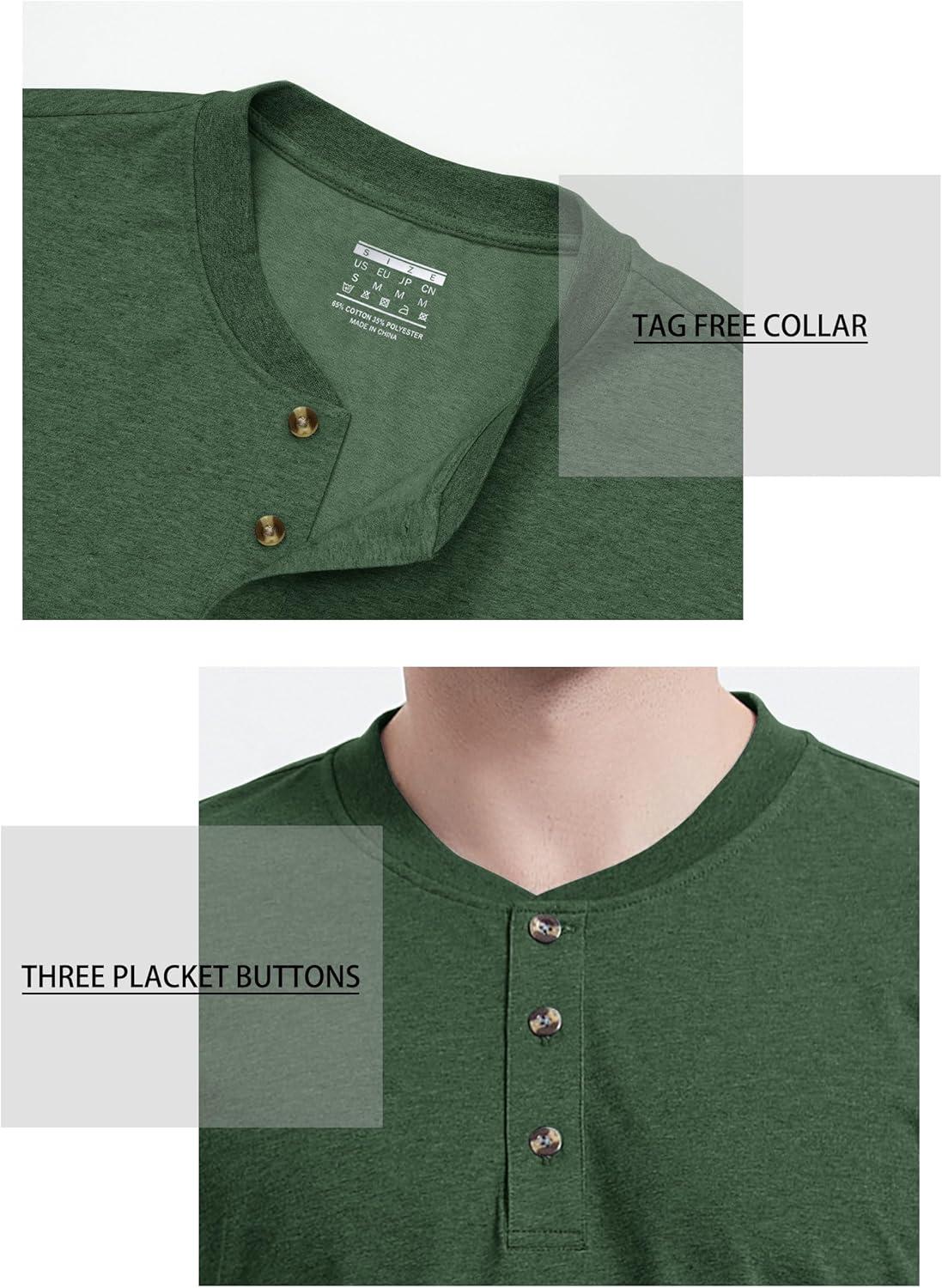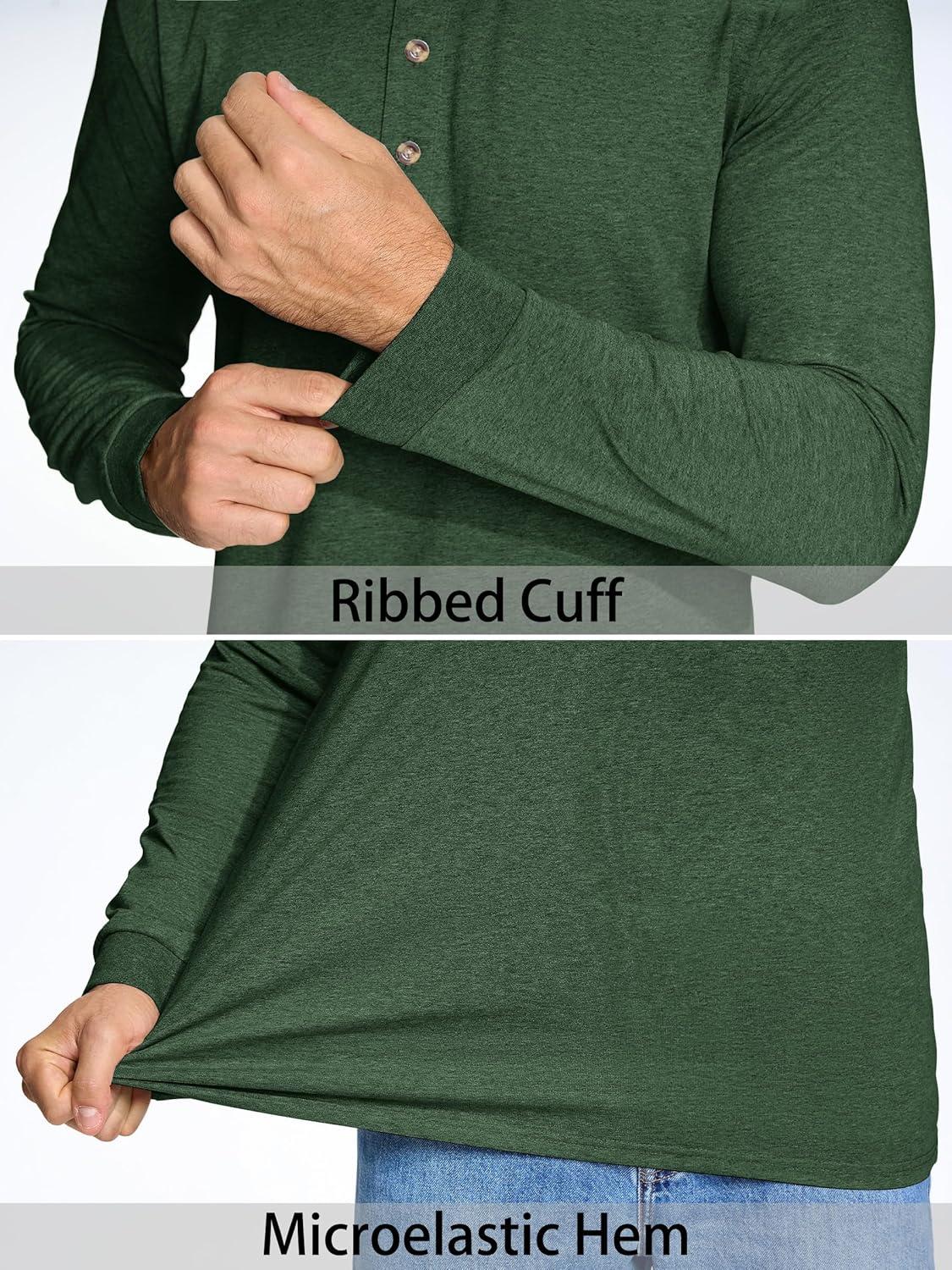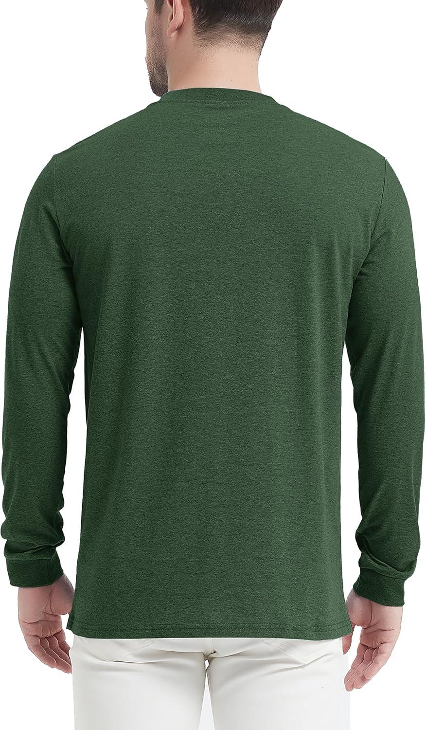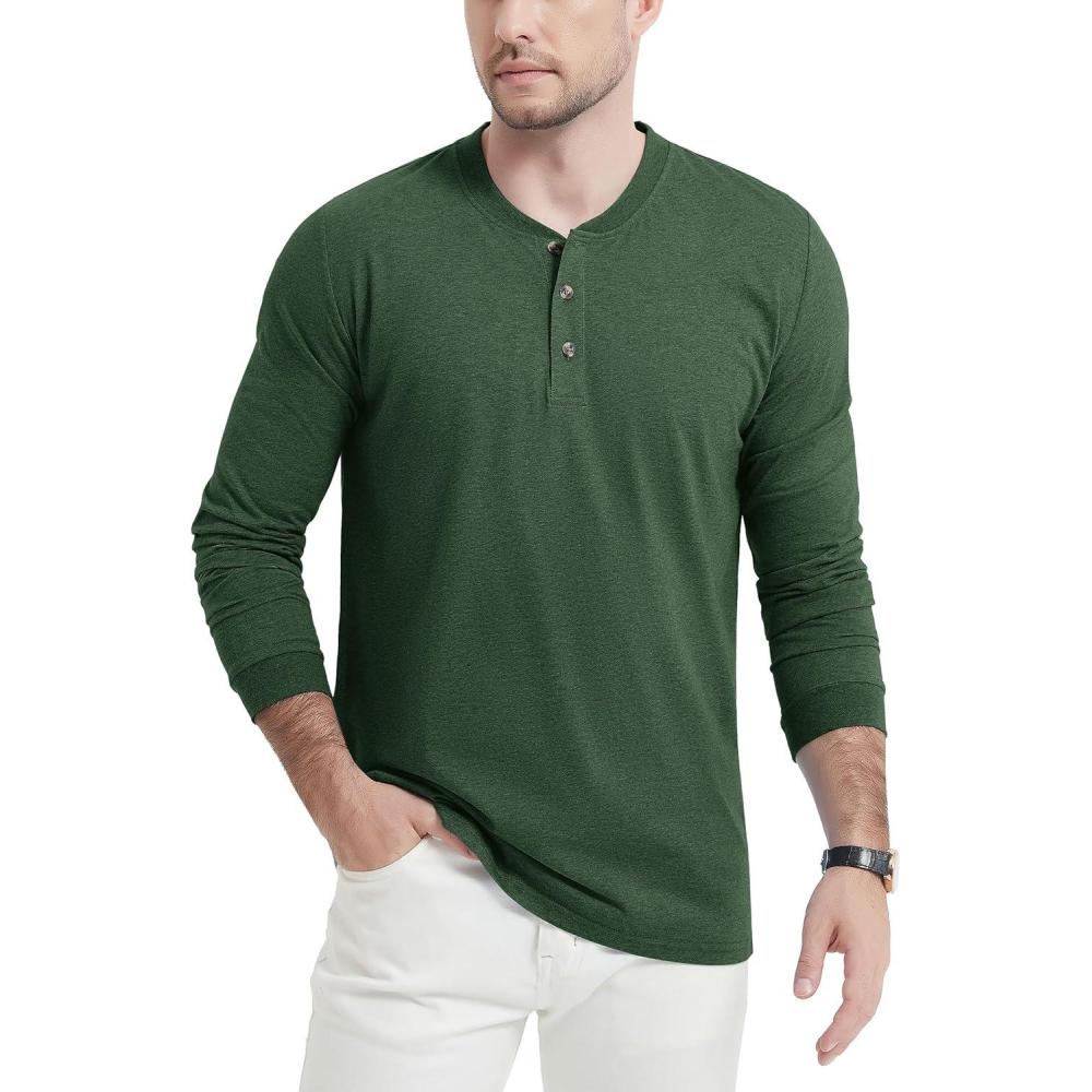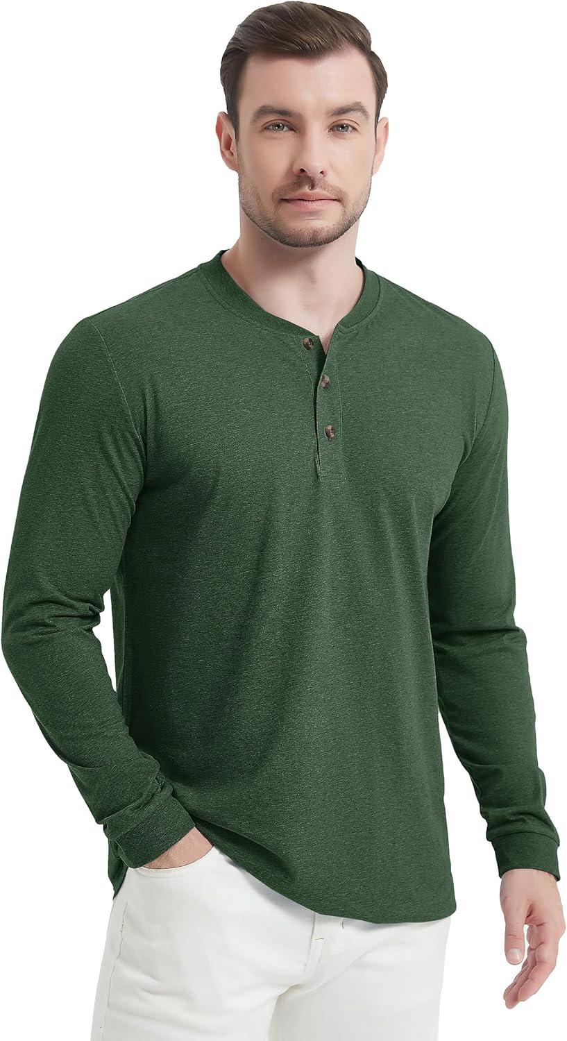 TACVASEN Men’s Henley Shirts Long Sleeve Cotton Shirts for Travel Hiking Work Casual Regular Fit(Dark Green Hemp)
