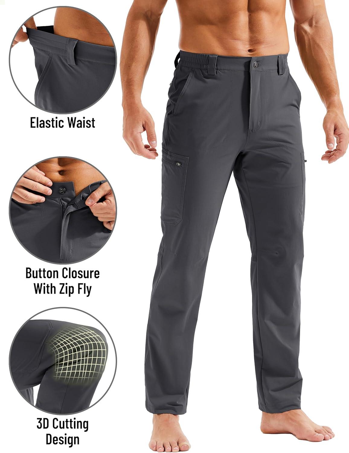TACVASEN Men’s Hiking Cargo Pants Summer Outdoor Lightweight Quick Dry Casual Water Resistant Fishing Work Stretch Pants(Dark Grey)