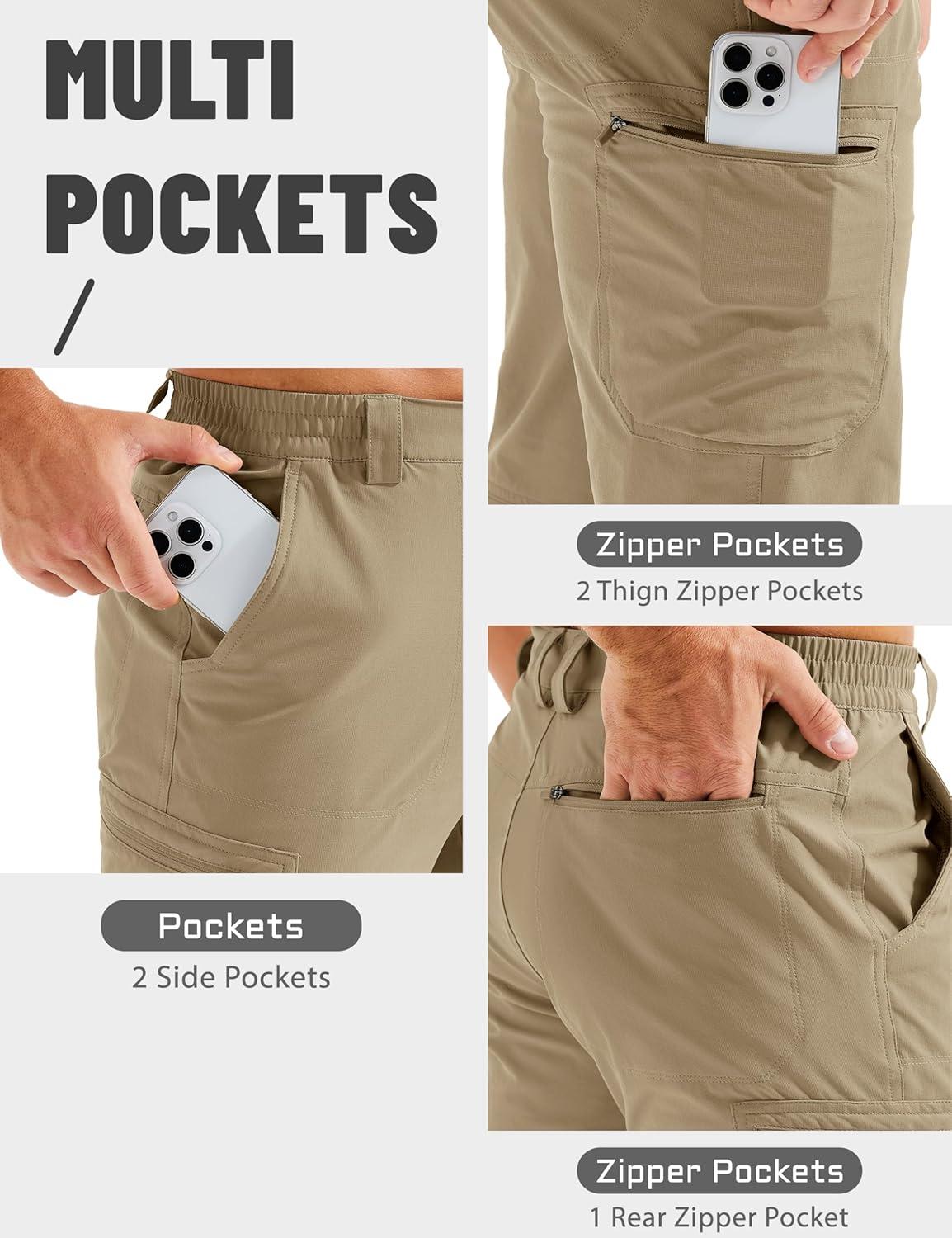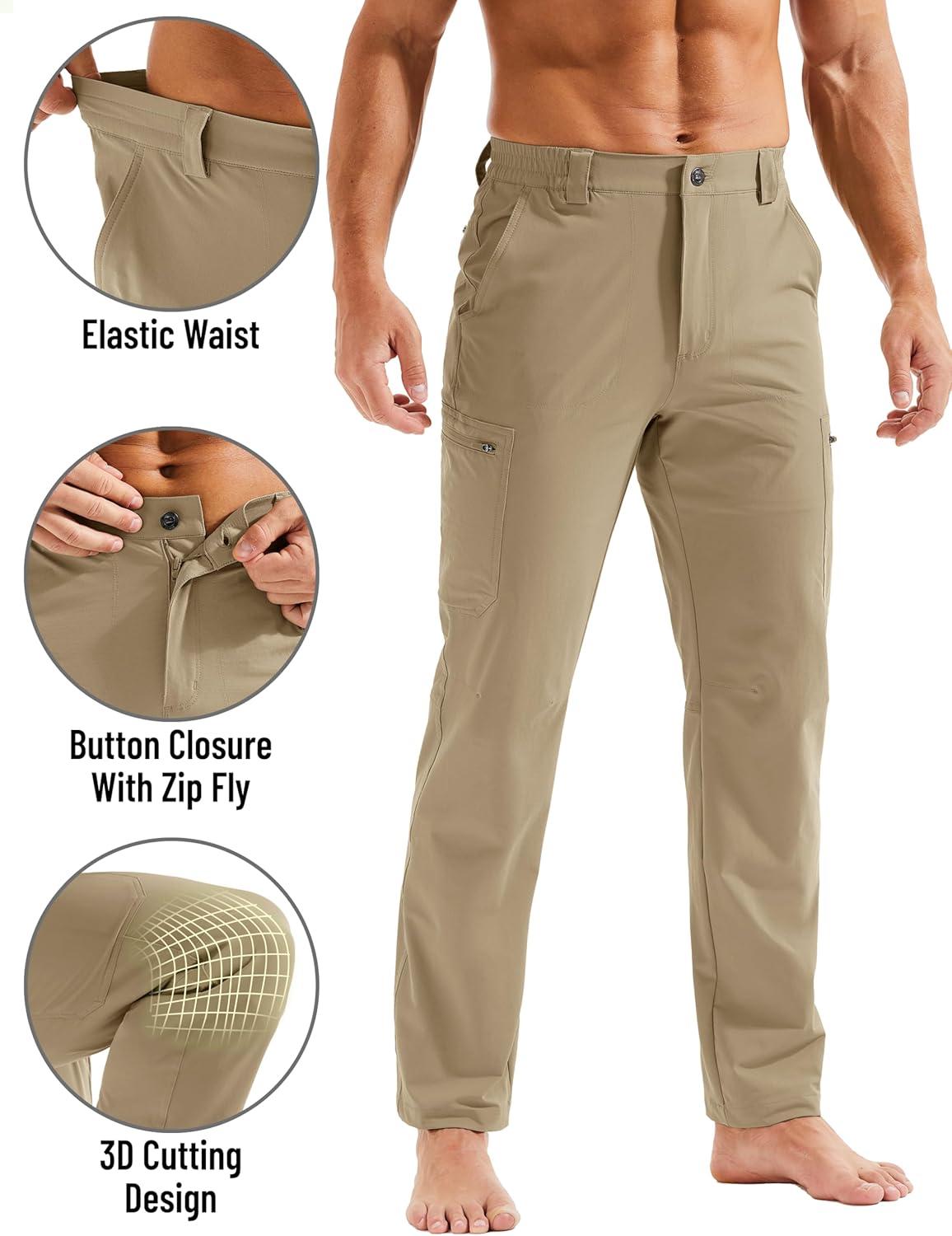 TACVASEN Men’s Hiking Cargo Pants Summer Outdoor Lightweight Quick Dry Casual Water Resistant Fishing Work Stretch Pants(Khaki)