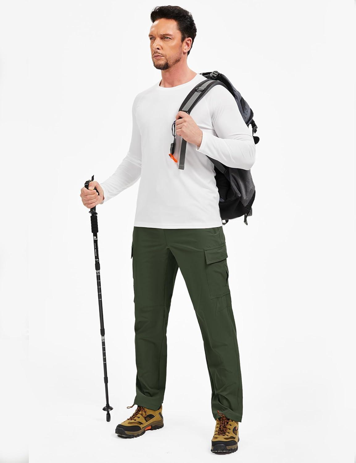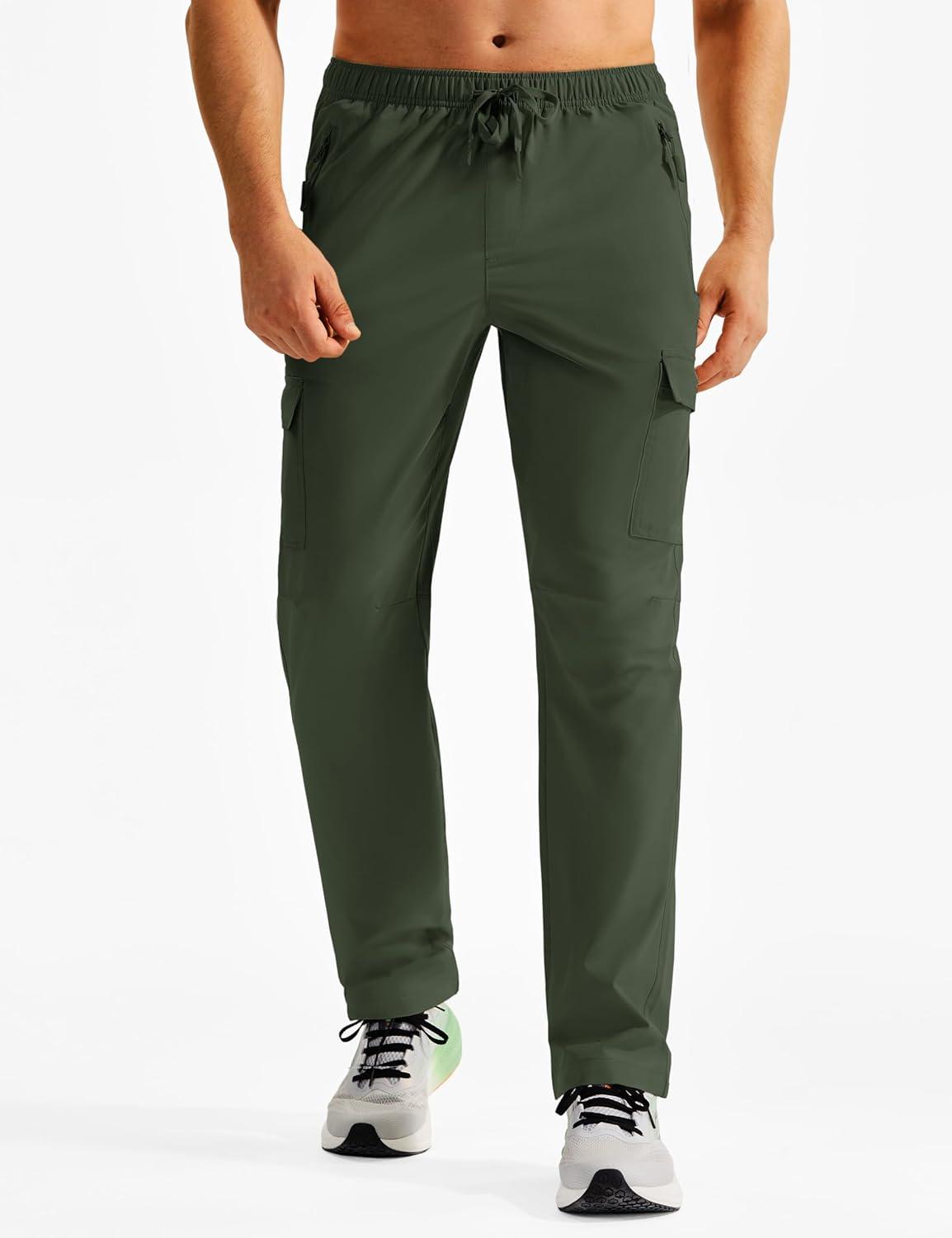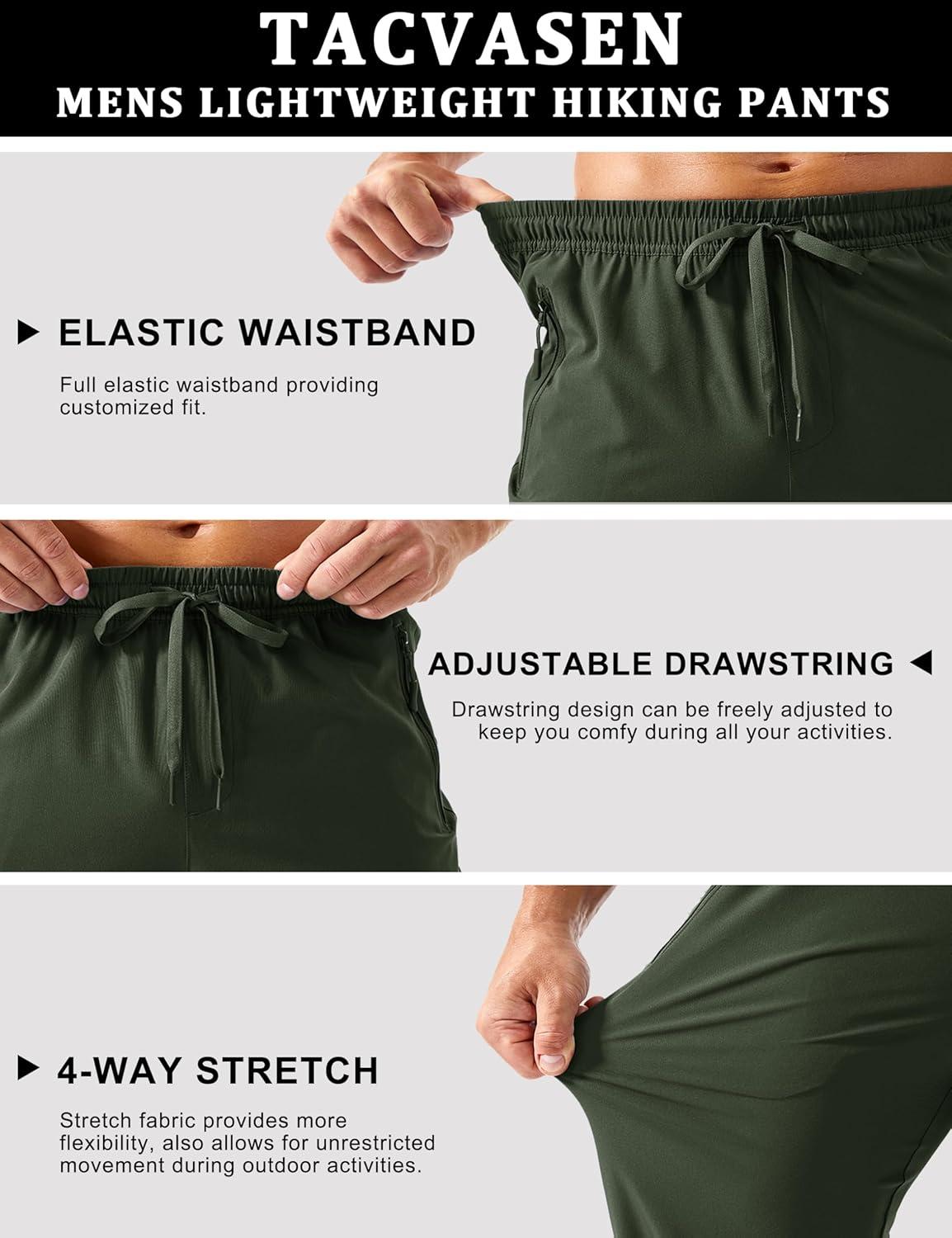 TACVASEN Men’s Hiking Cargo Pants with Zipper Pockets Lightweight Quick Dry Water Resistant Travel Athletic Casual Pants(Army Green)