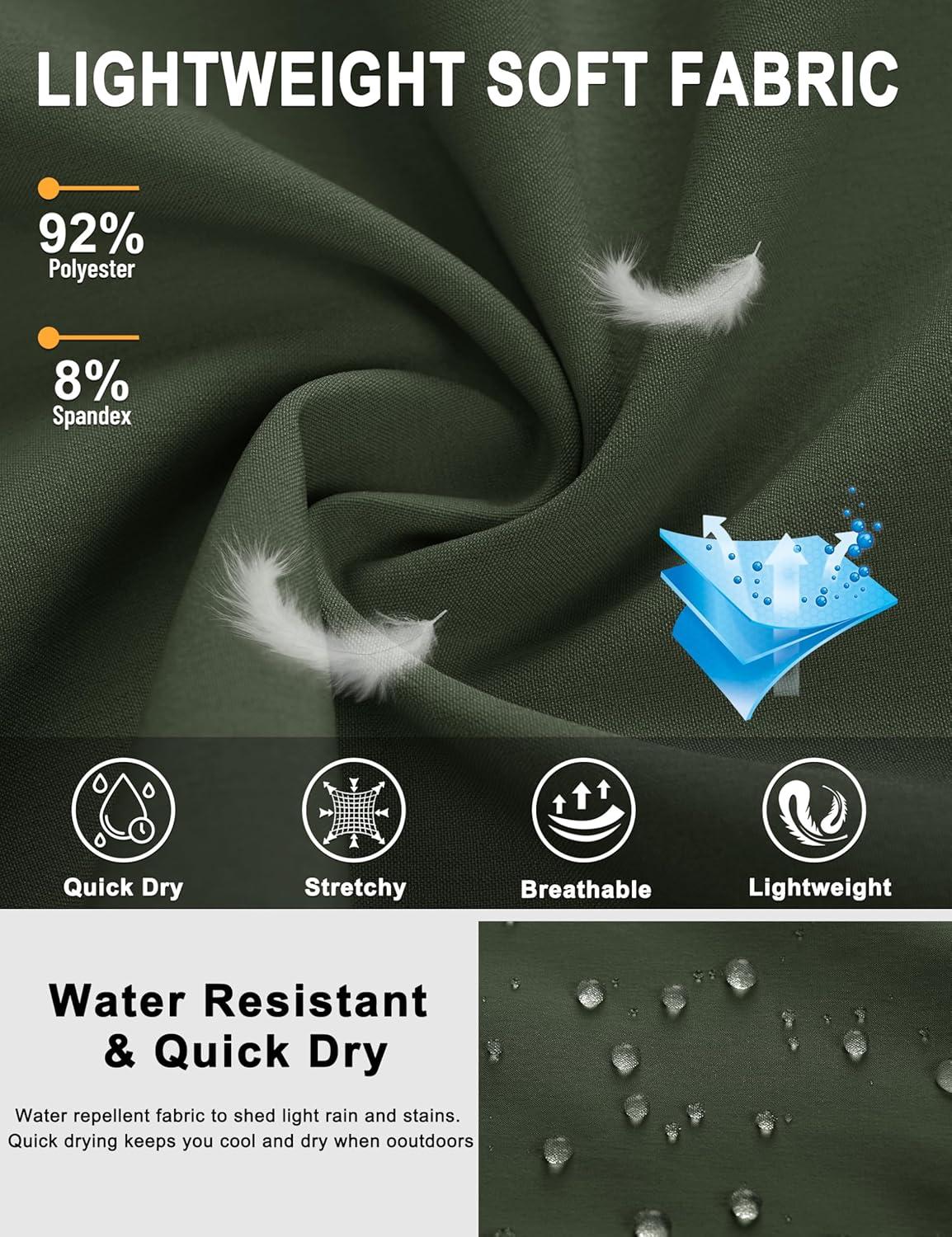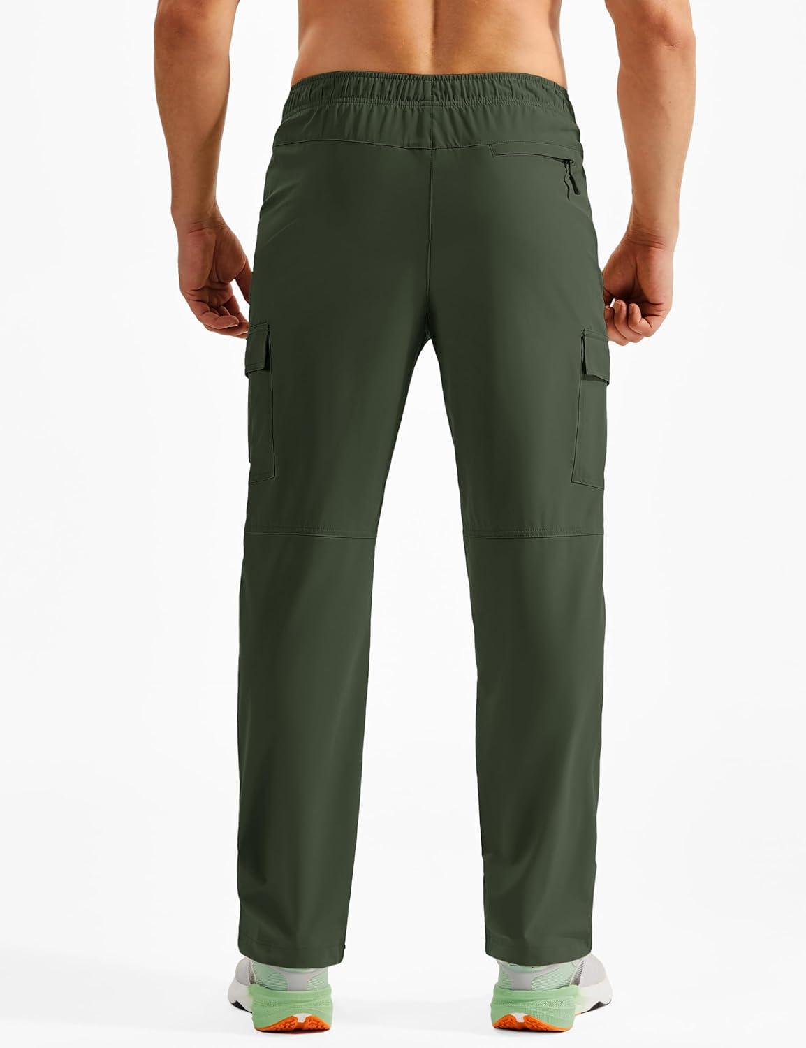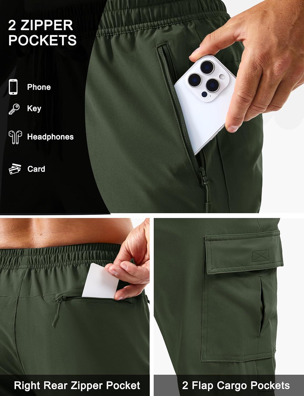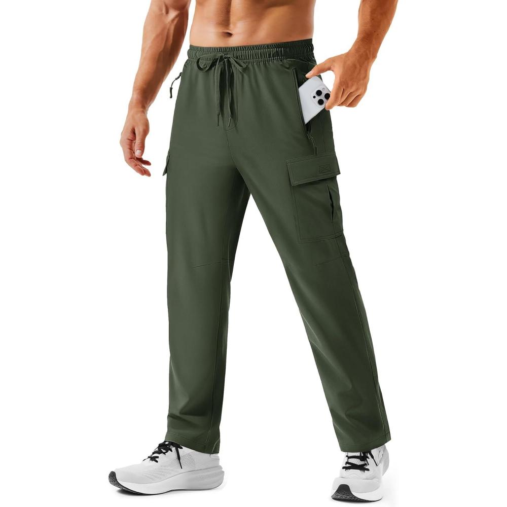 TACVASEN Men’s Hiking Cargo Pants with Zipper Pockets Lightweight Quick Dry Water Resistant Travel Athletic Casual Pants(Army Green)