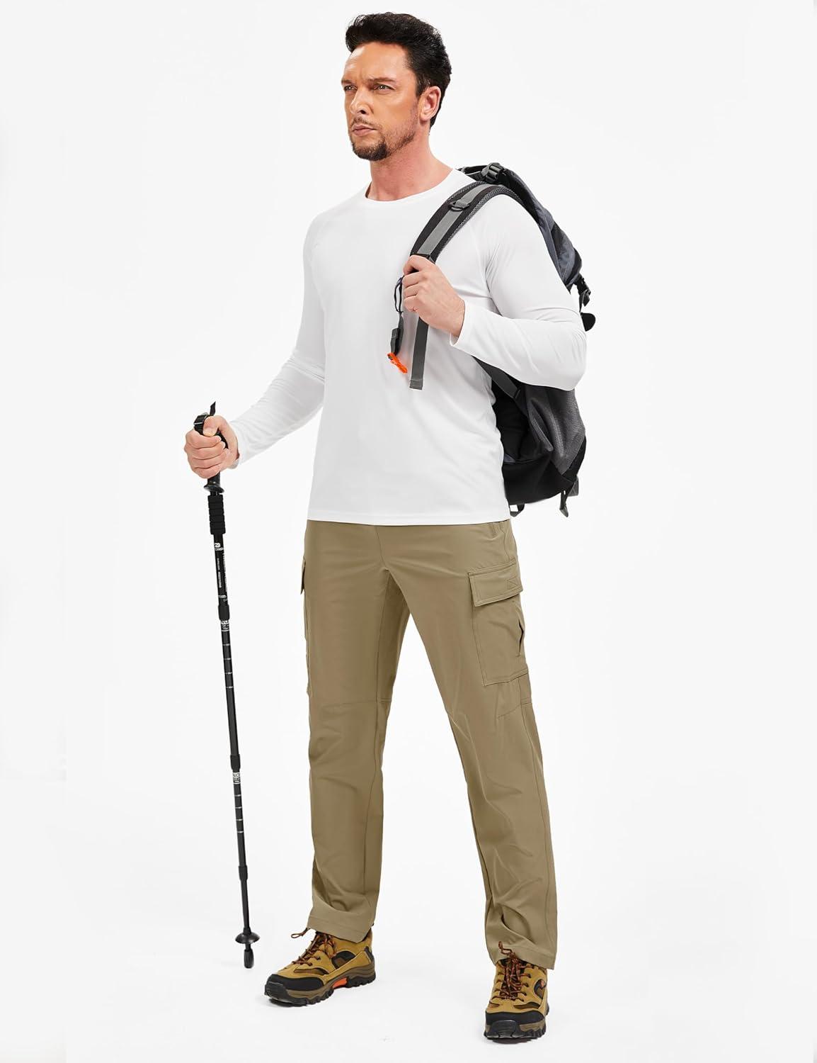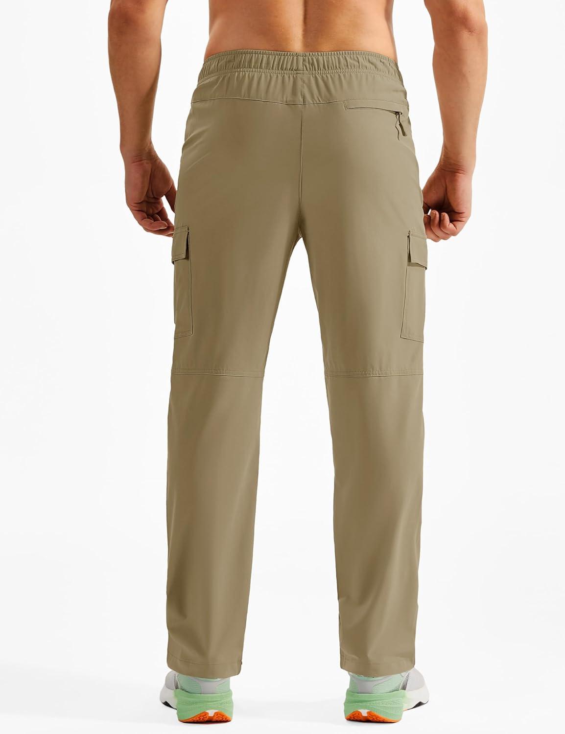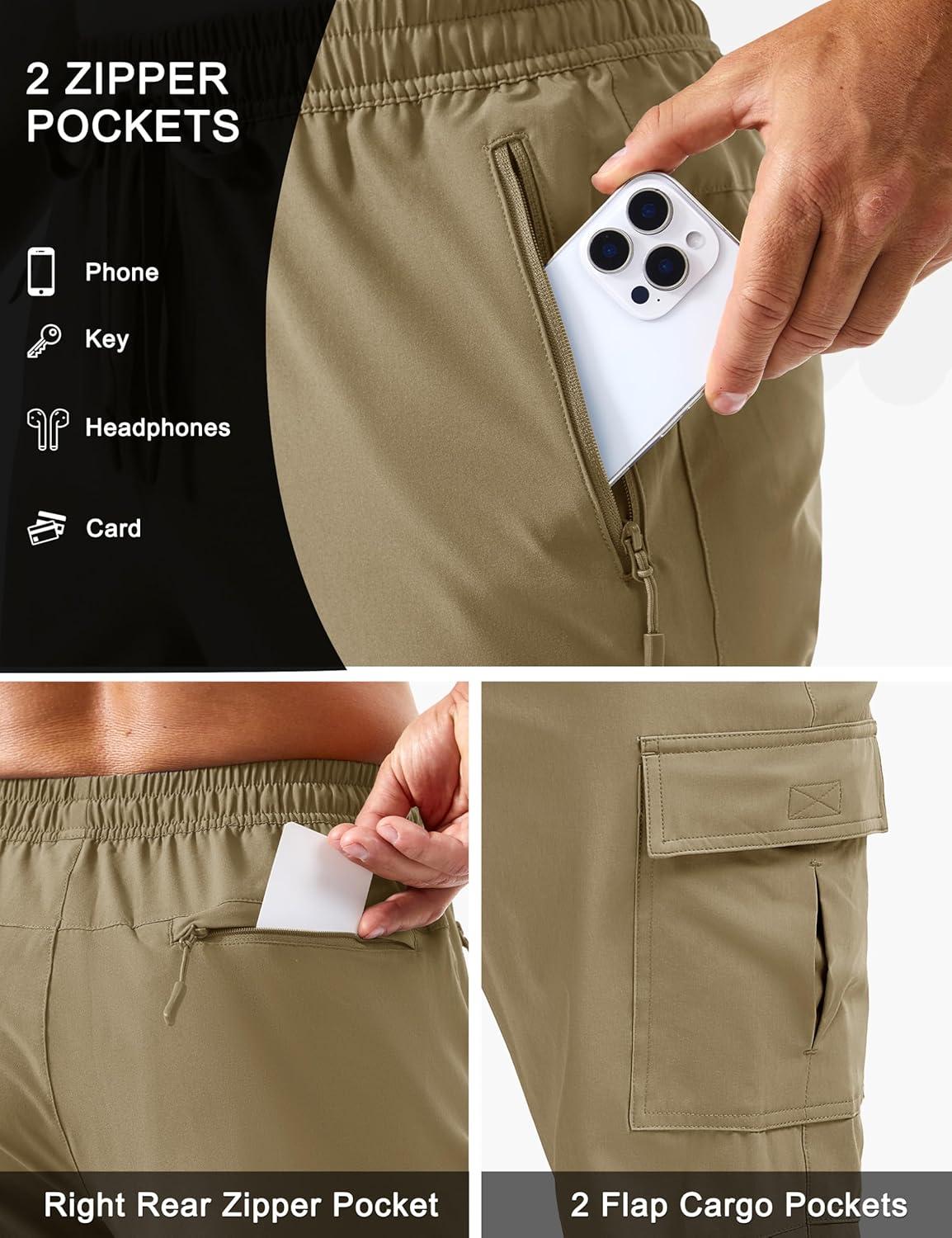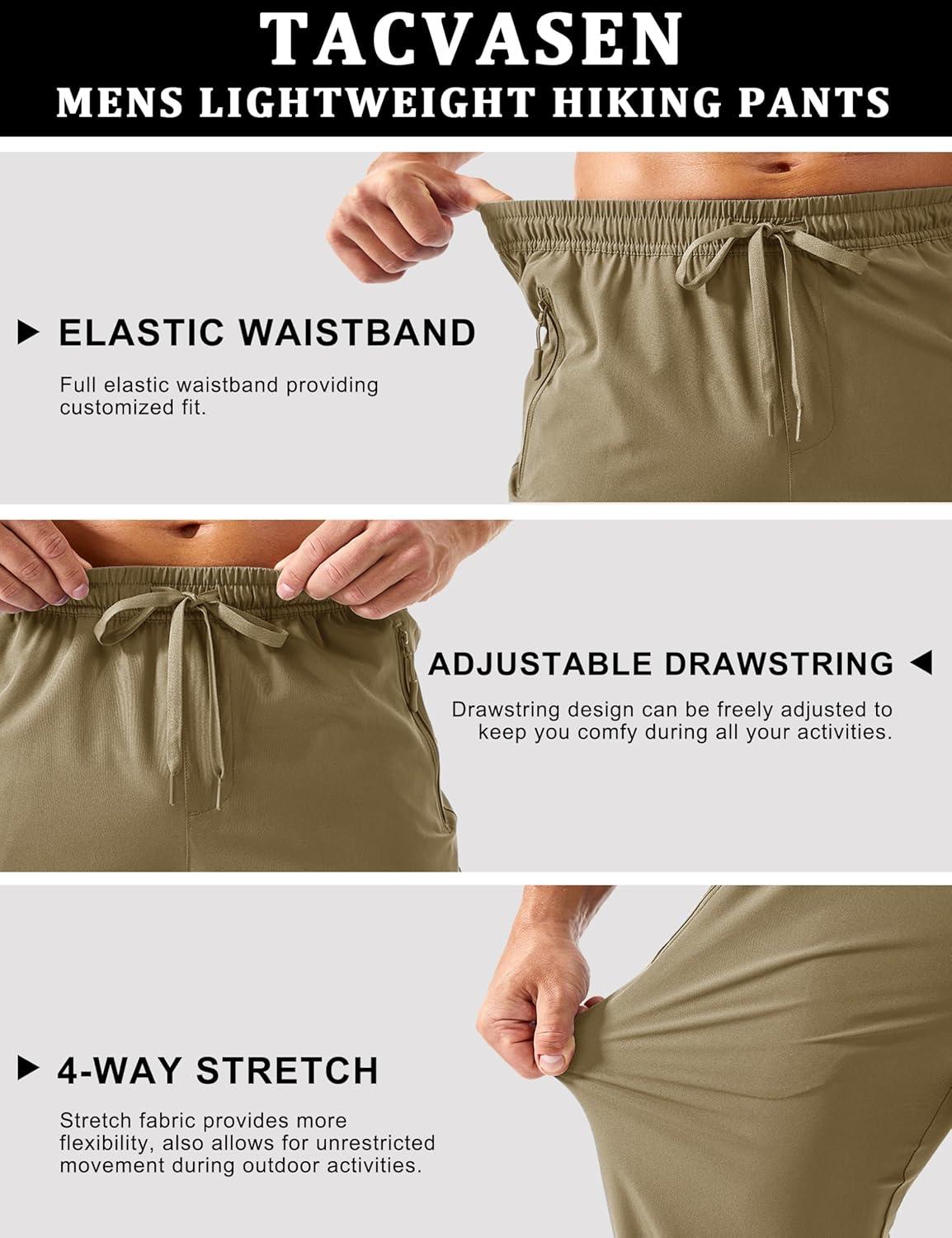 TACVASEN Men’s Hiking Cargo Pants with Zipper Pockets Lightweight Quick Dry Water Resistant Travel Athletic Casual Pants(Khaki)