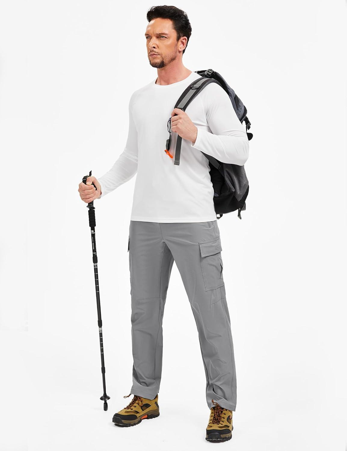 TACVASEN Men’s Hiking Cargo Pants with Zipper Pockets Lightweight Quick Dry Water Resistant Travel Athletic Casual Pants(Light Grey)