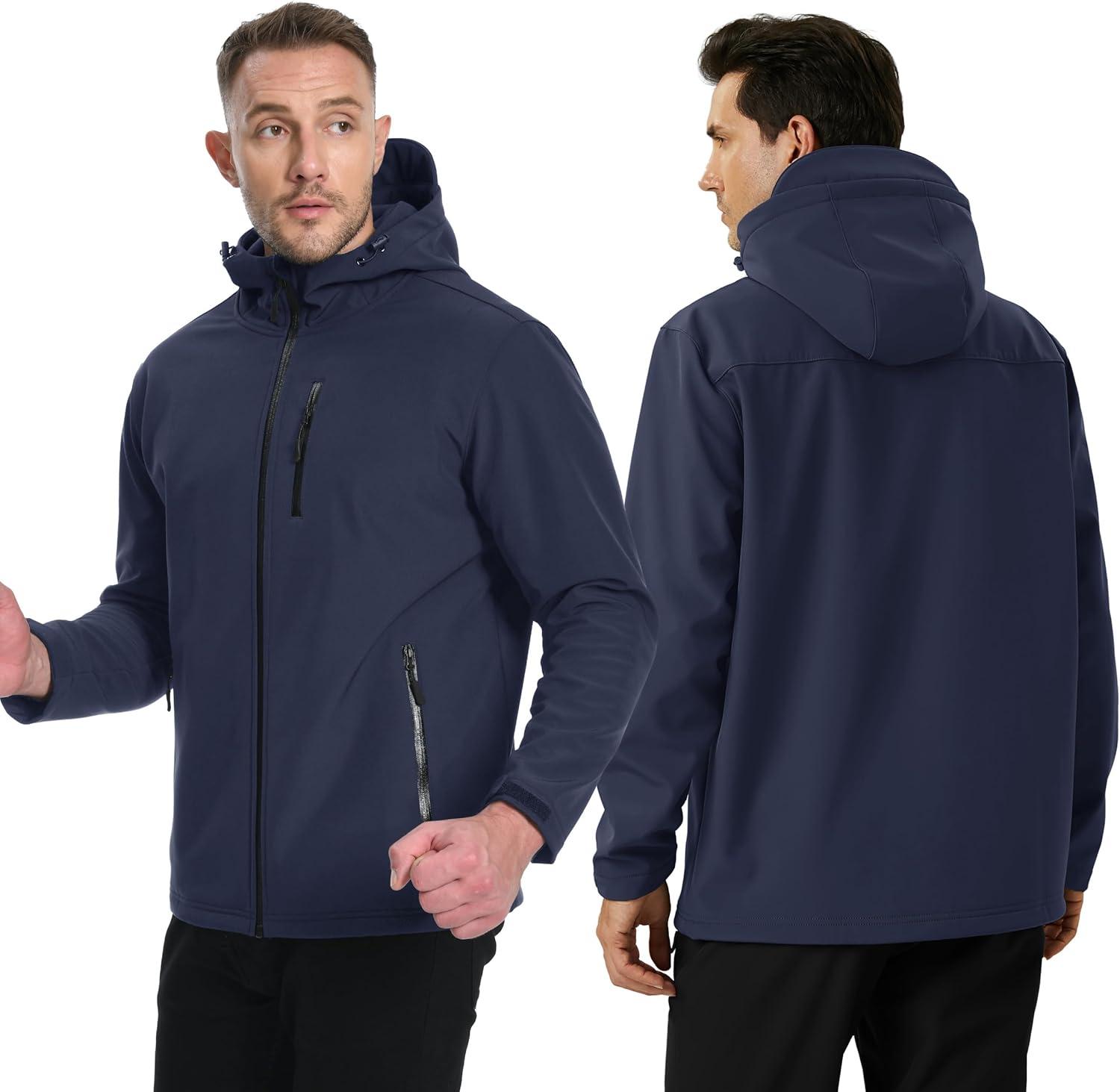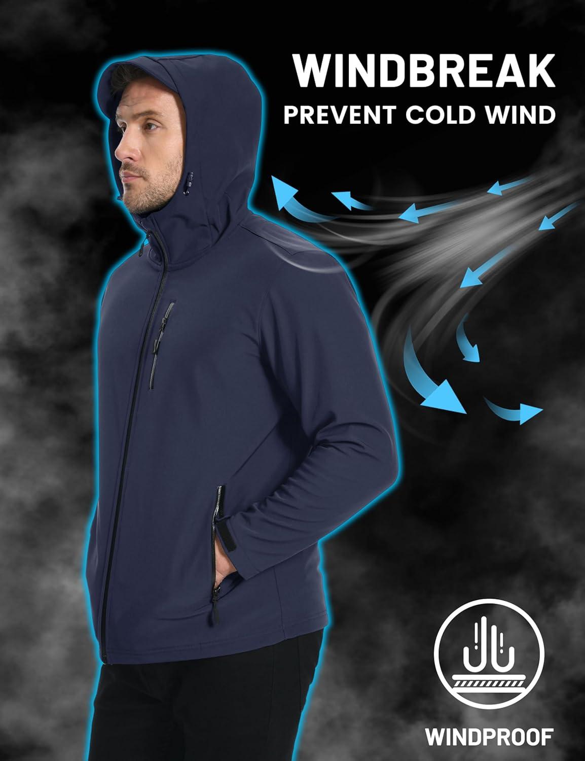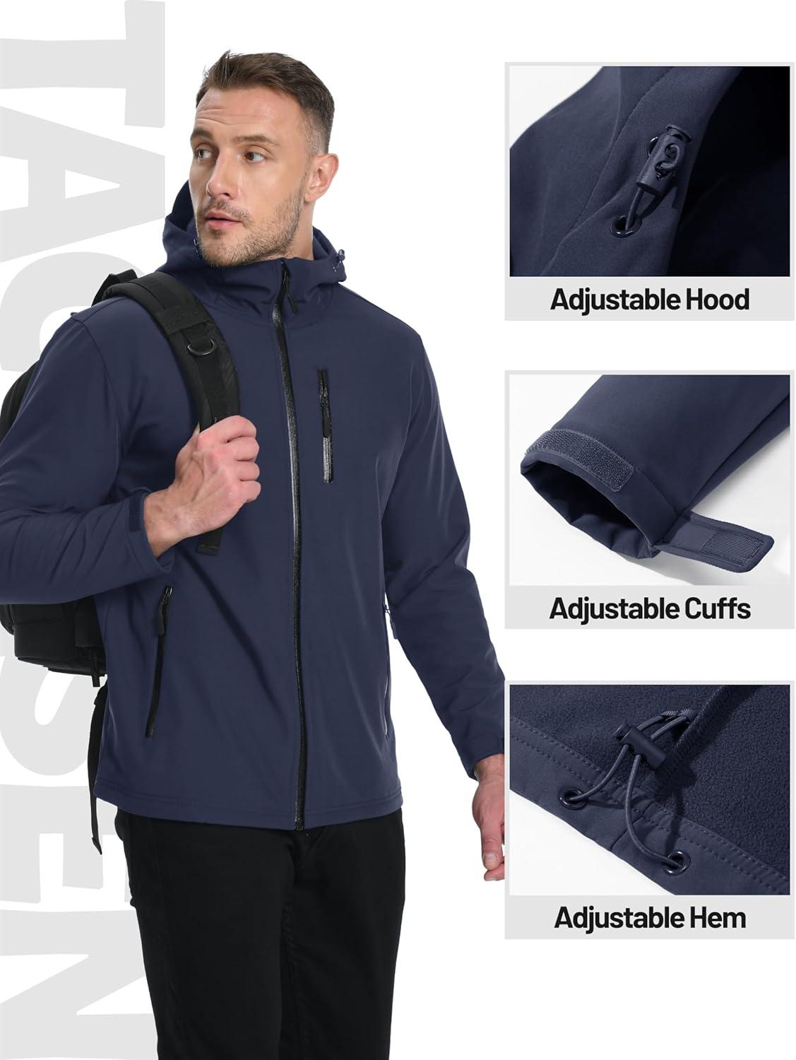 TACVASEN Men’s Hooded Softshell Jacket Lightweight Waterproof Fleece Lined Windbreaker Rain Jacket Winter Outdoor Hiking(Navy)
