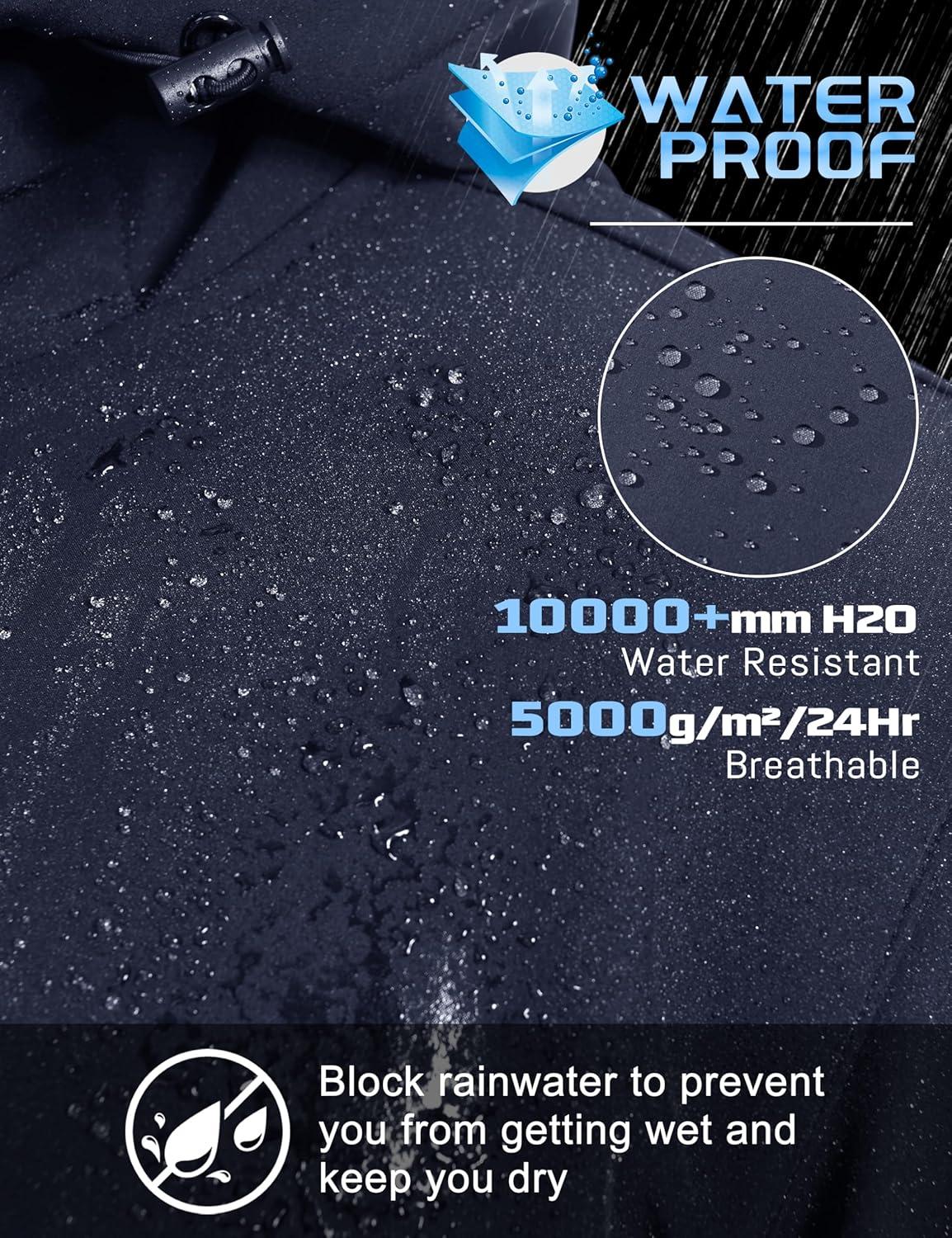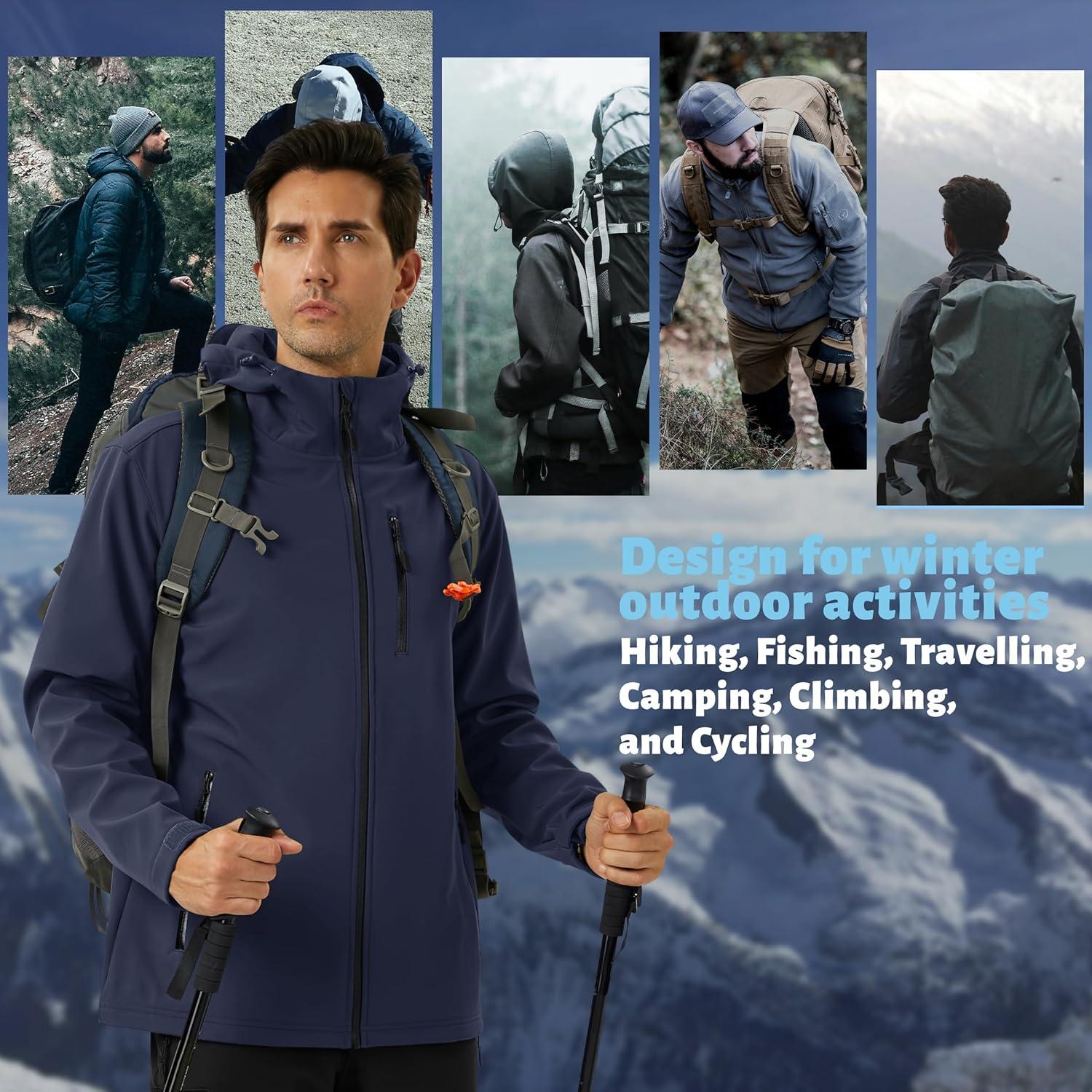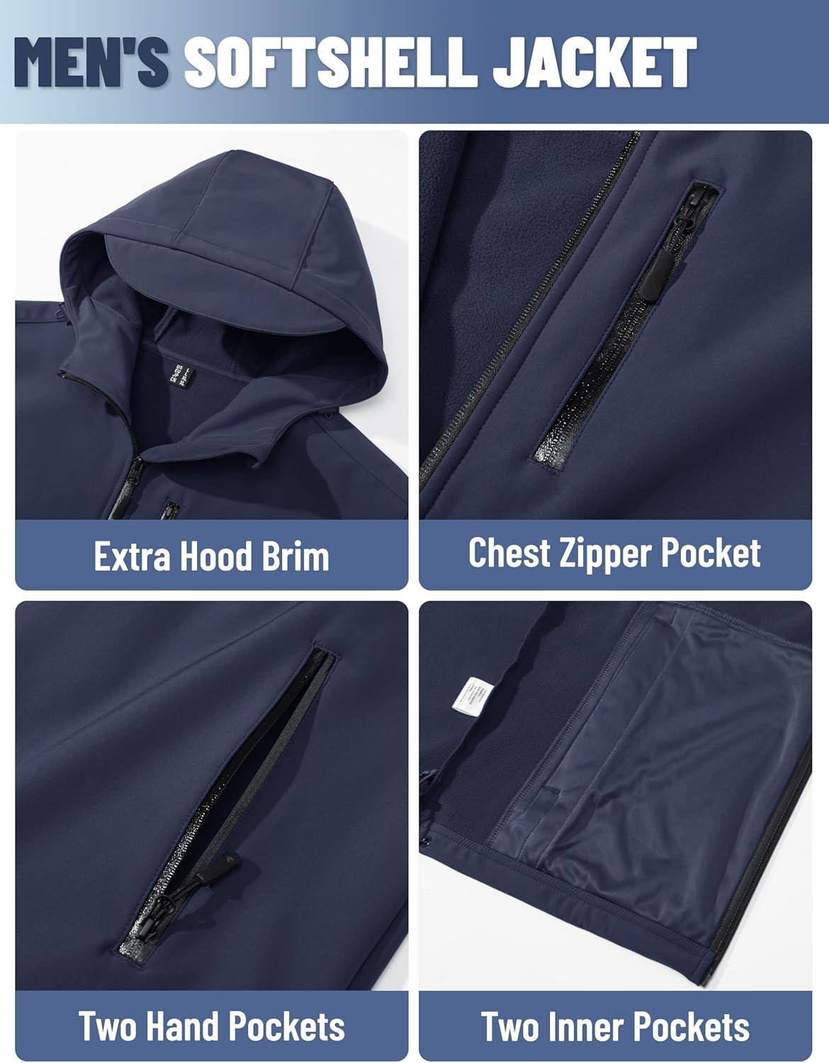 TACVASEN Men’s Hooded Softshell Jacket Lightweight Waterproof Fleece Lined Windbreaker Rain Jacket Winter Outdoor Hiking(Navy)