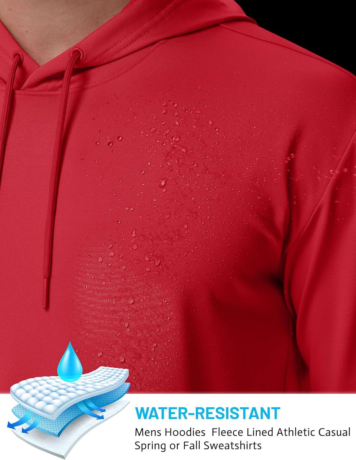 TACVASEN Mens Hoodies Fleece Lined Pullover Athletic Water-resistant Casual Workout Midweight Sweatshirts Kangaroo Pockets(Red)