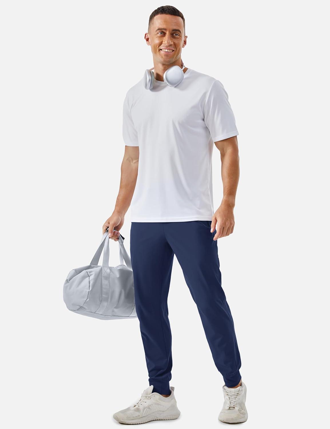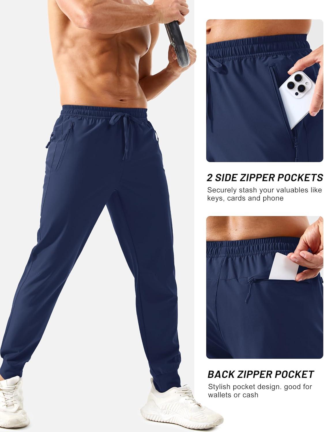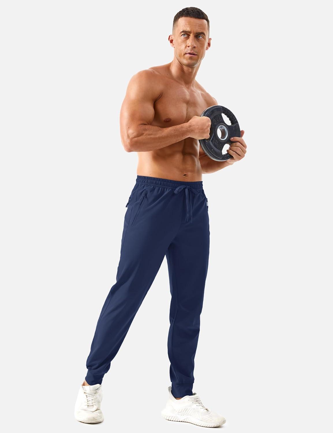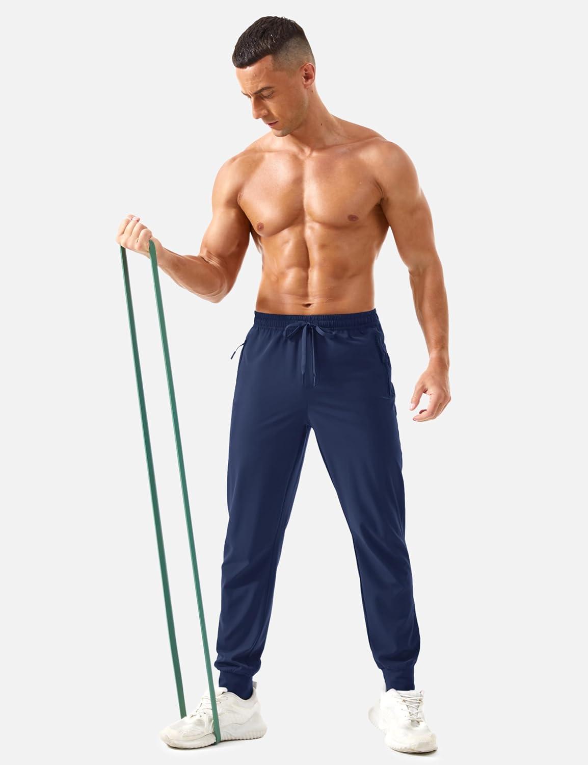 TACVASEN Men’s Lightweight Athletic Joggers with Zipper Pockets Quick Dry Track Pants for Men Gym Sweatpants Workout Golf(Blue)