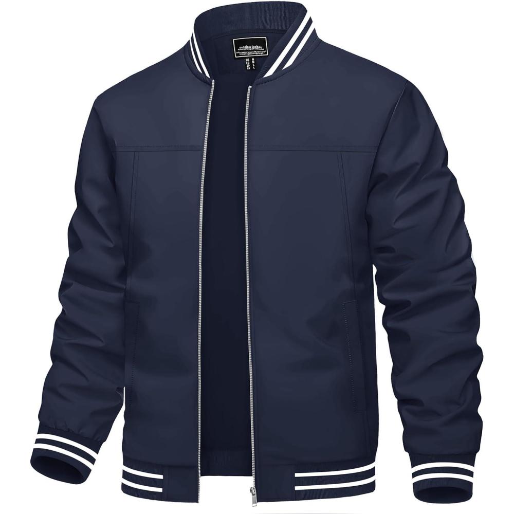 TACVASEN Men’s Lightweight Jacket Casual Spring Fall Windbreaker Bomber Zip Up Coat With Pocket(#03navy)