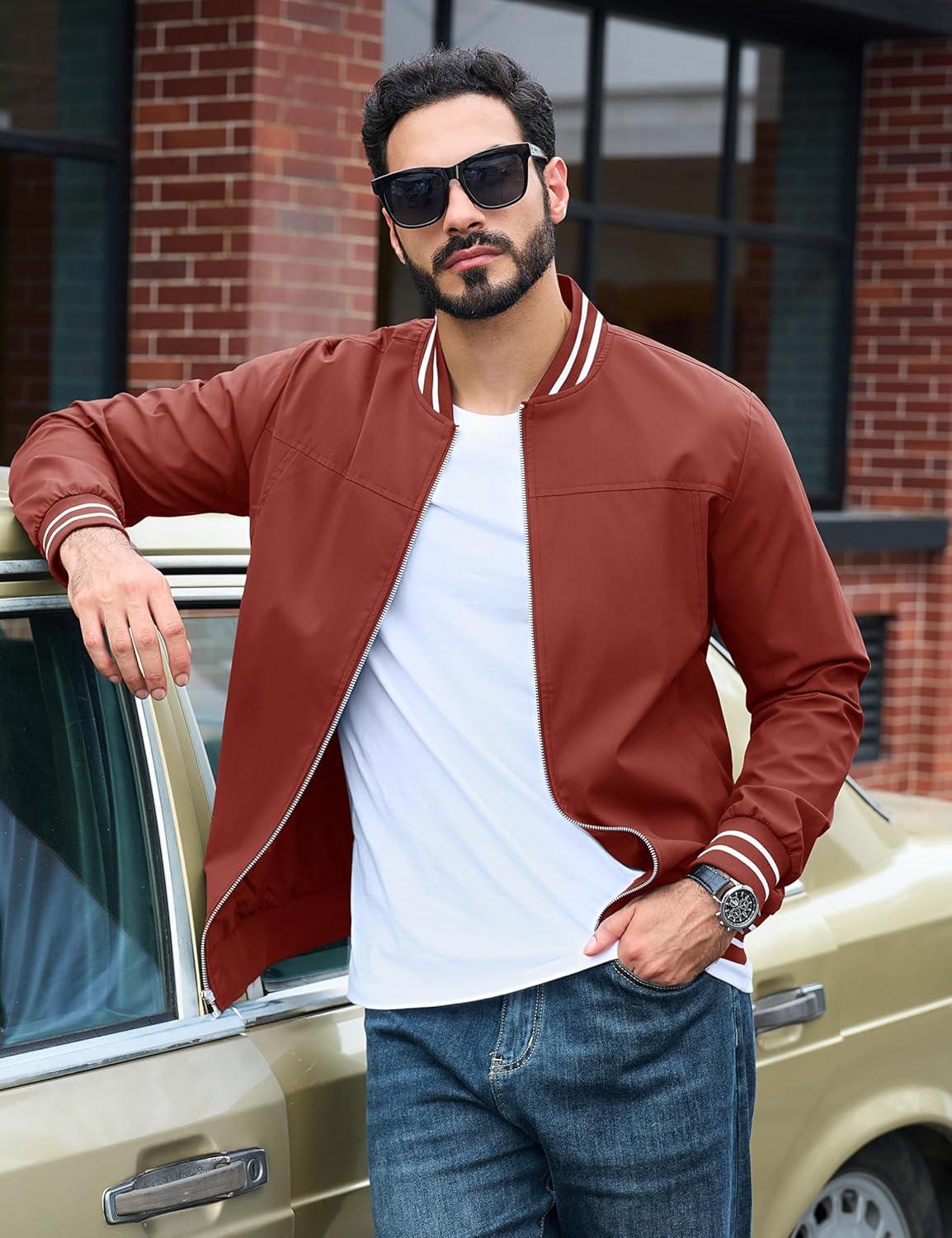 TACVASEN Men’s Lightweight Jacket Casual Spring Fall Windbreaker Bomber Zip Up Coat With Pocket(#13orange Red)