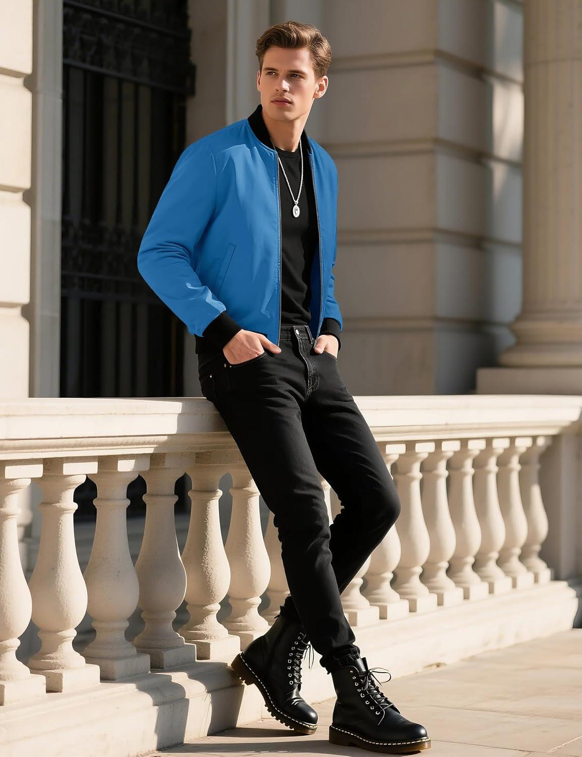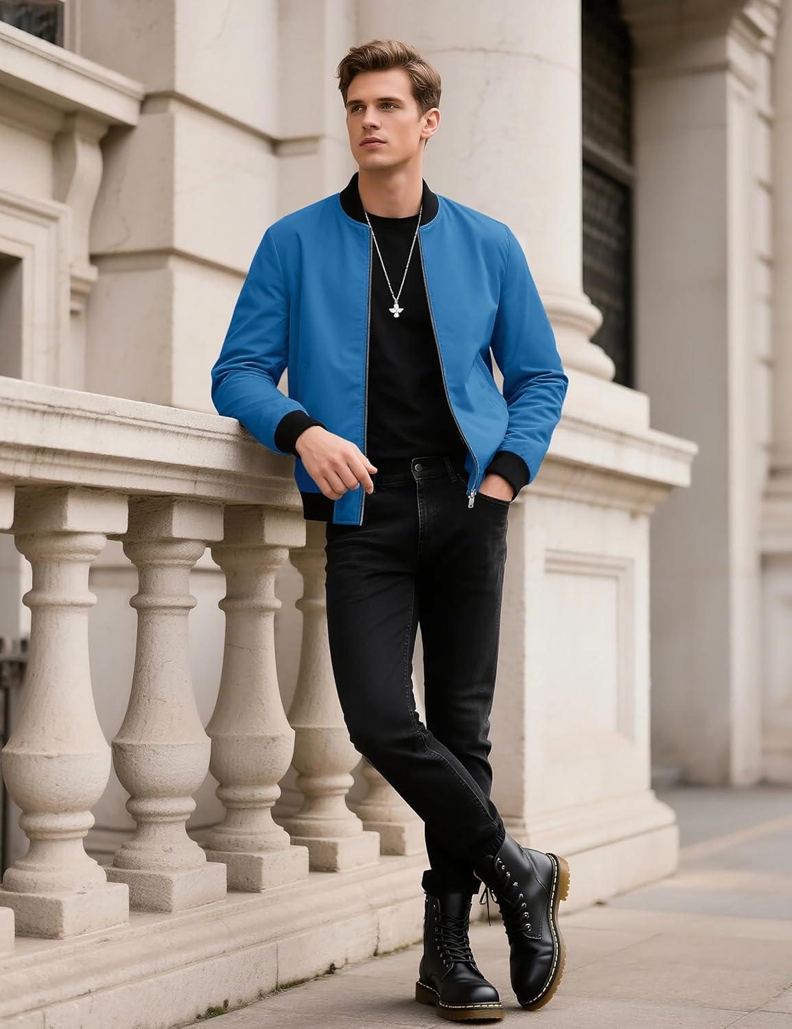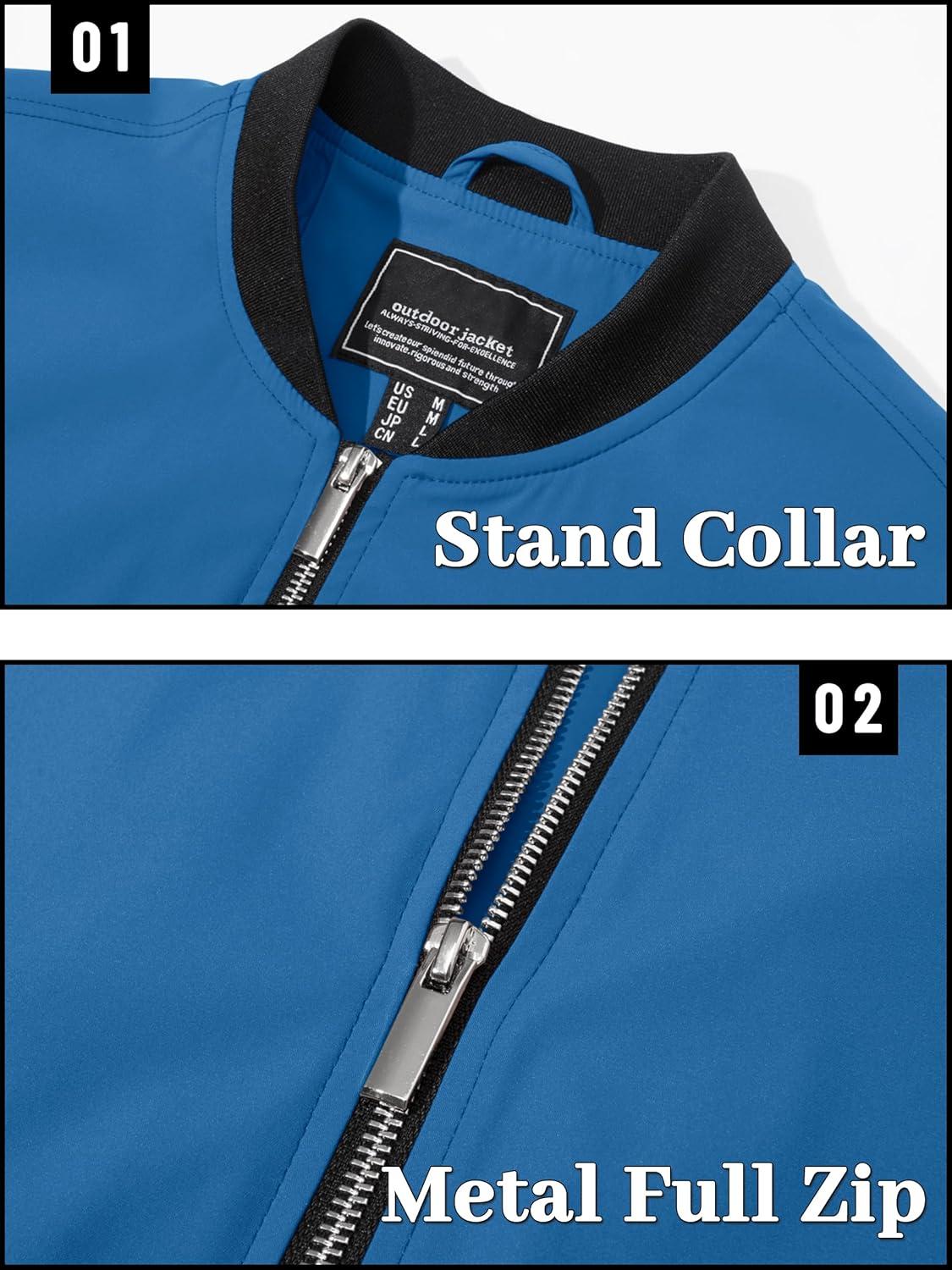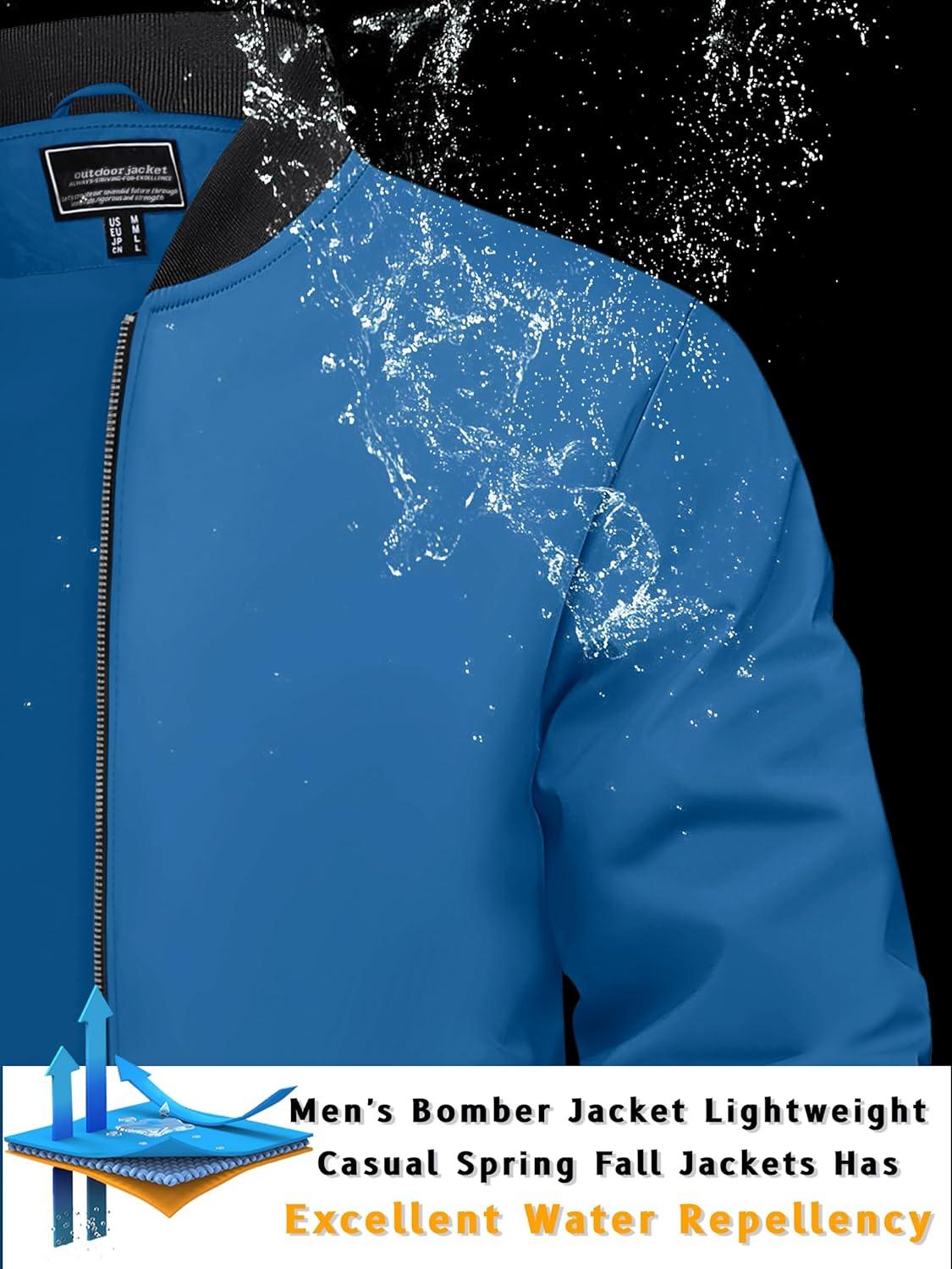 TACVASEN Men’s Lightweight Jacket Spring Bomber Fall Windbreaker Casual Stylish Coats with Pockets(#12 Light Blue)
