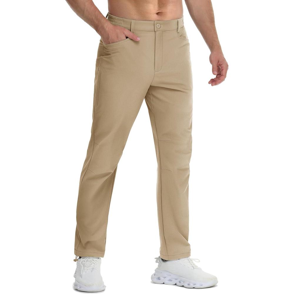 TACVASEN Men’s Lightweight Pants Quick Dry Water Resistant Stretchy Work Golf Pants for Casual Outdoor(Khaki)