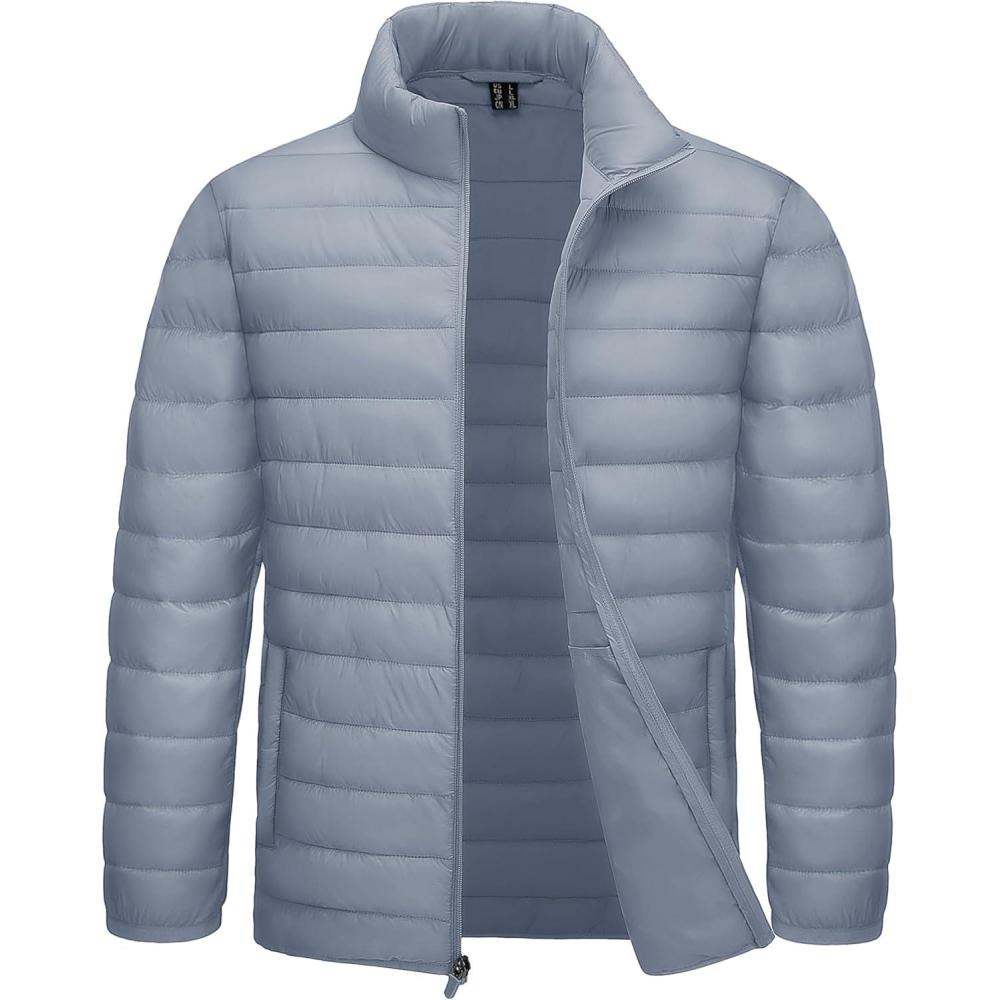 TACVASEN Men’s Lightweight Puffer Jacket Winter Quilted Puffy Jackets Warm Water-Resistant Windproof Insulated Coats(Light Grey)