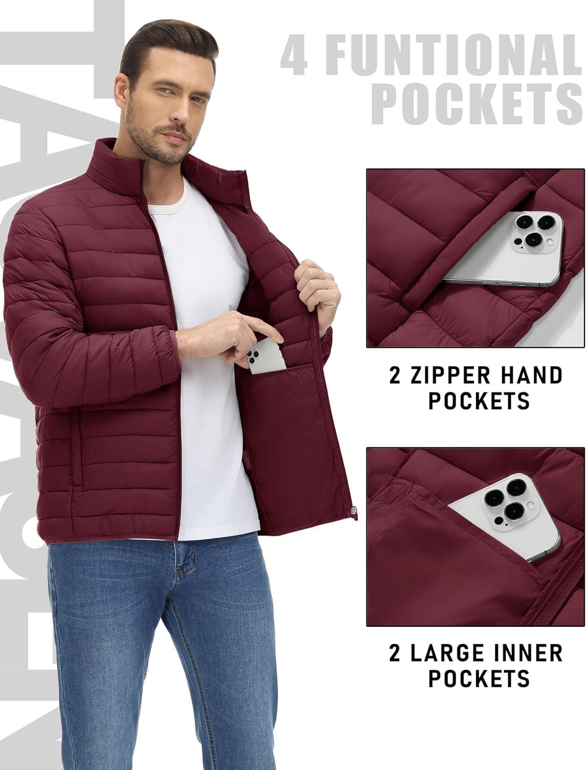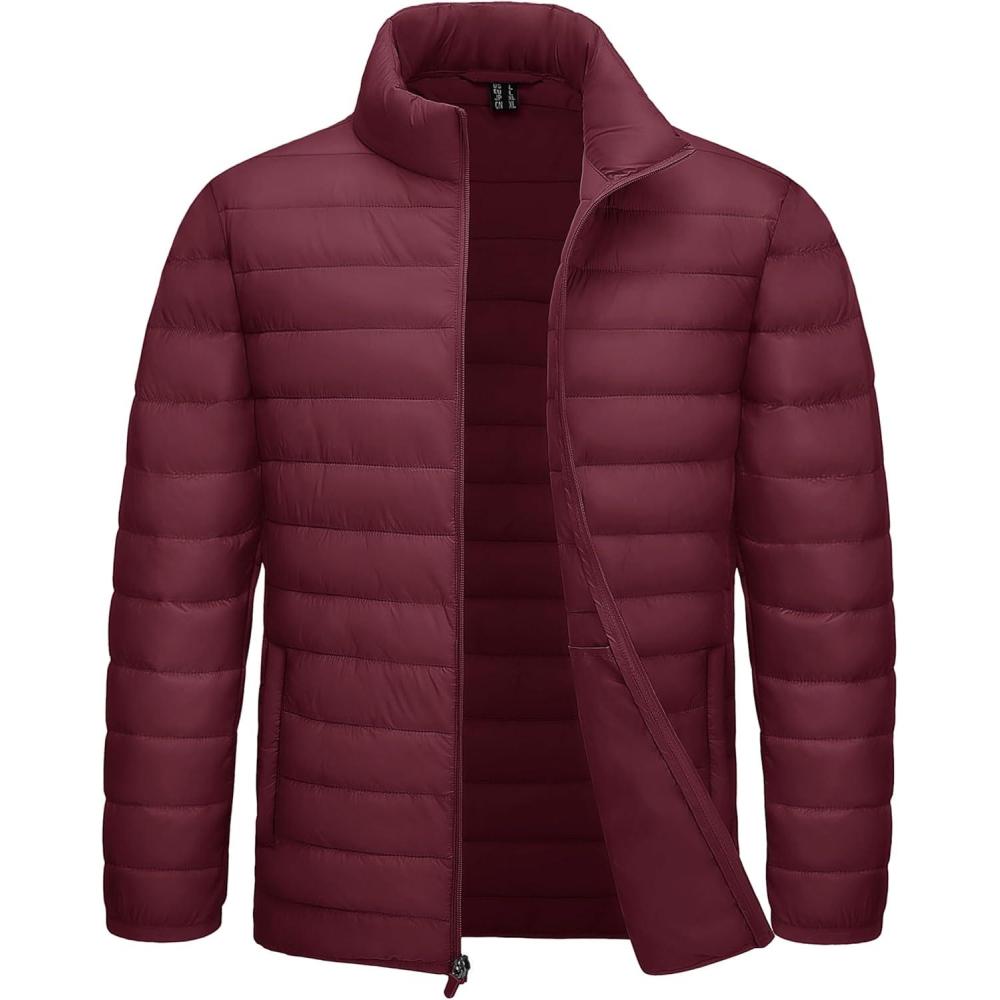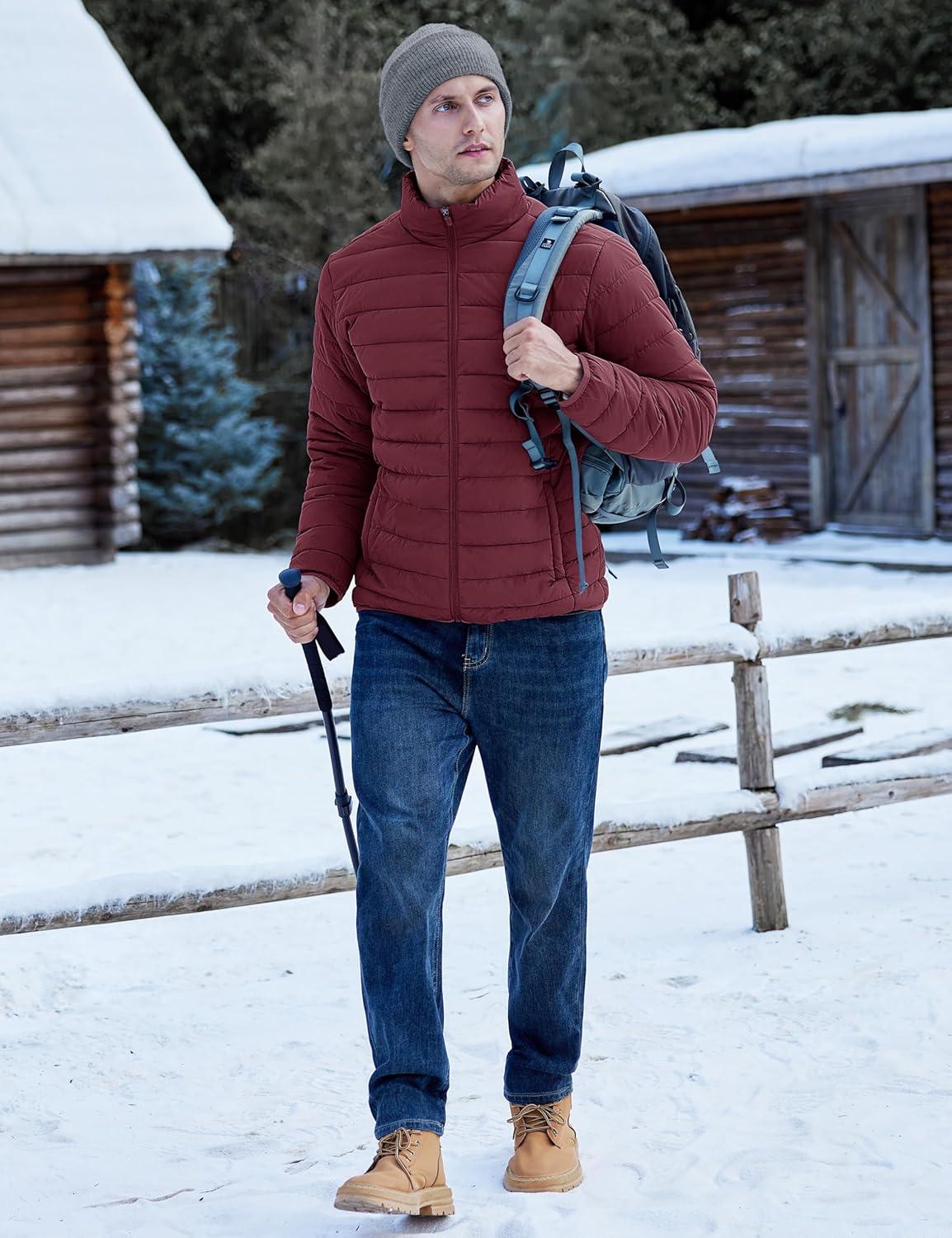 TACVASEN Men’s Lightweight Puffer Jacket Winter Quilted Puffy Jackets Warm Water-Resistant Windproof Insulated Coats(Wine Red)